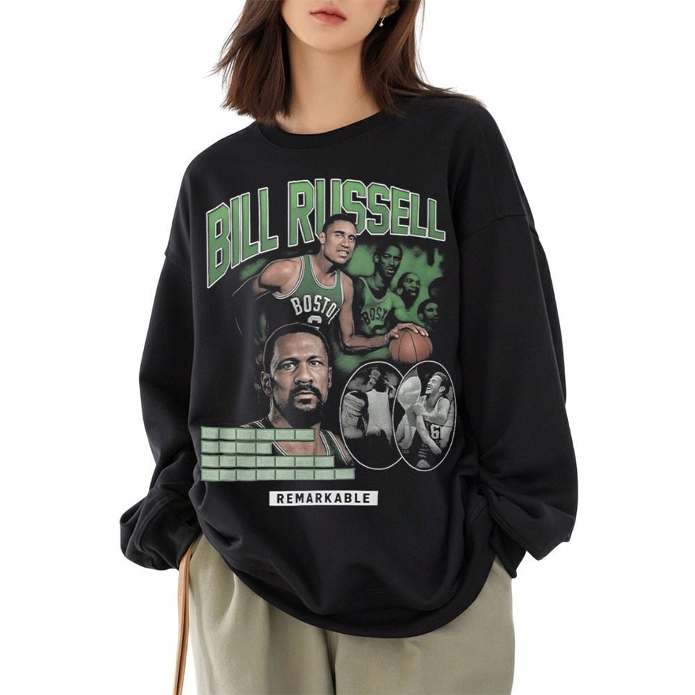 This shirt beautifully captures the essence of Bill Russell’s incredible career and life. The front features a stunning, high-definition graphic collage showcasing Russell in his prime with the Boston, alongside a more contemplative portrait, signifying his wisdom and impact off the court. The bold “BILL RUSSELL” text in classic green makes an immediate impact. The back of the shirt deepens the narrative, with a poignant, stylized image of Russell and text that speaks to his role as the “ultimate champion” and a pivotal figure in the civil rights movement. When a modern star like Christian Gonzalez chooses to wear this shirt, it’s a powerful endorsement, signaling that true greatness is always in style.