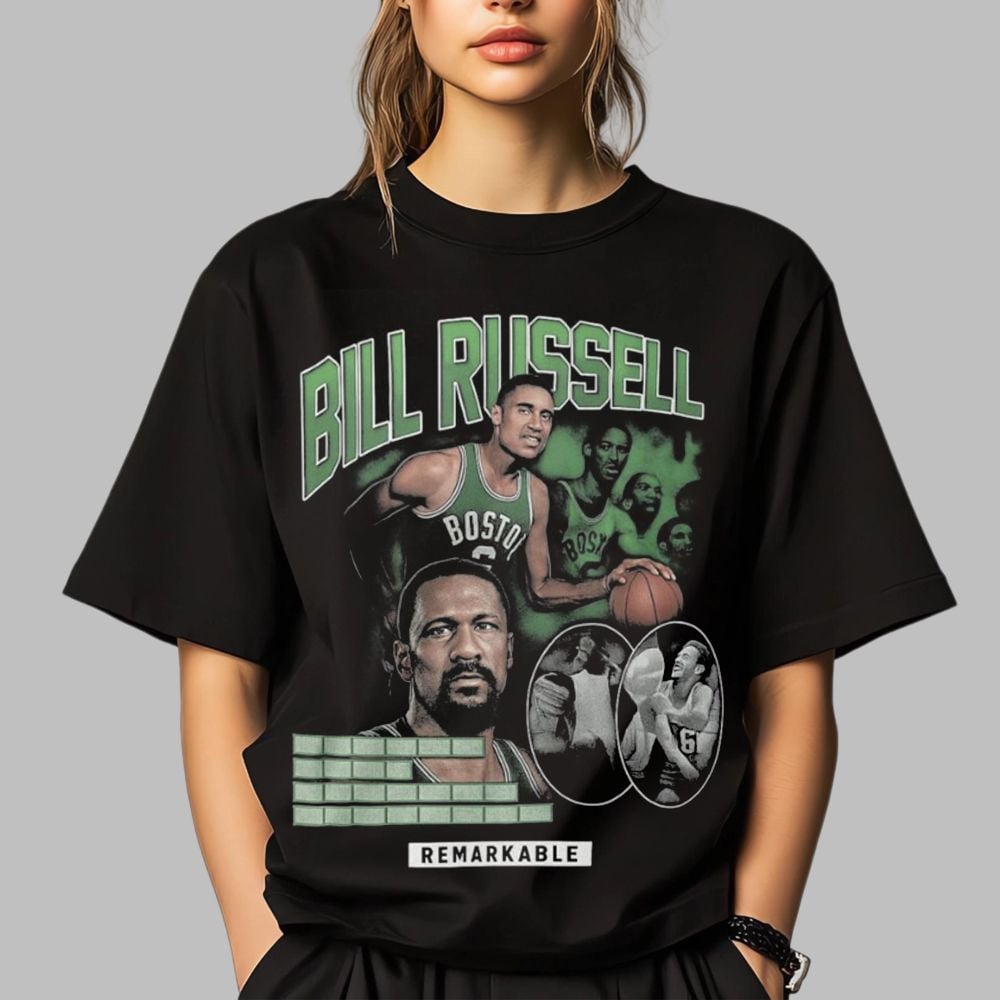 The back of the shirt continues the narrative with a striking, high-contrast image of an older, wiser Russell, paired with text that encapsulates his monumental legacy: “Bill Russell was the ultimate champion, the ultimate team player, and an ultimate human rights advocate.” This powerful summary ensures that the shirt is a conversation starter, educating as much as it impresses. Made from soft-touch cotton, this tee offers superior comfort and durability, ensuring the vibrant, high-quality prints remain crisp wash after wash.