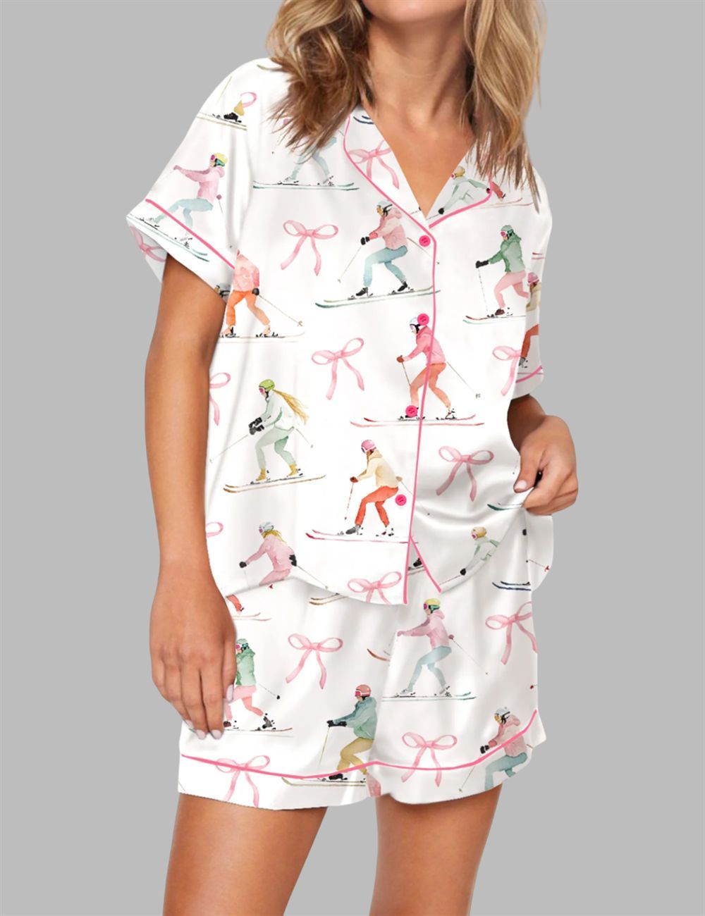 Coquette Skiing Pajama Set For Women | Embrace Whimsical Winter Style
