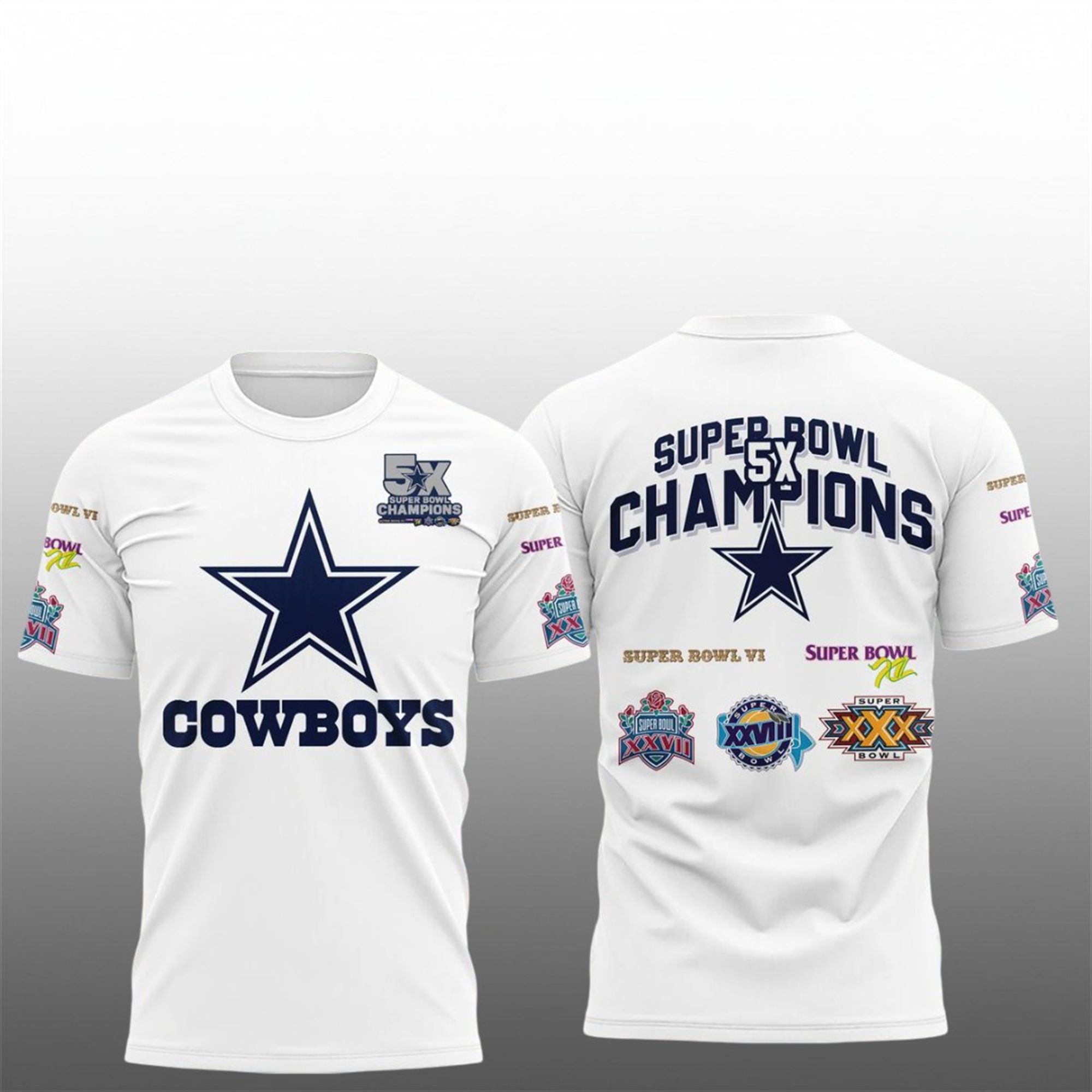 The true highlight of this design is the detailed placement of the Super Bowl logos. The sleeves and back are adorned with the insignias of Super Bowl VI, XII, XXVII, XXVIII, and XXX. These patches represent legendary moments in football history, from the Roger Staubach era to the triplets—Aikman, Smith, and Irvin. This all-over print style ensures that no matter where you stand, the message of victory is clear. It is a comprehensive celebration of the franchise’s heritage, designed for fans who value the history of the game as much as the current season.