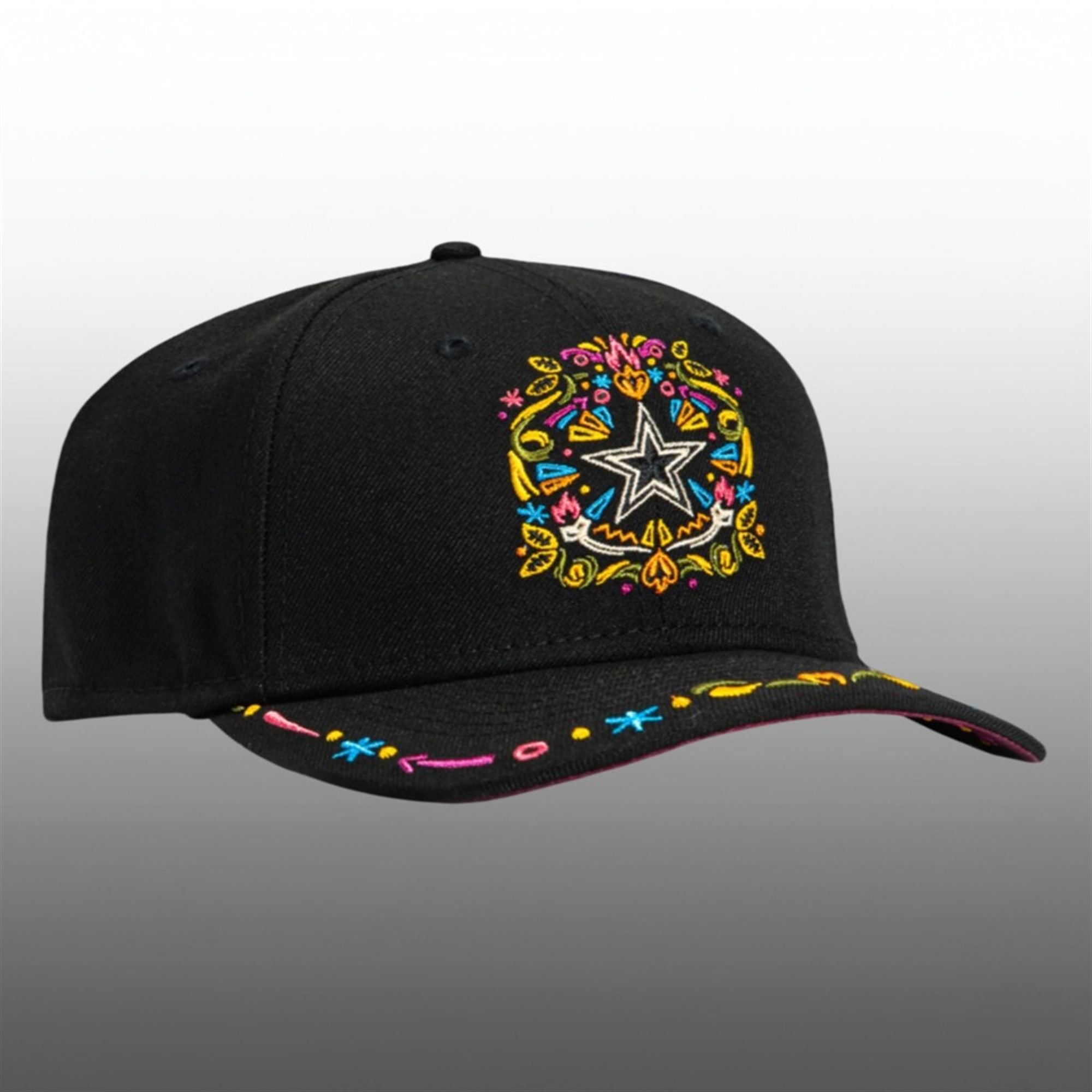 From the first glance, the quality of this cap is undeniable. Set against a premium black fabric, the iconic Dallas Cowboys star is completely reimagined. It serves as the canvas for a breathtaking, high-density embroidery design that explodes with color and life.