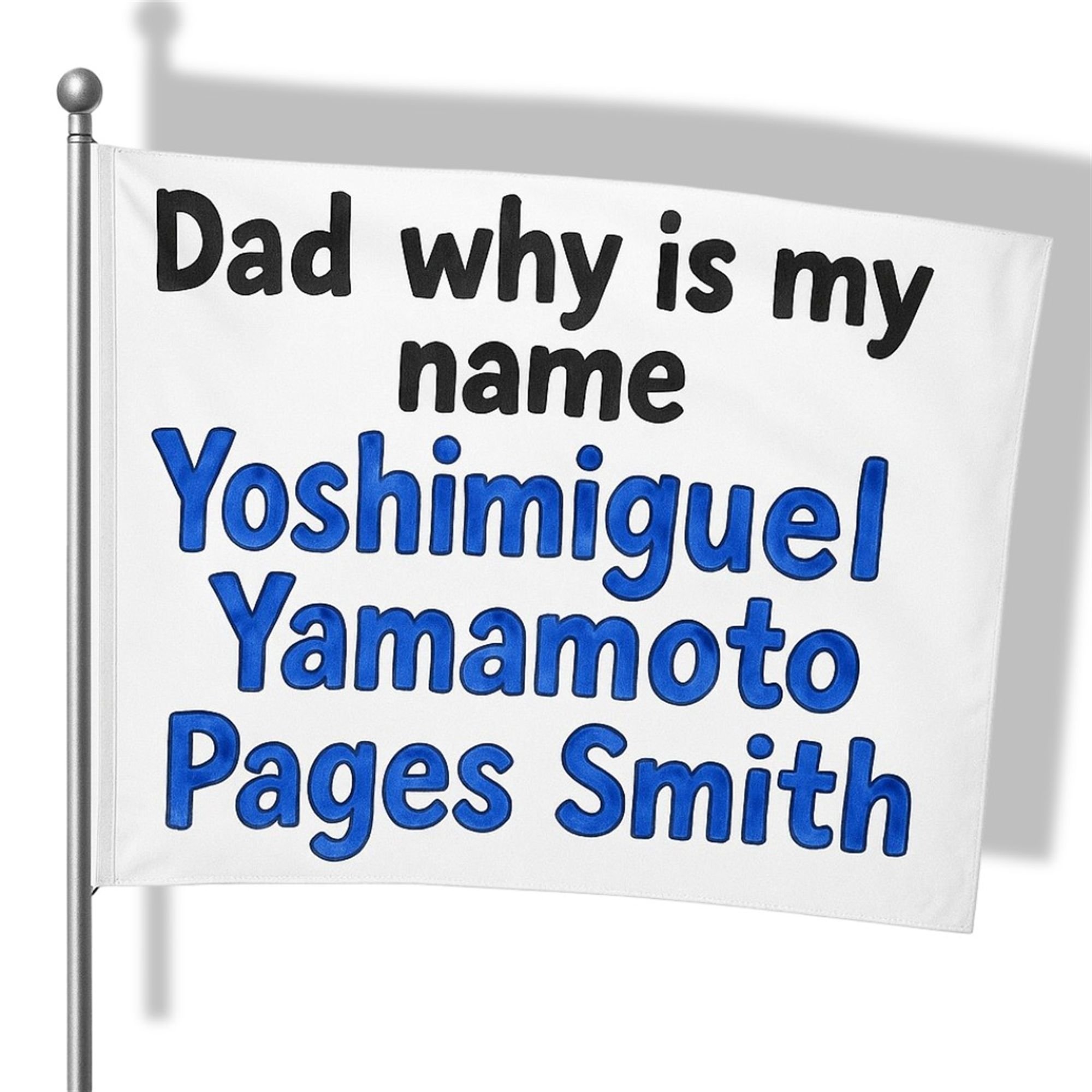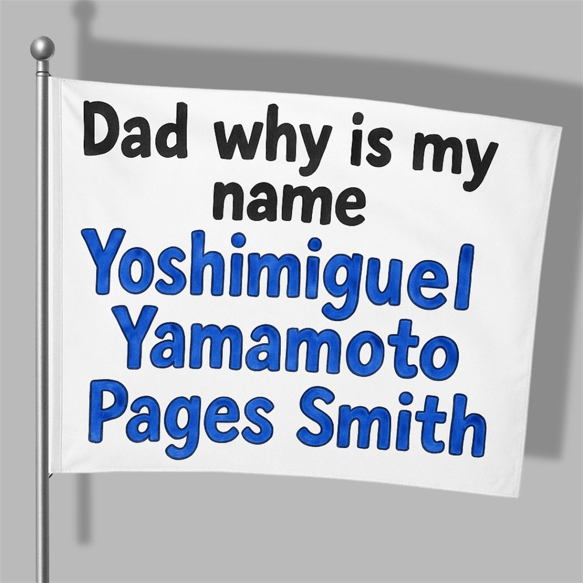 Dad Why Is My Name Yoshimiguel Yamamoto Pages Smith Flag | The Ultimate Dodgers Fan Inside Joke