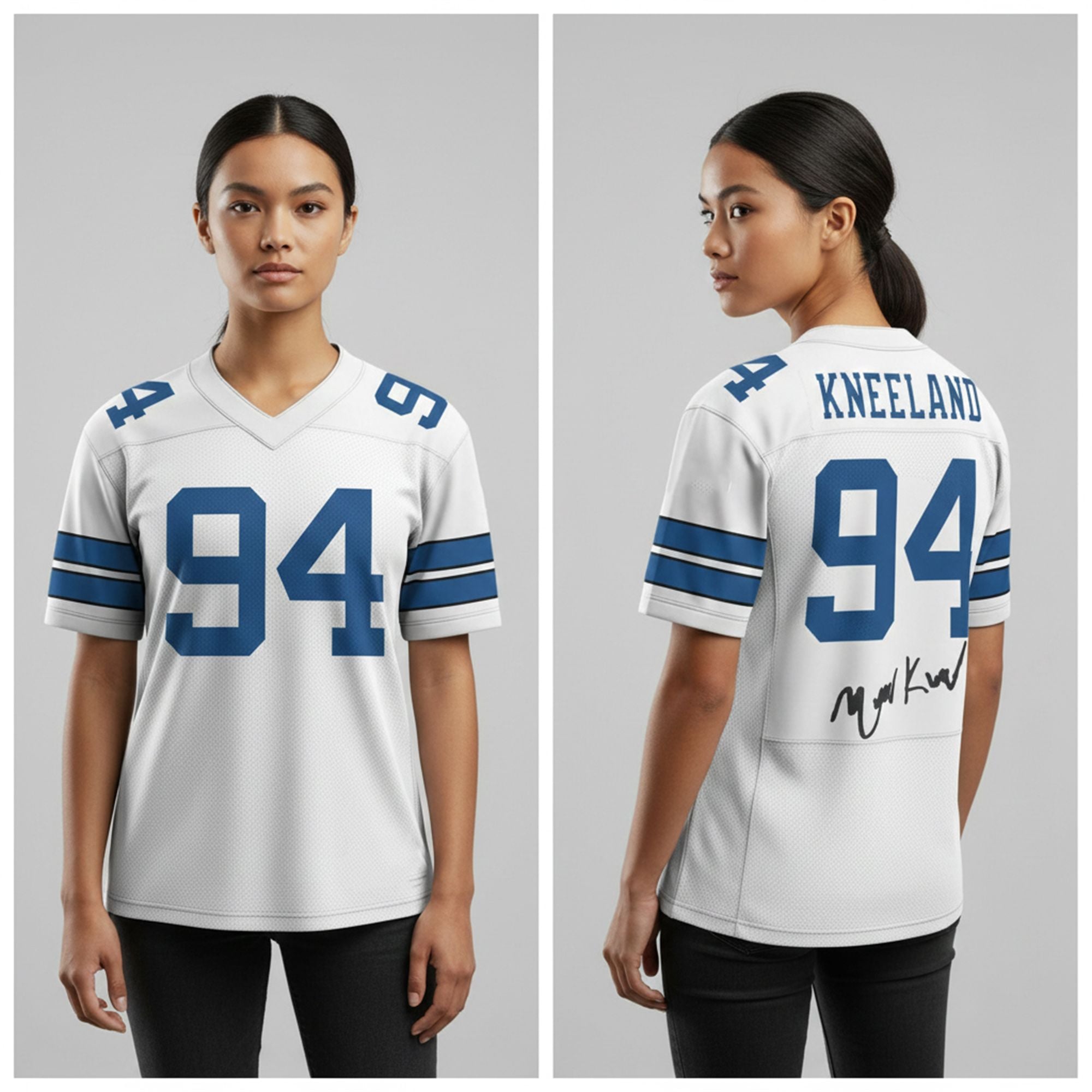 Featuring Kneeland’s iconic number 94 and a commemorative signature detail, this jersey captures the spirit of the “We Love You, 94” moment that resonated with millions of viewers. Whether you are a dedicated member of Cowboys Nation or a Post Malone fan moved by the halftime dedication, this jersey allows you to keep the memory of a beloved player alive.