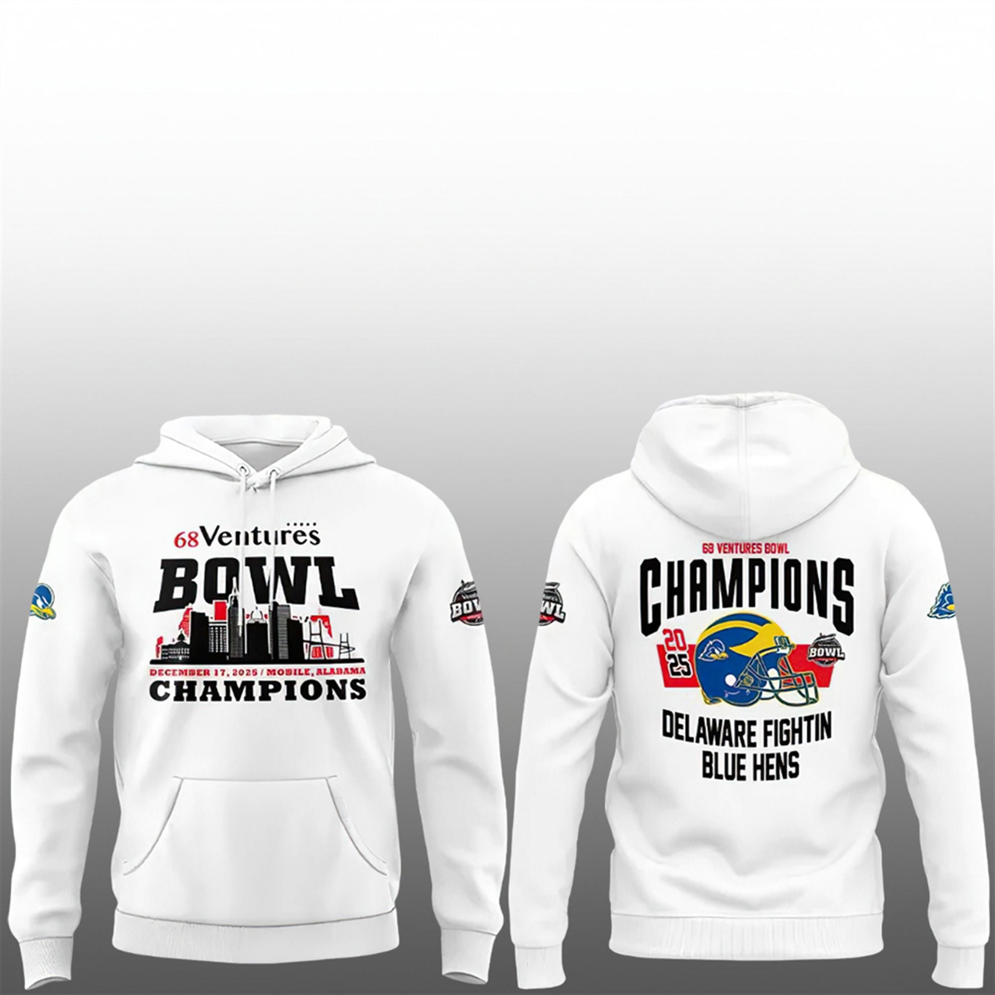 Make history part of your wardrobe with the Delaware Fightin’ Blue Hens 68 Ventures Bowl Champions 2025 Shirt. Commemorating the program’s first-ever FBS bowl victory, this exclusive tee captures the excitement of the 20-13 win in Mobile, Alabama.