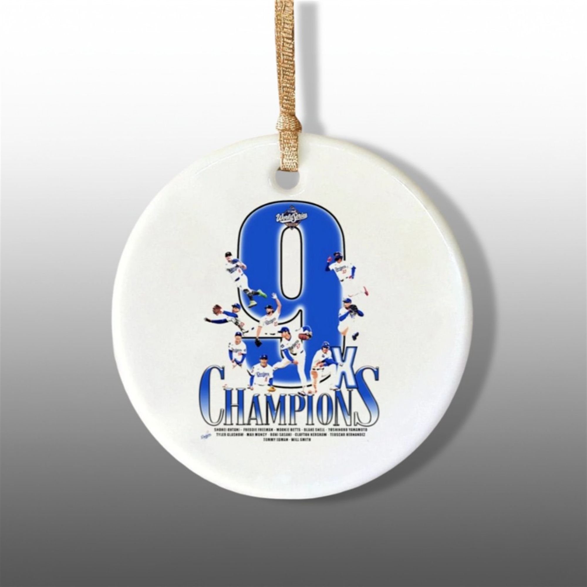 This Dodgers 9x Time Player Name Ornament is a must-have for every member of the Dodgers faithful. It’s a tangible piece of the 2025 victory, designed to be the centerpiece of your holiday decor for decades to come. The design is dominated by a bold, brilliant “9,” signifying the franchise’s historic ninth World Series title, and is proudly topped with the 2025 World Series logo. The word “CHAMPIONS” is emblazoned across the front, a proud declaration of the team’s incredible back-to-back achievement.