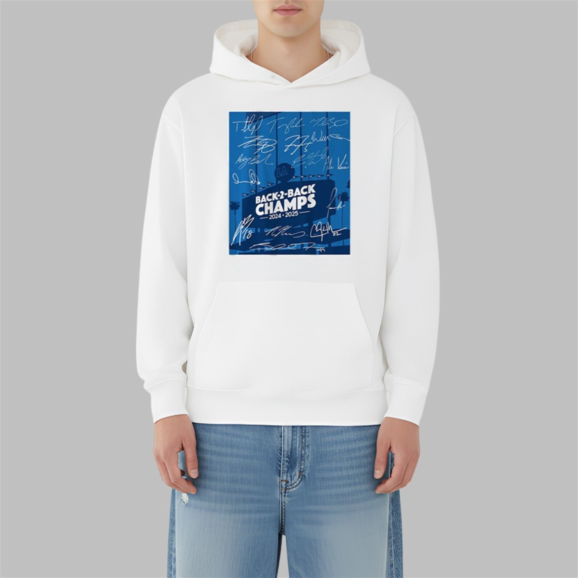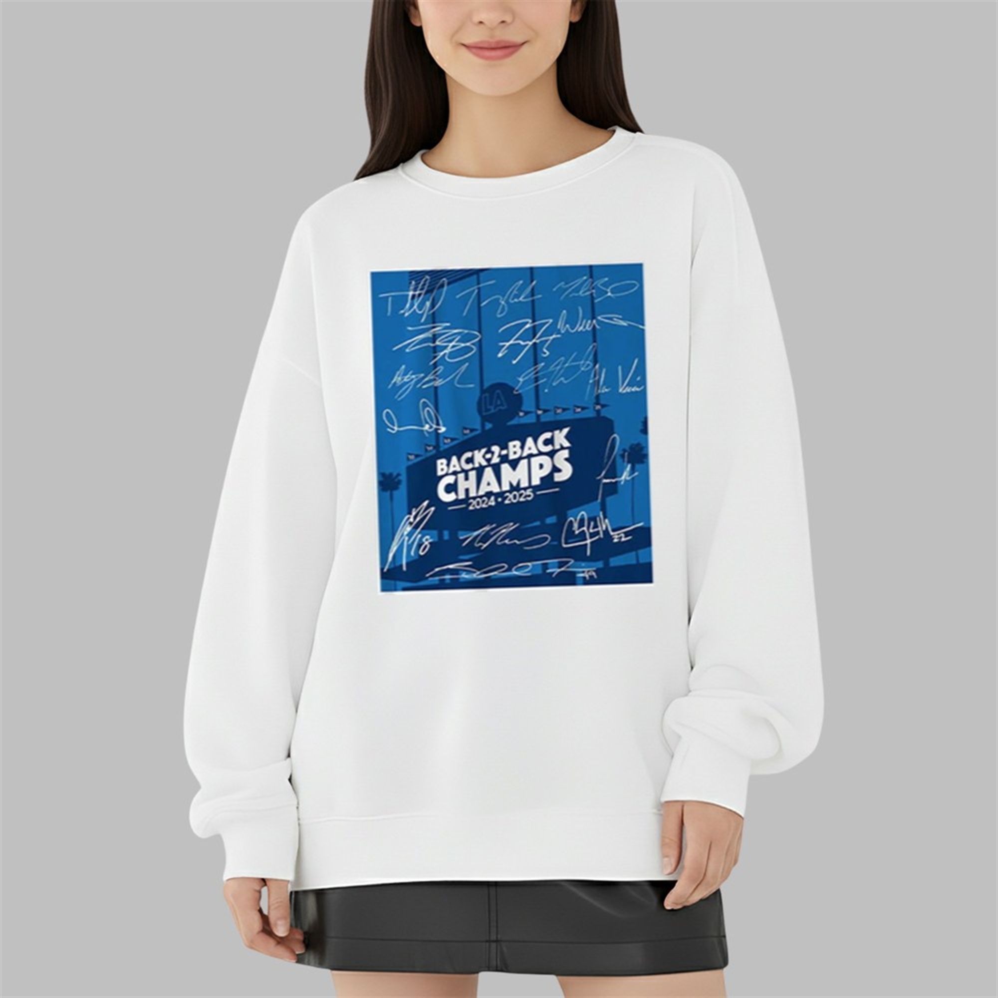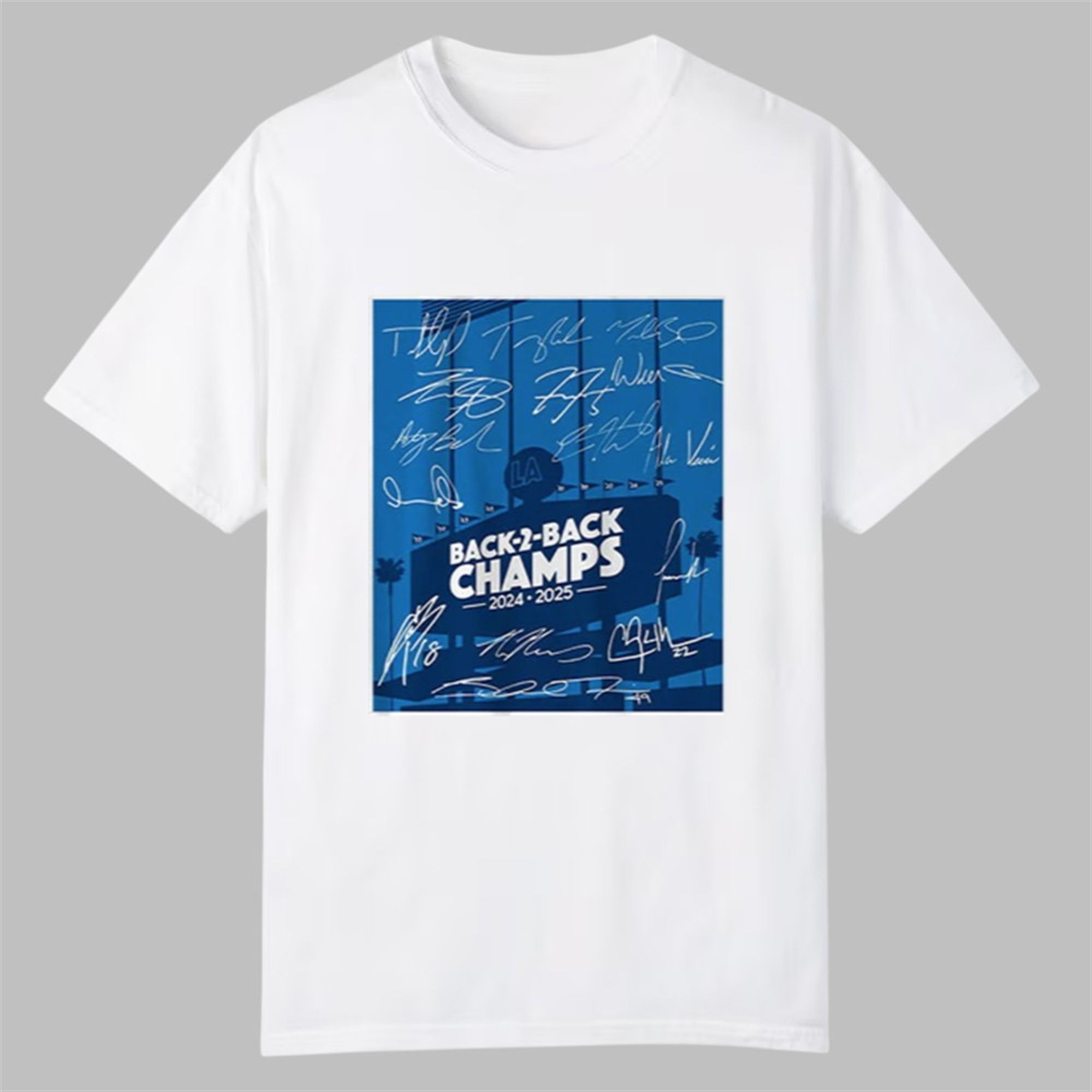For the first time since the legendary 1998-2000 Yankees, a team has successfully defended its title. This 2024-2025 Dodgers team has earned its place among the all-time greats. This t-shirt is your badge of honor as a fan who witnessed it all. The design is bold, proud, and built to last, just like the team it represents. The front graphic features the iconic Dodger Stadium scoreboard emblazoned with “BACK-2-BACK CHAMPS 2024-2025,” set against a backdrop of celebratory team colors. Itâs a powerful, visual declaration of dominance that every LA fan will recognize and respect.