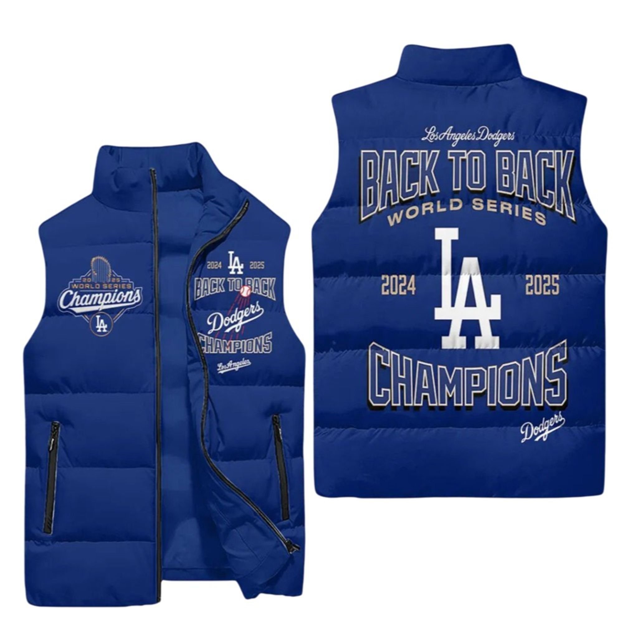 Dodgers Back To Back World Series 2024 2025 Champions Puffer Vest | Relive the Glory of a HistoricÂ