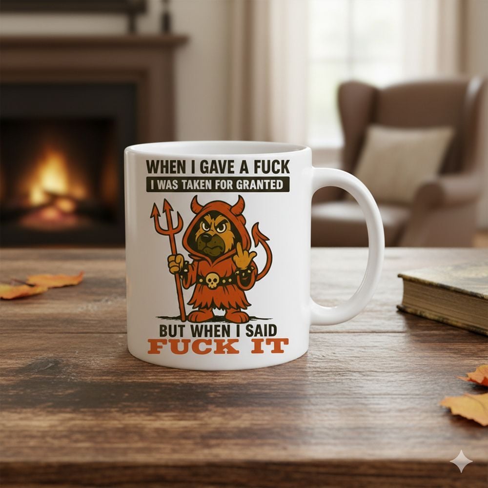 This Dog When I Gave A Fuck I Was Taken For Granted But When I Said Fuck It I Become The Bad Guy Mug isn’t just another novelty mug; it’s a banner for the fed-up, a salute to the boundary-setters, and a hilarious nod to the universal truth that no good deed goes unpunished. The mug’s bold declaration—”When I gave a fuck I was taken for granted, but when I said fuck it I become the bad guy”—resonates with anyone who has ever felt undervalued. Paired with the image of a comically fierce dog in a devil costume, it’s the perfect blend of cute, rebellious, and unapologetically honest.