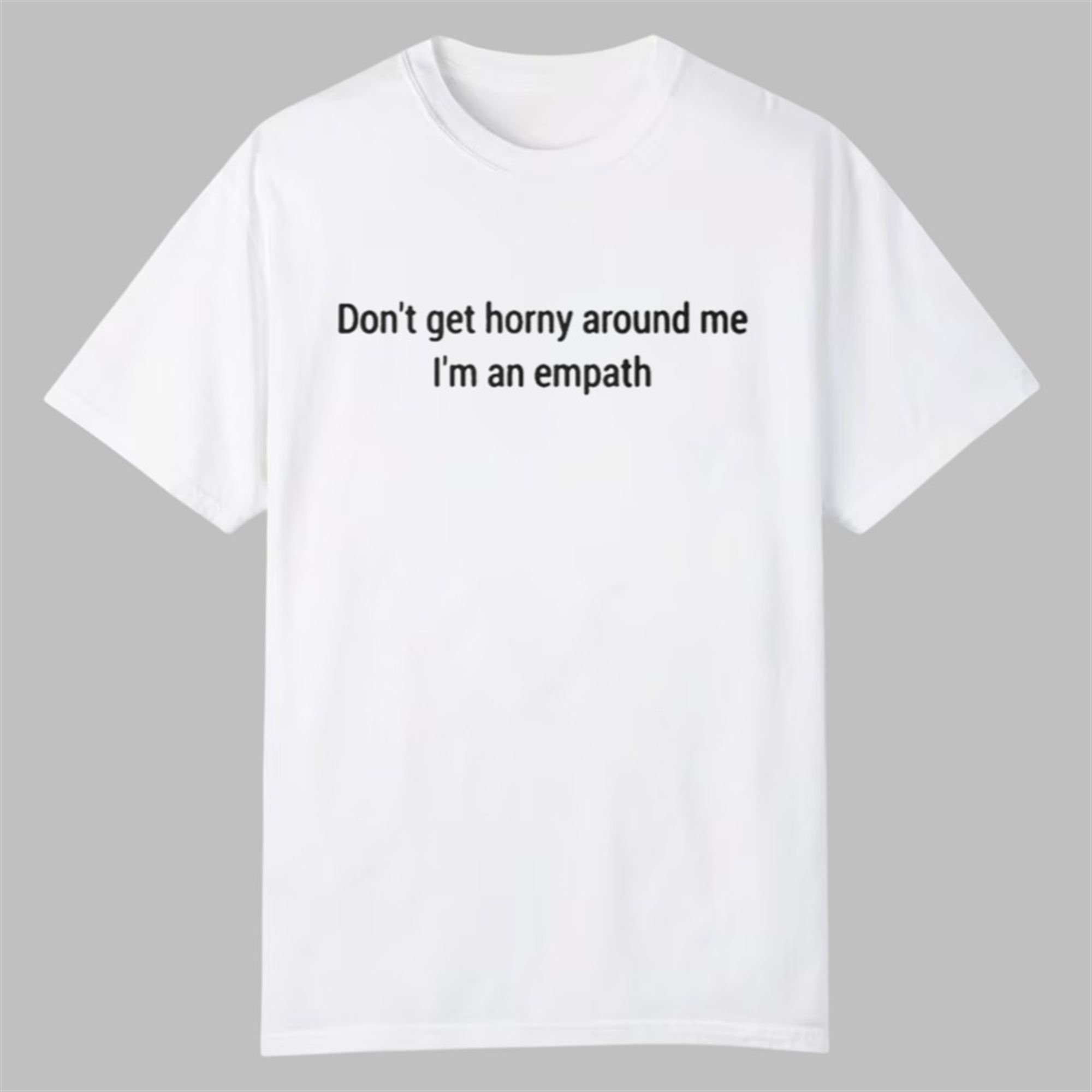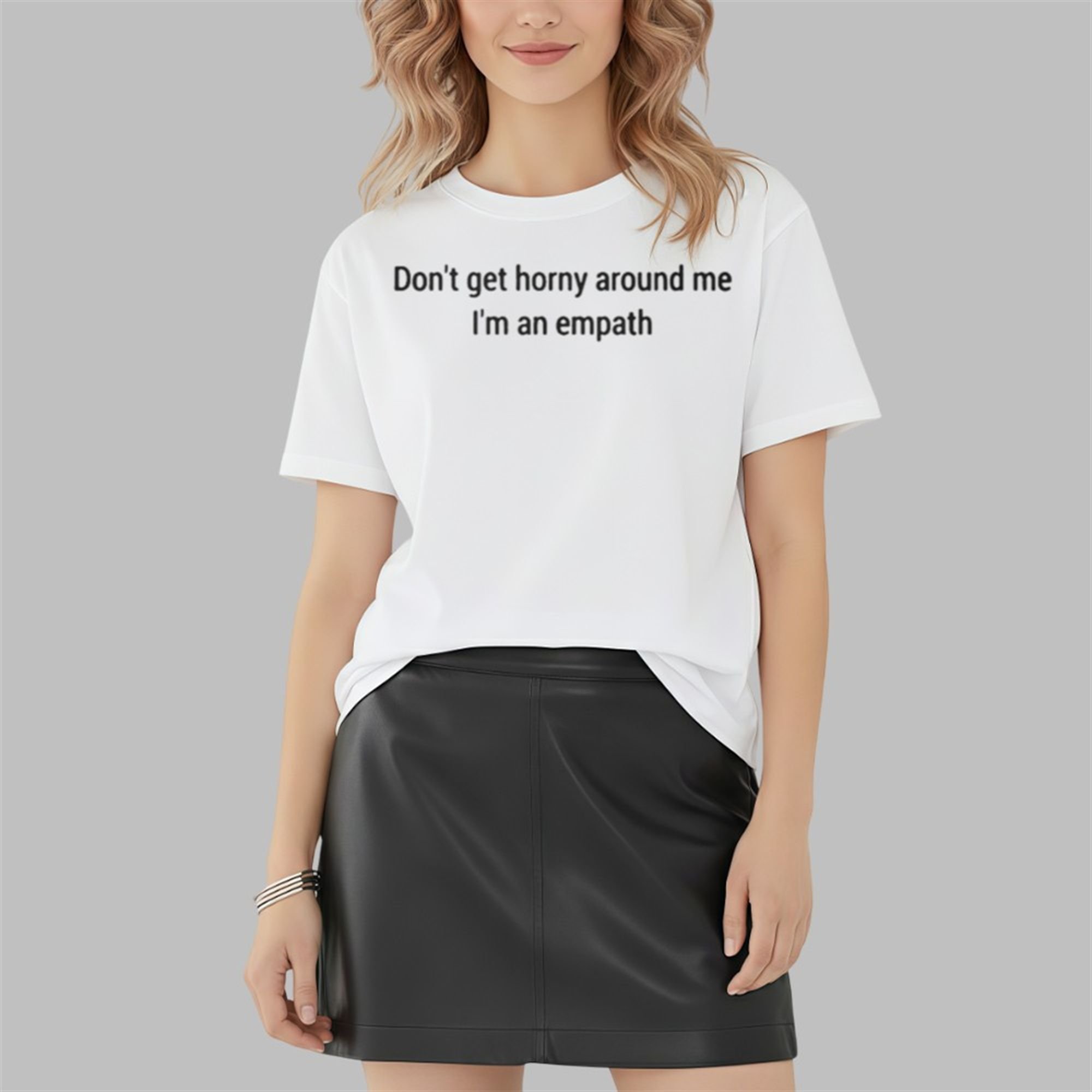 This shirt is designed for the bold, the humorous, and the “highly sensitive.” Its clean, minimalist text “Don’t Get Horny Around Me I’m An Empath” on a high-quality tee ensures that the message is impossible to miss. It’s a guaranteed head-turner, a laugh-generator, and perhaps, a surprisingly effective filter.