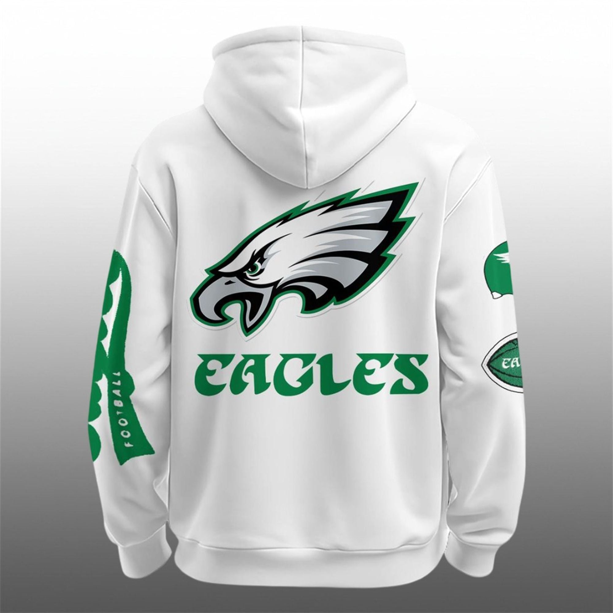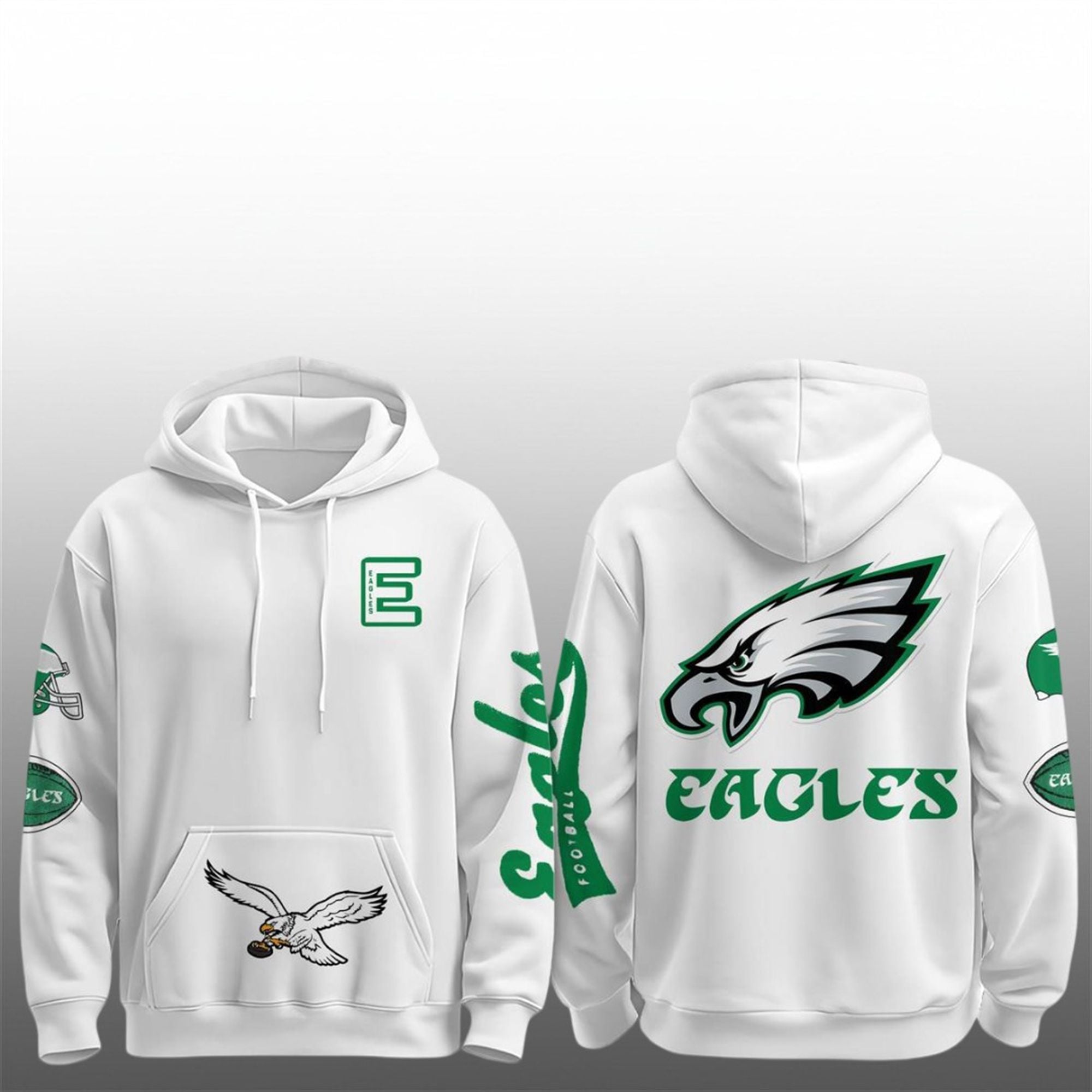 This specific design exploded across social media in early 2026 due to the “Gameday Clean Girl” and “Elevated Streetwear” trends. Influencers and fans began favoring the crisp, monochromatic white look over traditional dark jerseys because it offered a polished, photogenic aesthetic that paired better with everyday fashion. The viral moment peaked when fans noticed the “Timeline” design detail—the clever juxtaposition of the retro eagle on the front and the modern eagle on the back —turning the hoodie into a symbolic piece about the team’s evolution.