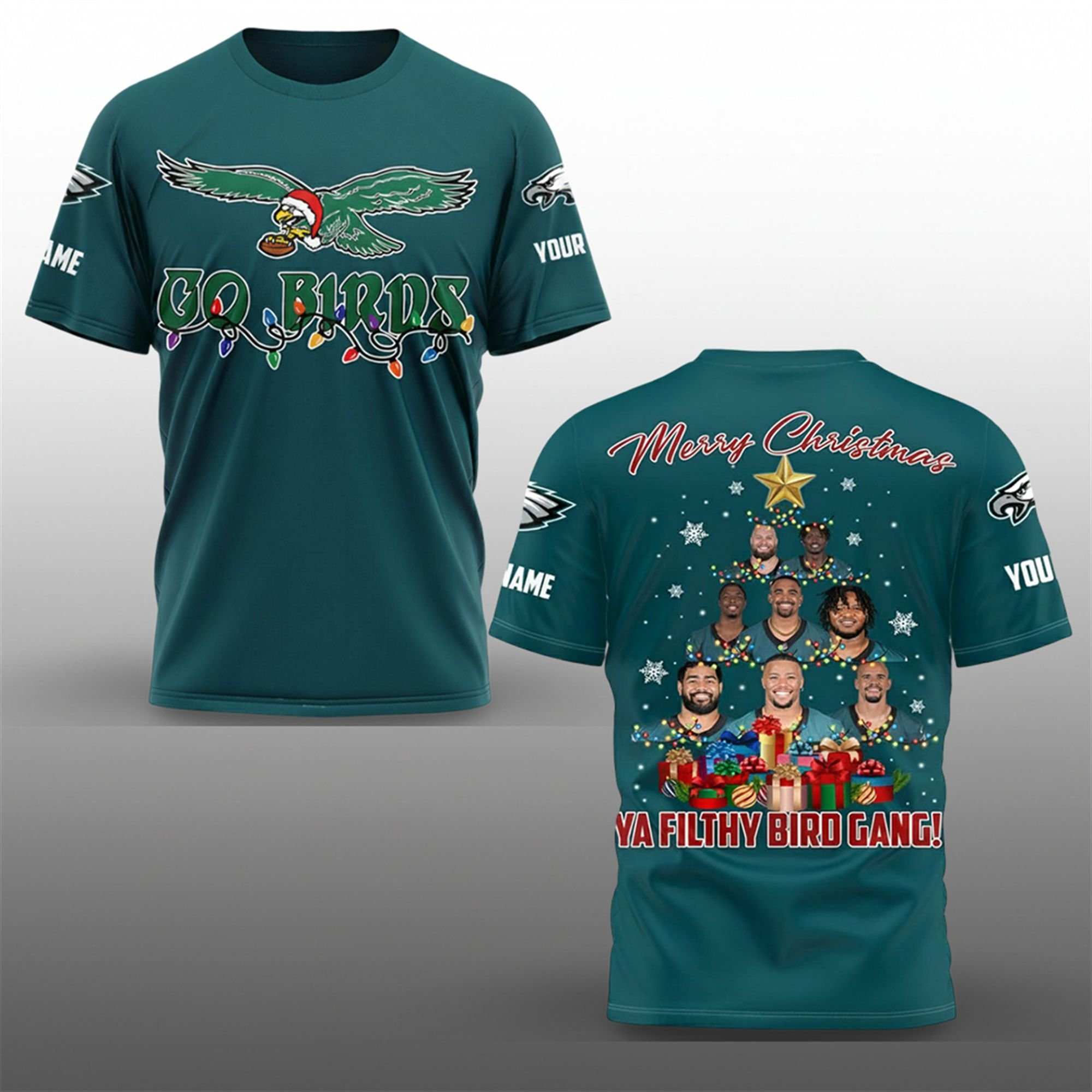 2025 Philadelphia Eagles Go Birds Merry Christmas Ya Filthy Bird Gang Shirt | Show Your Pride