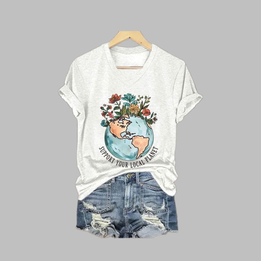 Earth Day Support Your Local Planet Print T-Shirt – Sustainable & Stylish