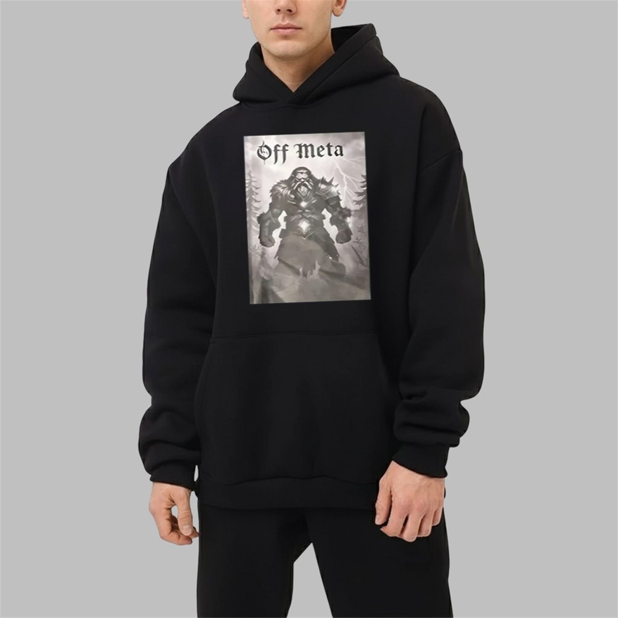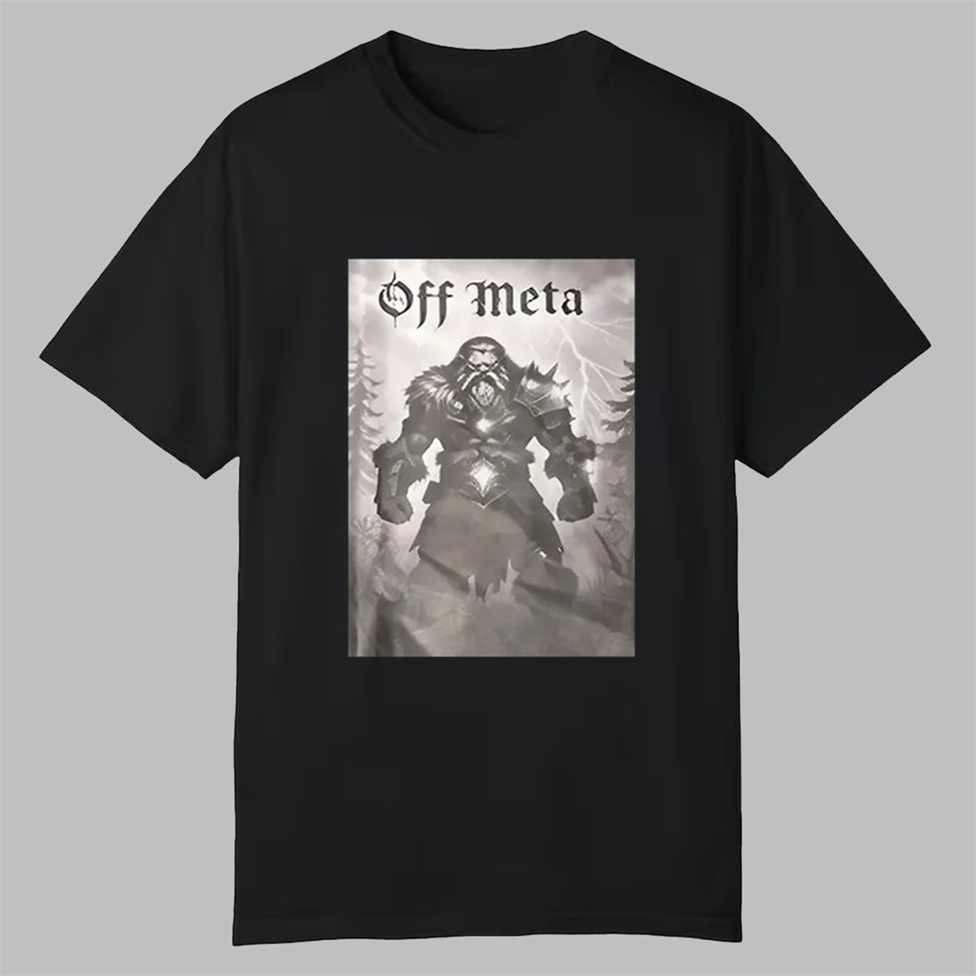 The centerpiece of this shirt is a stunning, high-detail graphic depicting a formidable warrior, reminiscent of the world’s most ambitious tech pioneers. Clad in powerful armor and set against a stormy, electric sky, this figure embodies strength, resilience, and an unwavering focus on the future. Above this epic scene, the words “Off Meta” are emblazoned in a striking gothic font. This popular gaming term, meaning to choose a strategy outside the current dominant meta, perfectly encapsulates a philosophy of disruptive innovation and unconventional problem-solving. It’s a wearable testament to thinking differently, whether you’re conquering a digital battlefield, launching rockets into space, or revolutionizing an entire industry.