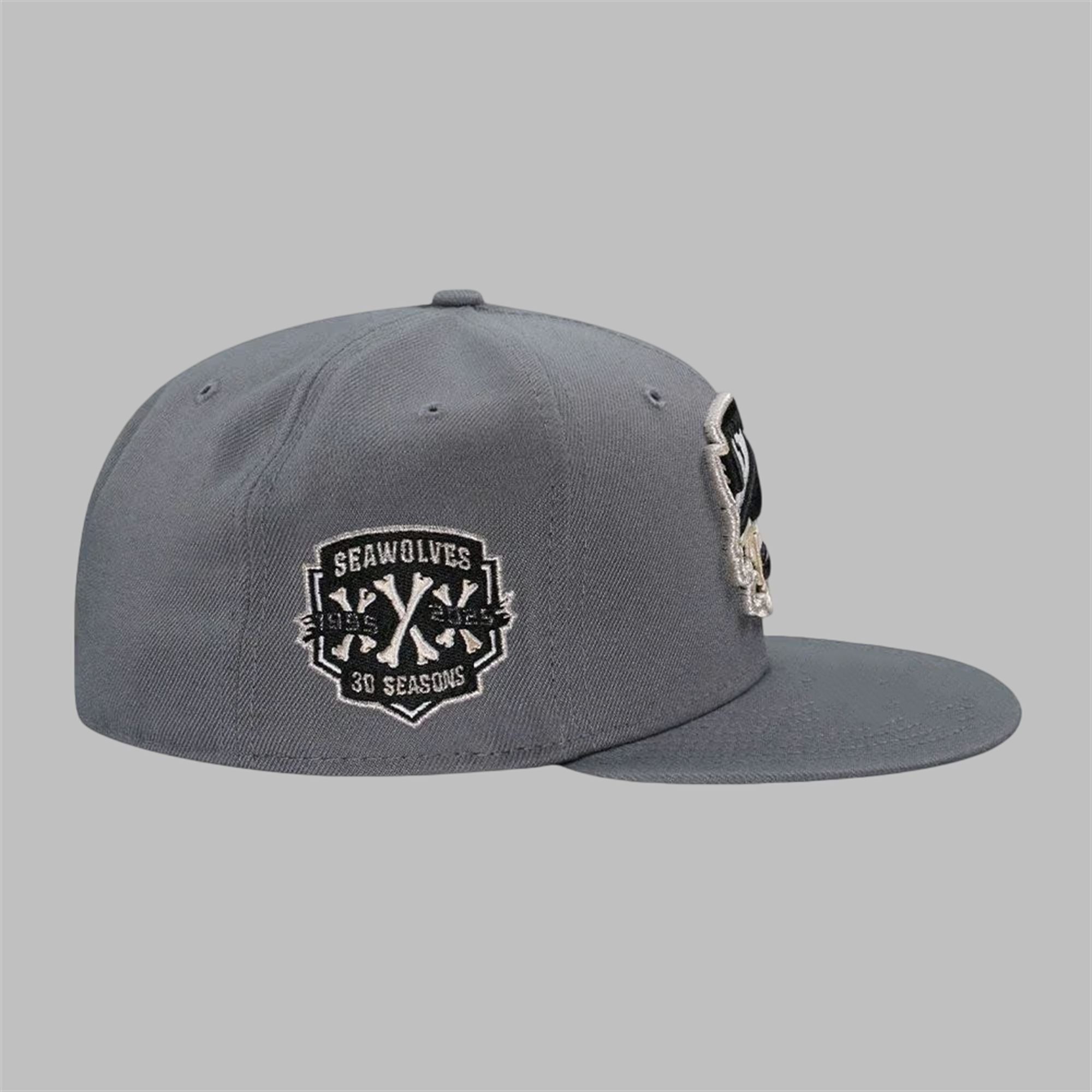 This hat doesn’t just look to the future; it honors a rich past. Adorning the wearer’s right side is the 30 Seasons Commemorative Patch. This intricately designed shield marks the team’s impressive anniversary, from its inception in 1995 to the current 2025 season. The patch features the “SEAWOLVES” name above two crossed bonesāa nod to the team’s pirate themeāand the bold “30 SEASONS” text. This anniversary logo makes the hat a true collector’s item, celebrating the legacy of the back-to-back Eastern League Champions and proud Double-A affiliate of the Detroit Tigers.