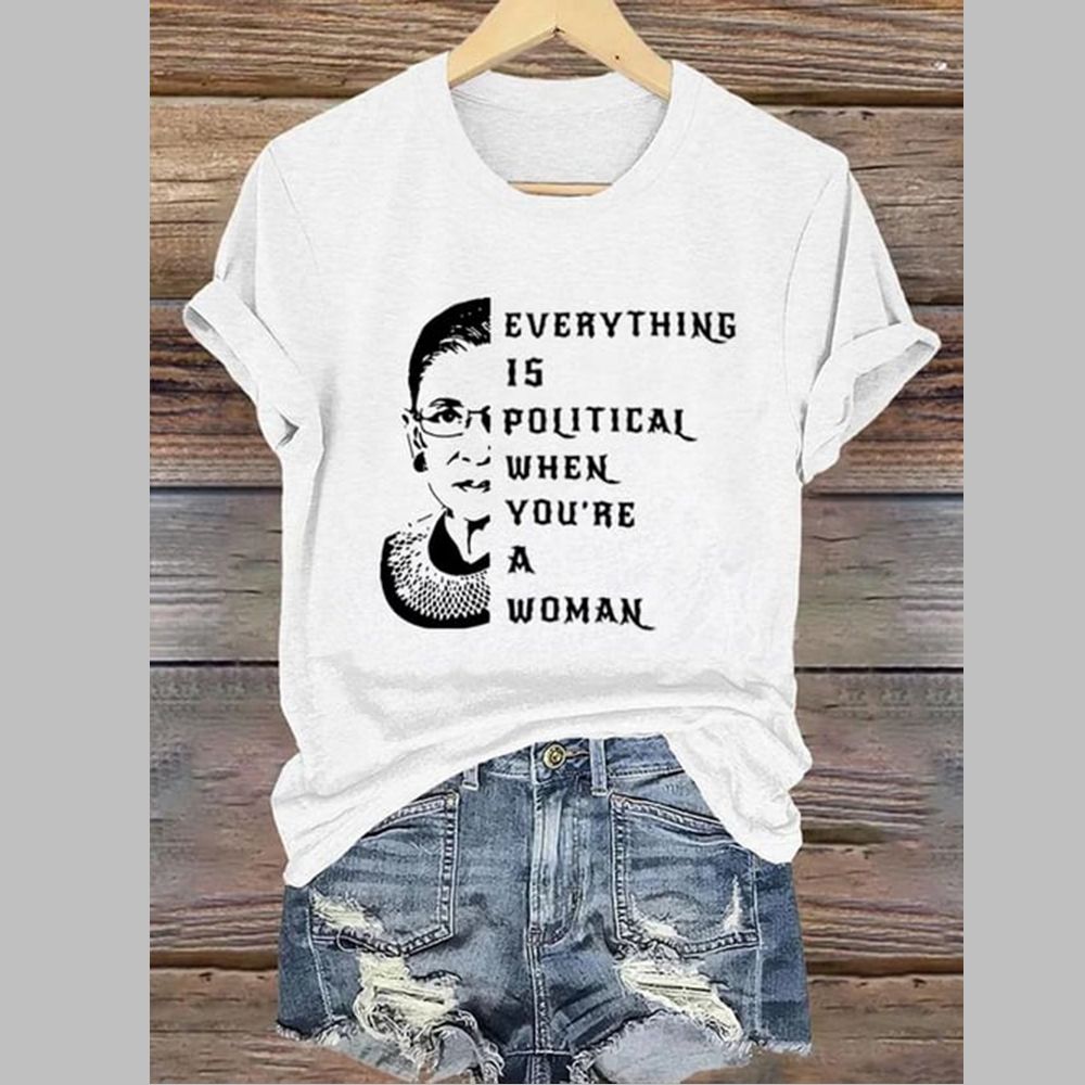 In conclusion, the Everything Is Political When You’re A Woman Print T-Shirt featuring a tribute to an iconic figure, is far more than apparel. It’s a declaration, a nod to a shared reality, and a symbol of empowerment. Comfortable, stylish, and deeply meaningful, it allows you to wear your convictions and spark important conversations. Add this powerful piece to your collection and let your clothing reflect your awareness and your voice.