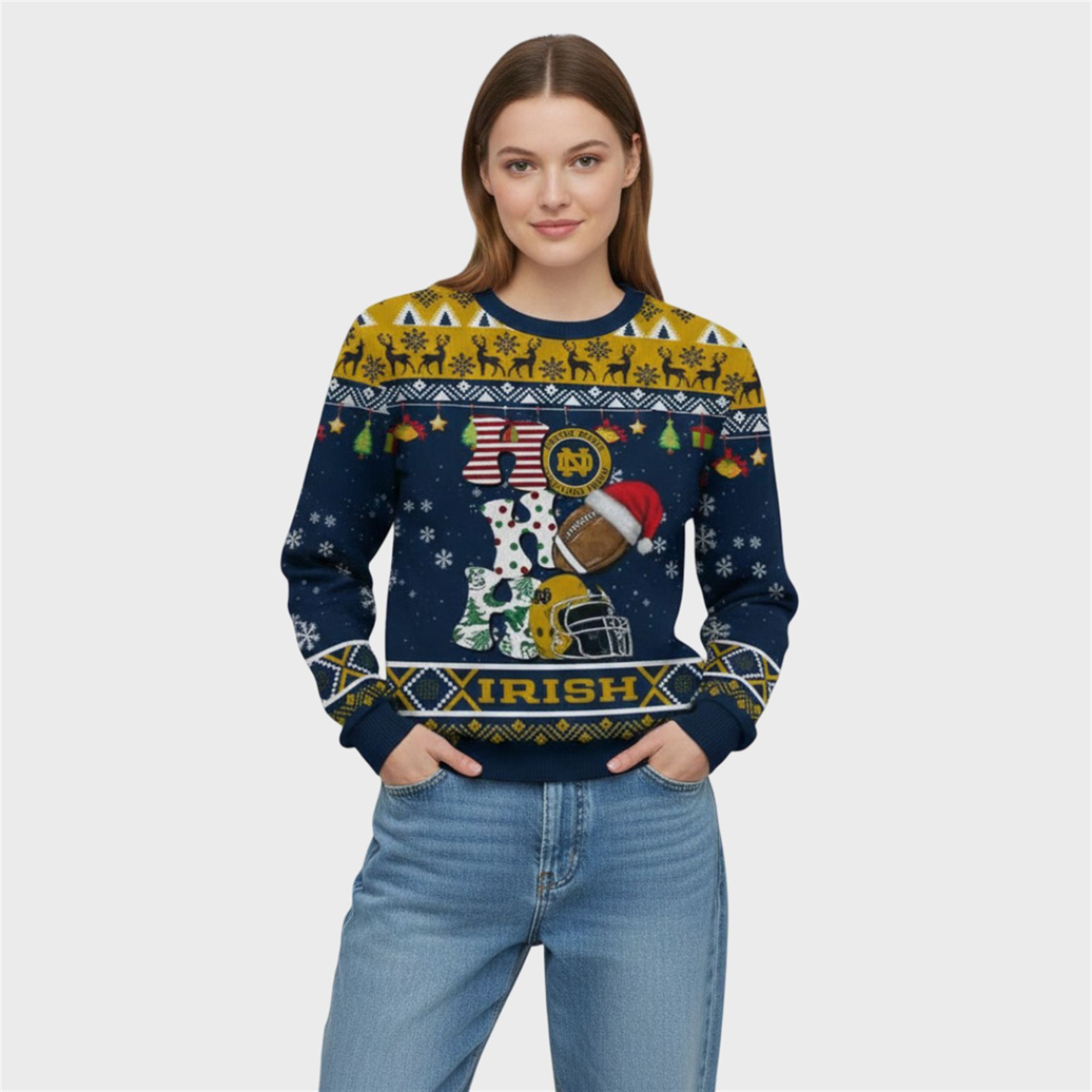 Fighting Irish Football HO HO HO Ugly Christmas Sweater | Show Your Support