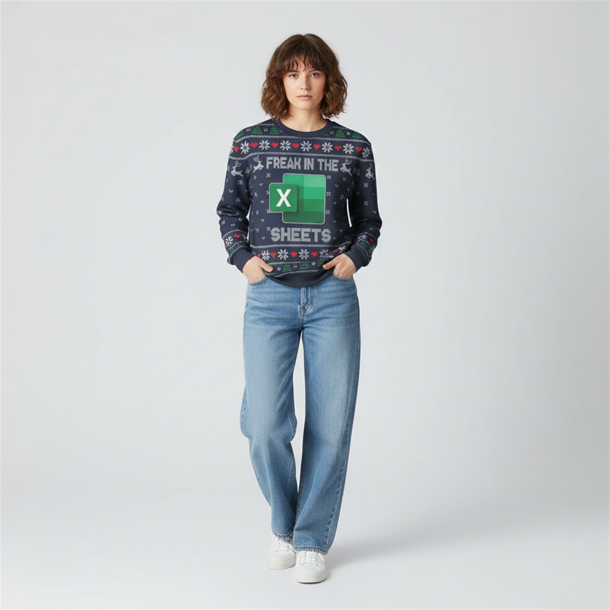 Elevate your corporate holiday game with the Freak In The Sheets Excel Ugly Christmas Sweater, the undisputed champion of 2025 office parties. If your love language is VLOOKUP and your idea of a wild Friday night involves complex macros, this is the apparel you’ve been waiting for.