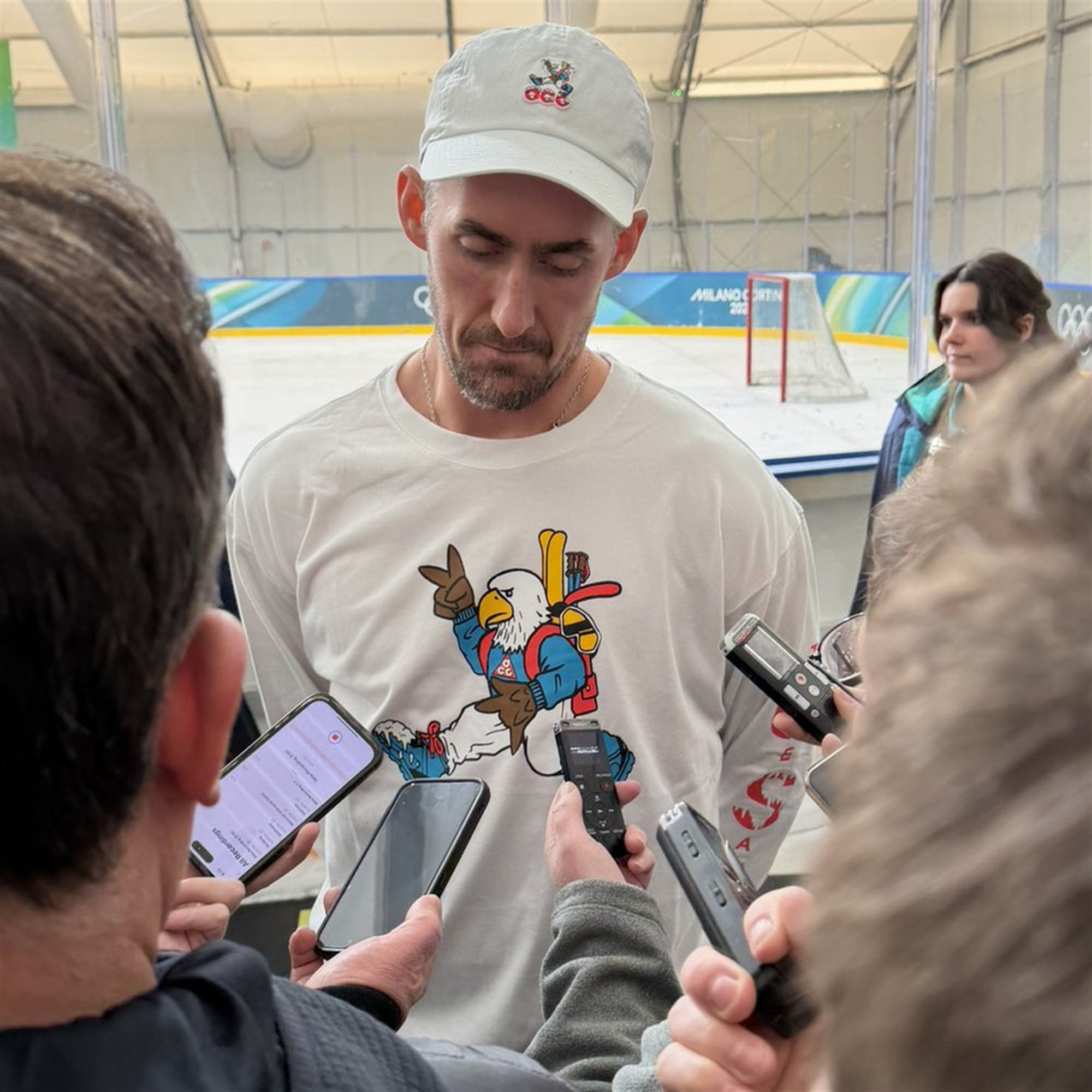 The internet exploded when hockey star Brock Nelson casually sported this bold eagle graphic during a high-profile press scrum. Fans immediately zeroed in on the laid-back, retro-ski aesthetic that perfectly contrasted with the serious, high-pressure sports atmosphere surrounding him. Images of the press conference flooded social media platforms, sparking a massive, unified hunt to track down the exact design. It quickly transformed from an off-duty athlete’s wardrobe choice into a must-have cultural phenomenon for sports and fashion enthusiasts alike.