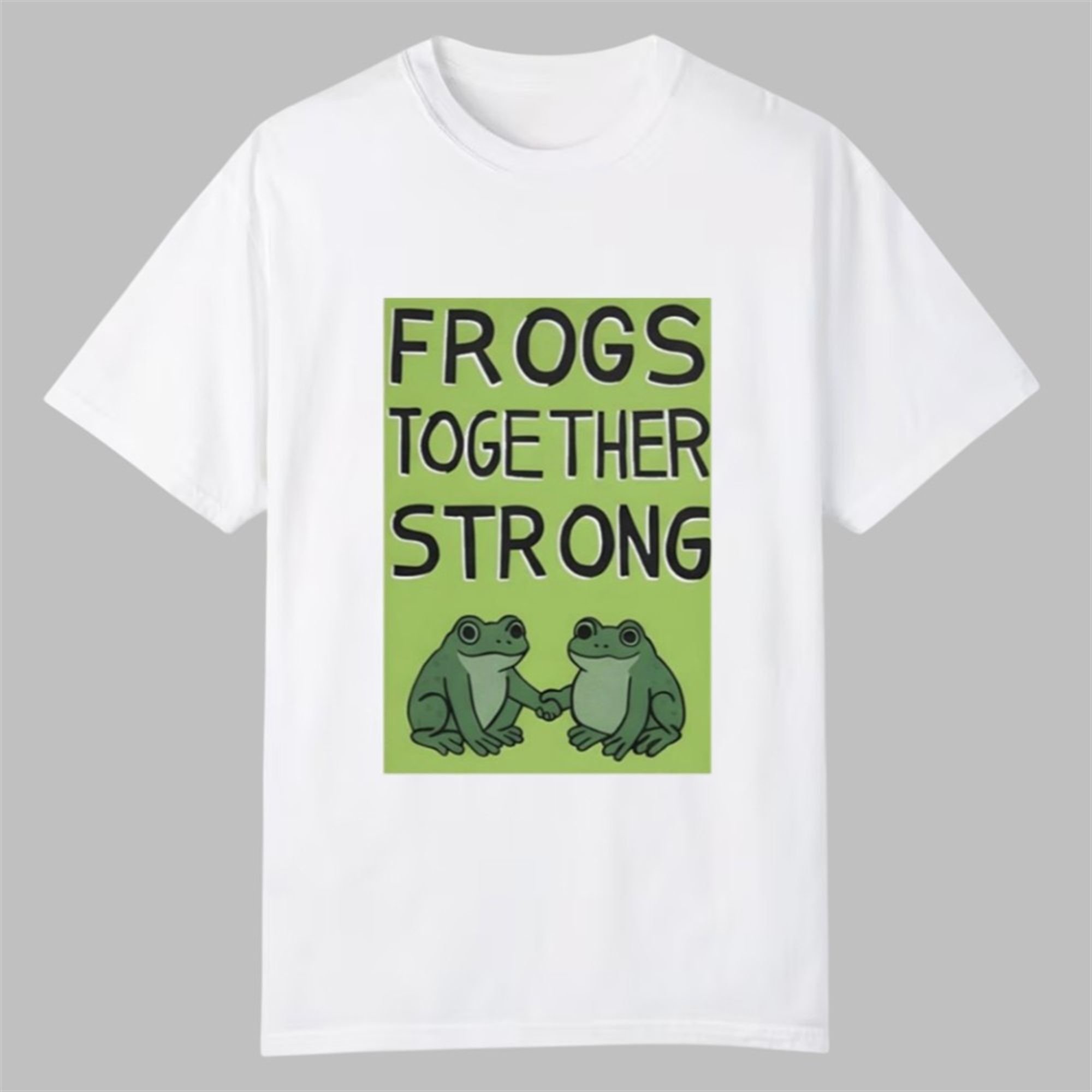 Remember when the internet was captivated by the quiet defiance of the Portland Frog? This shirt is a tribute to that iconic moment. The “Frogs Together Strong” T-shirt isn’t just another graphic tee; it’s a wearable piece of modern history. Inspired by the peaceful protesters who used humor and whimsy to counter aggression, this design celebrates the power of unity. The slogan, a clever twist on the famous “Apes Together Strong” line, became a rallying cry for communities standing together. Featuring a bold, clear graphic of two friendly frogs holding hands, this shirt instantly communicates a message of solidarity, friendship, and collective power. It’s designed for the digitally-savvy, the socially conscious, and anyone with a love for memes that carry a meaningful punch.