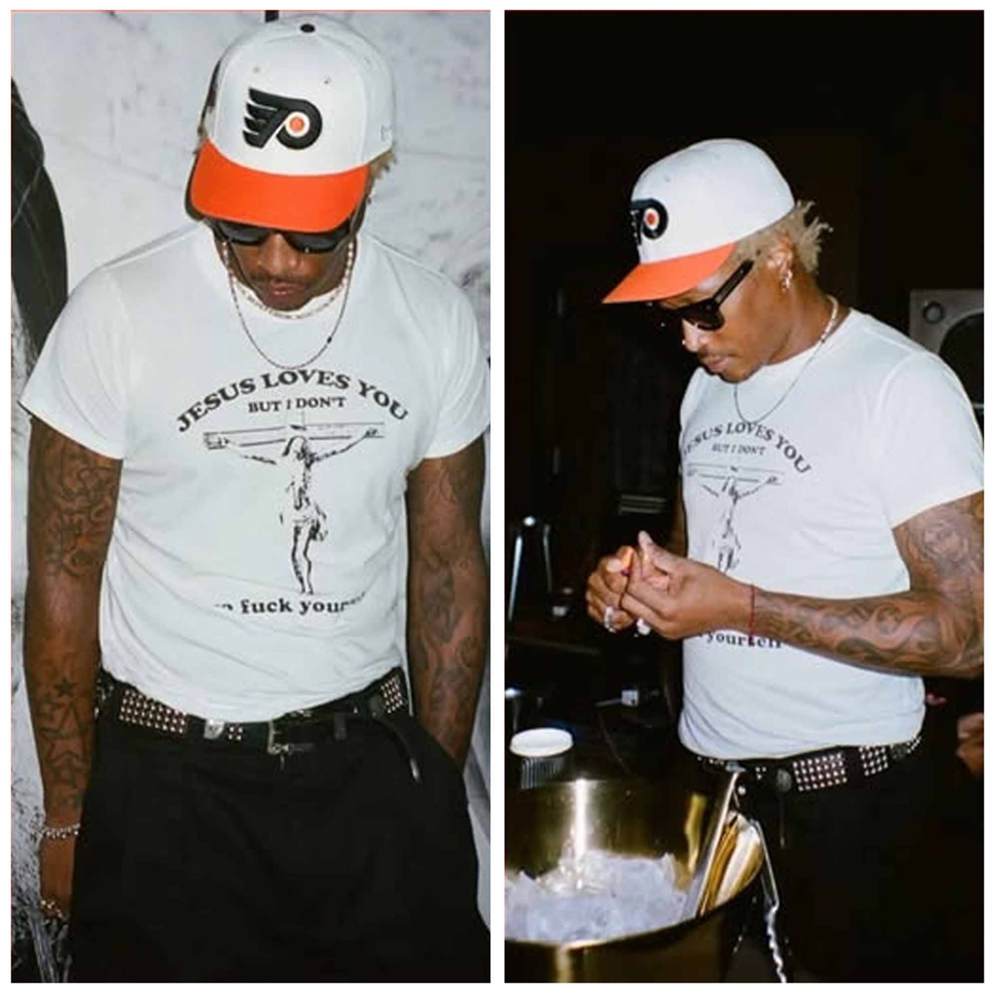 This design exploded across social platforms because it perfectly aligned with Future’s public persona as the internet’s “Toxic King,” creating an instant, shareable meme moment. The stark contrast between the sacred imagery of the crucifixion and the profane, dismissive text created a shock factor that algorithmically thrived on Twitter and Instagram. Fans immediately identified it as the ultimate mood for the era, transforming a simple graphic into a symbol of unbothered independence and boundary-setting.