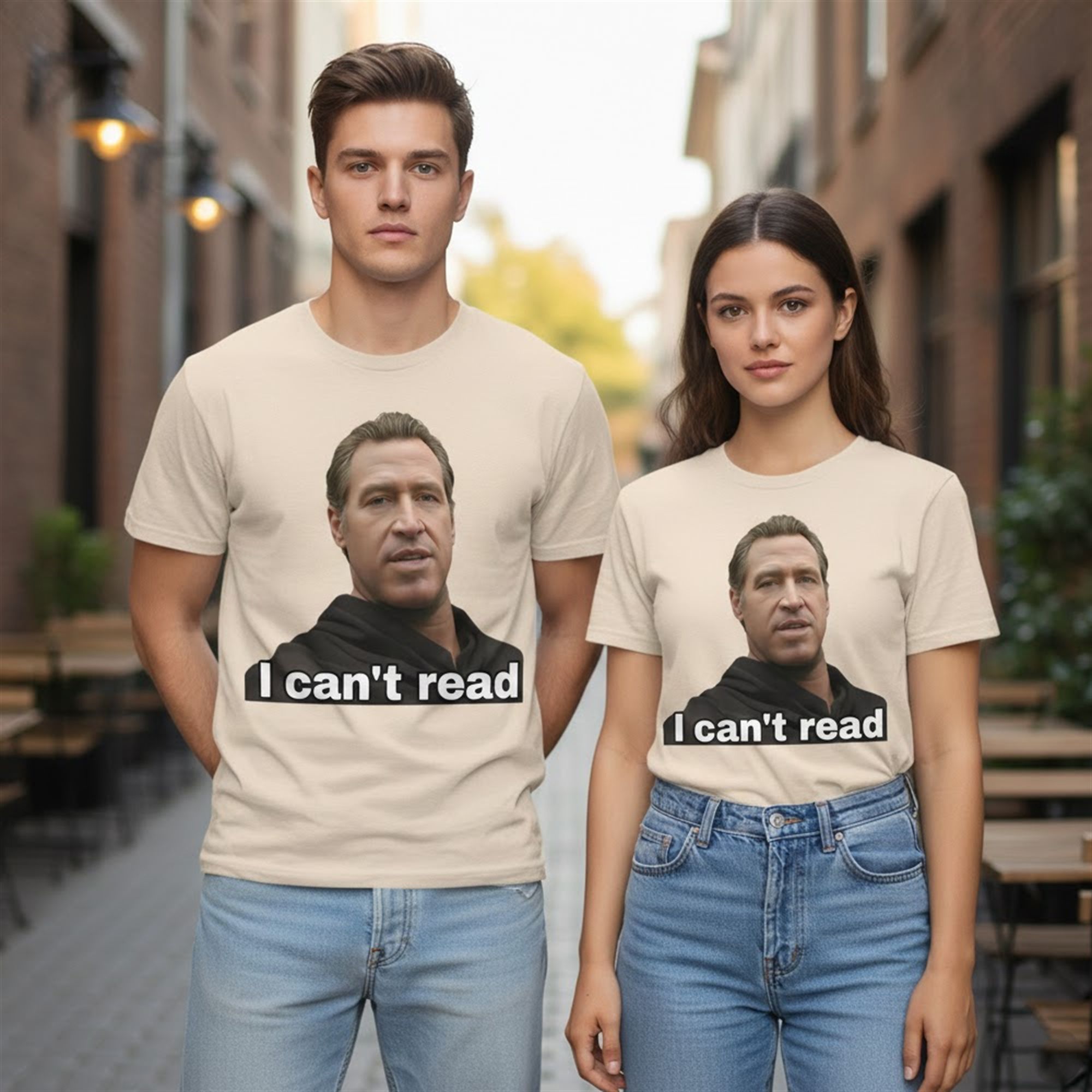 Featuring a striking portrait-style graphic paired with the bold phrase “I Can’t Read,” the design is intentionally provocative, meme-ready, and instantly recognizable.