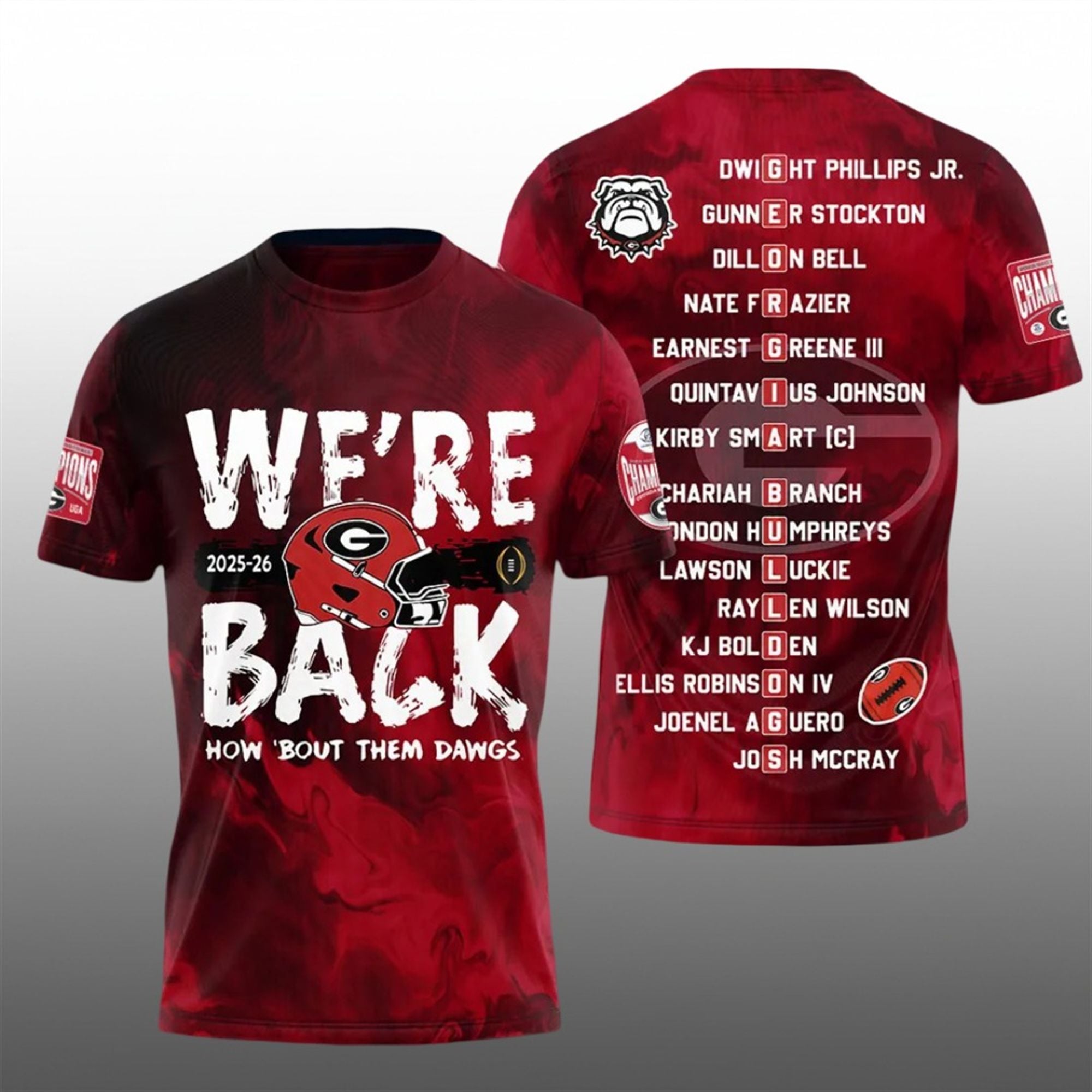 Georgia Bulldogs 2025 2026 We’re Back How Bout Them Dawgs Shirt | Fan Gear for the SEC Champions