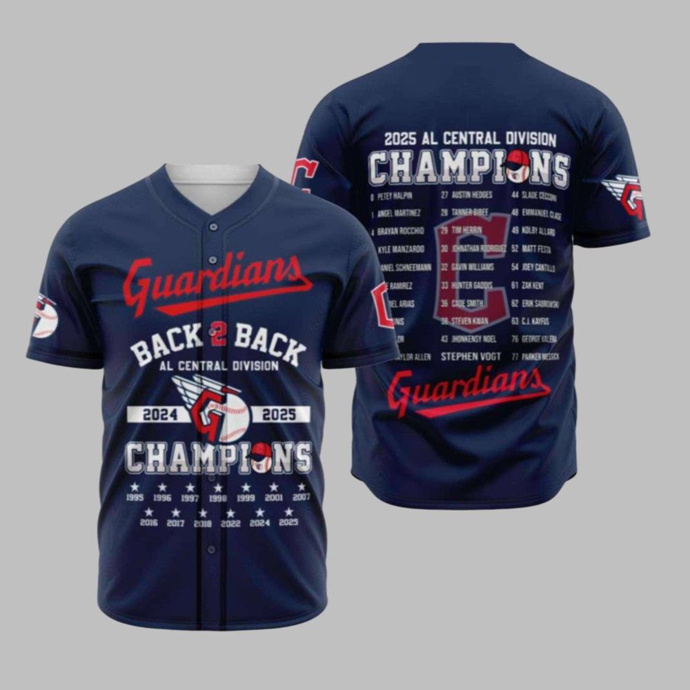 Cleveland Guardians Back 2 Back AL Central Division Champions 2024-2025 Jersey | A Roster of Champions
