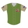 The Hickory Crawdads Military Jersey 2025 Giveaway features a striking design that immediately captures attention. The main body is presented in a distinguished olive green, a color long associated with military service, providing a respectful and authentic base. Contrasting khaki-colored sleeves add a classic touch, reminiscent of traditional military uniforms.