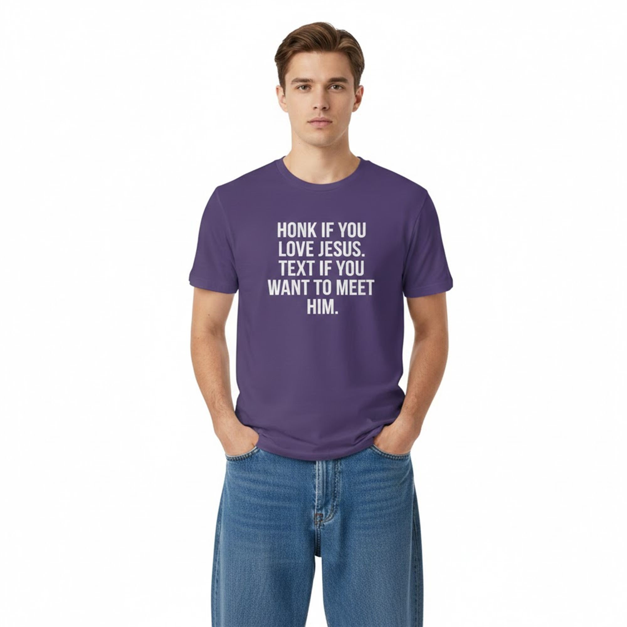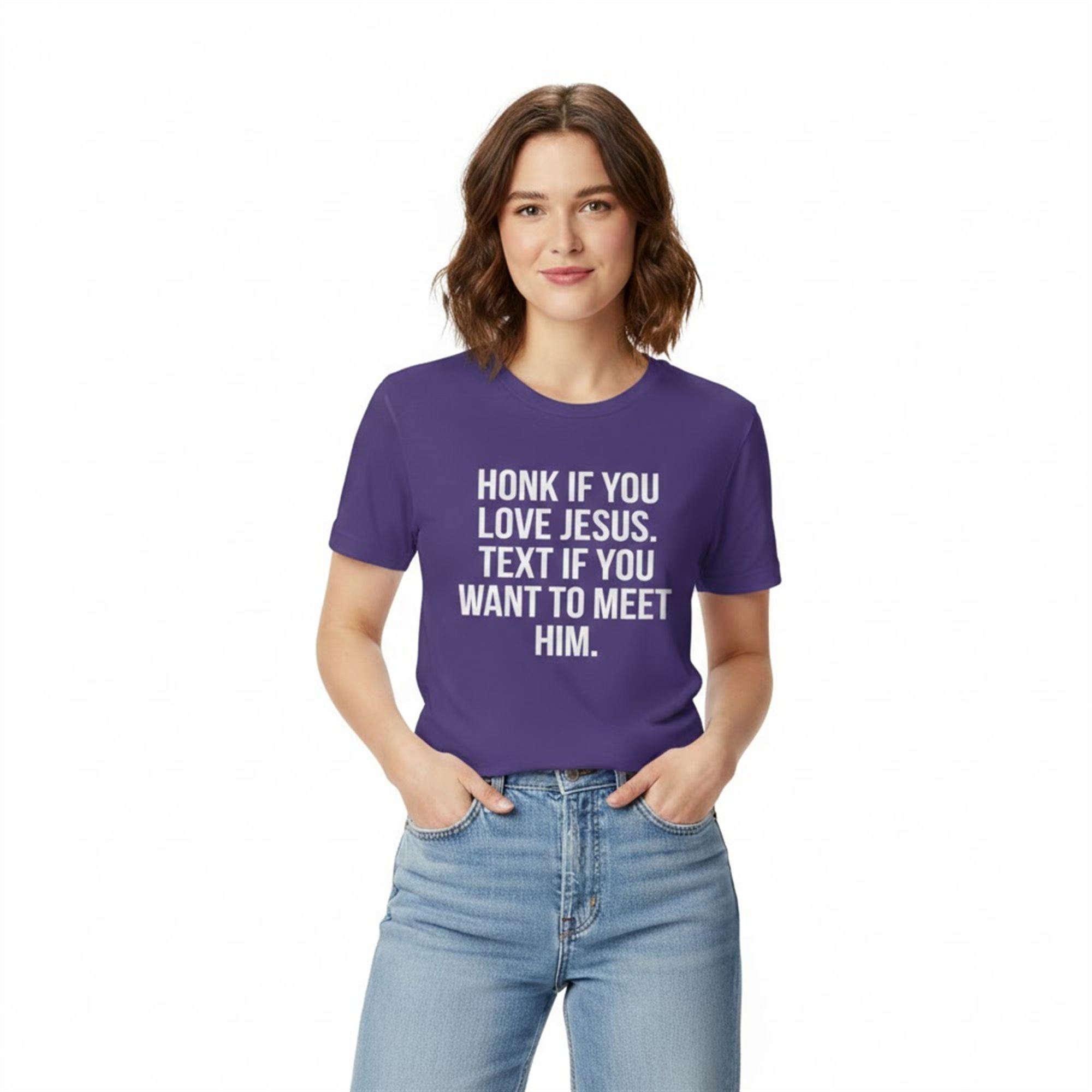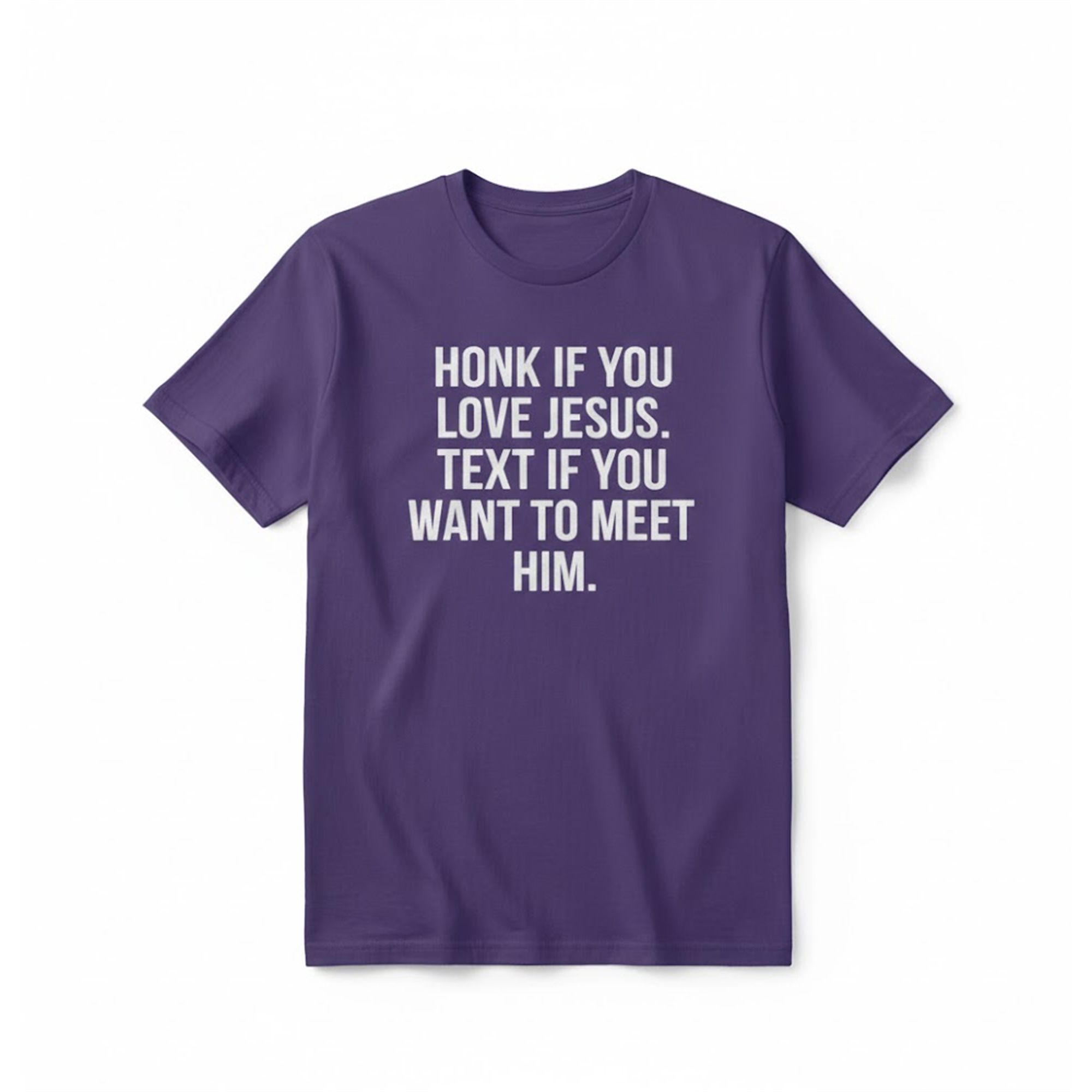 Honk If You Love Jesus Text If You Want To Meet Him T-Shirt – A Masterclass in Witty Commentary