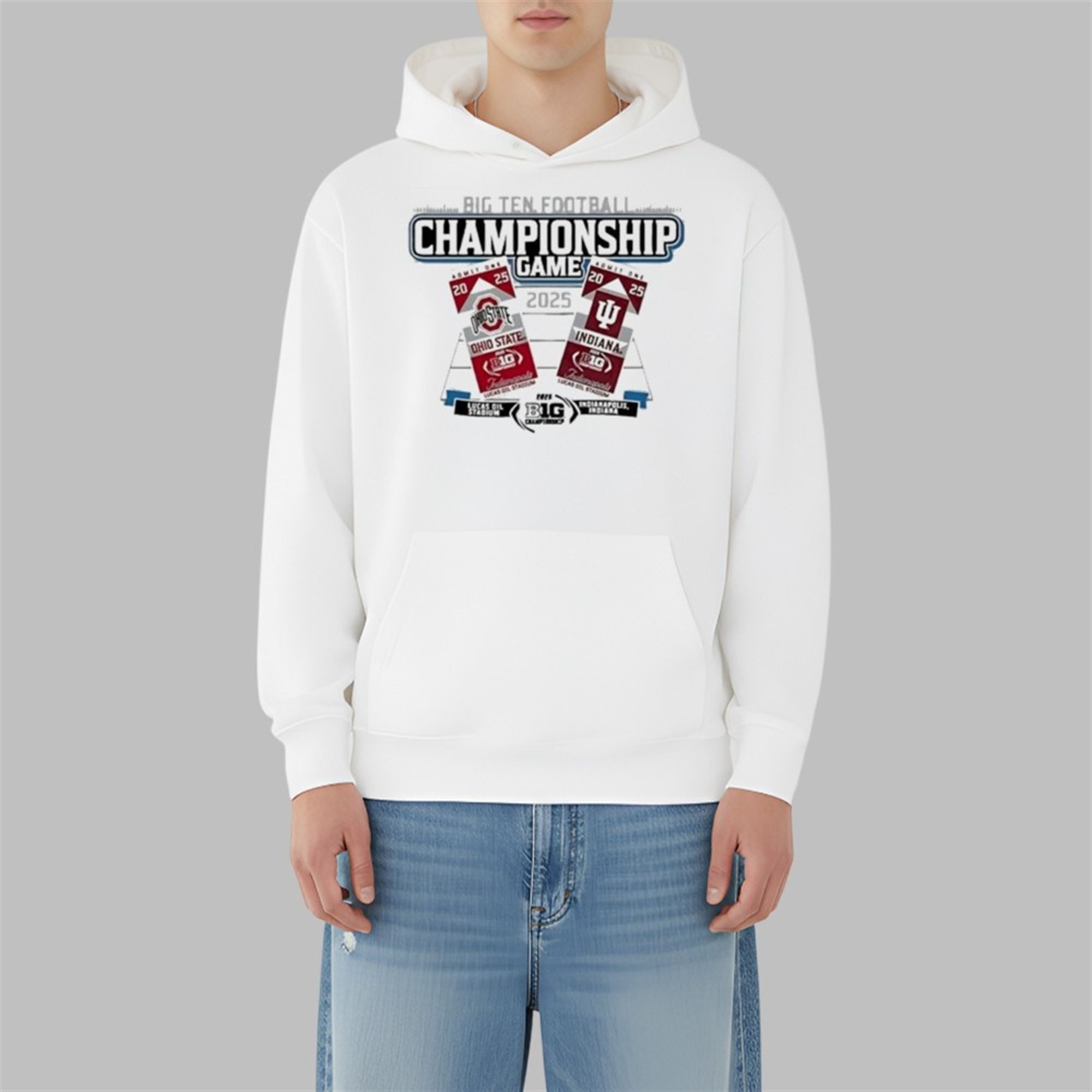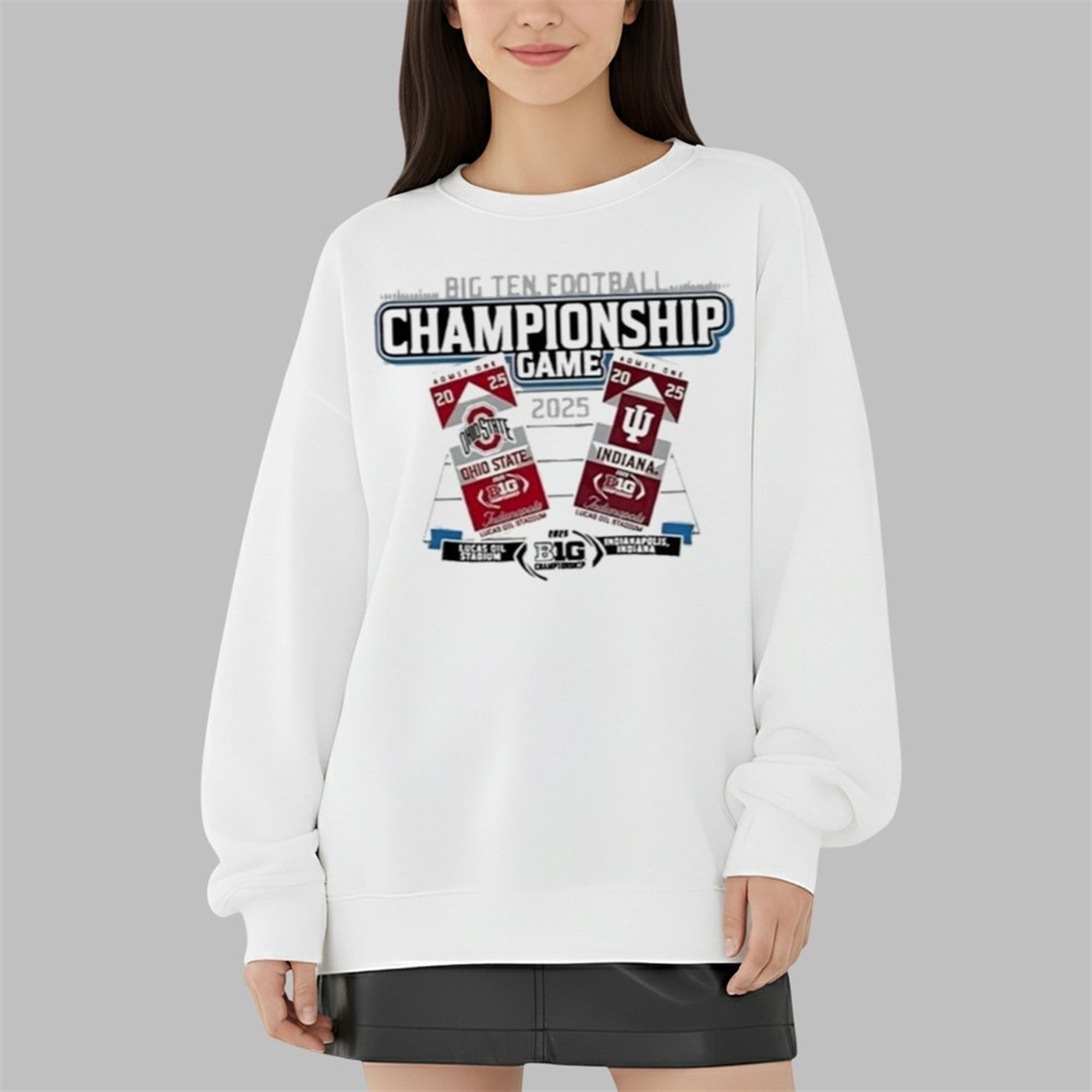 This shirt is more than just fabric; it tells the story of the season. For the first time in history, the Big Ten Championship features two undefeated teams. The design honors the #1 Ohio State Buckeyes, looking to reclaim their throne, and the Cinderella story of the #2 Indiana Hoosiers, making their first-ever trip to the title game. Owning this shirt means owning a piece of Big Ten lore.