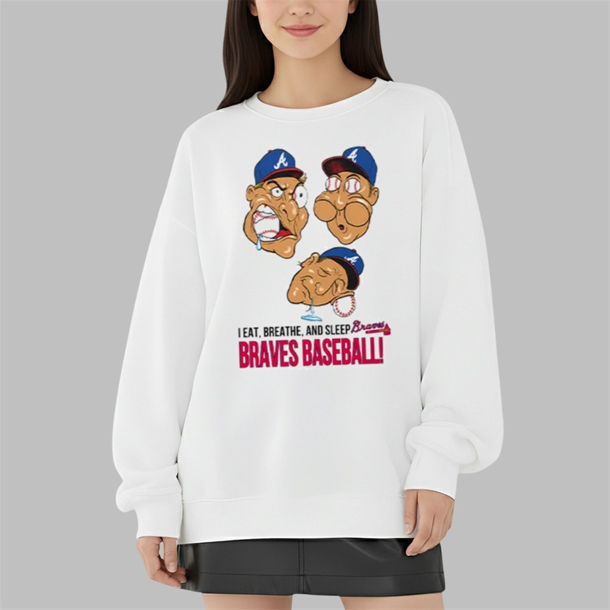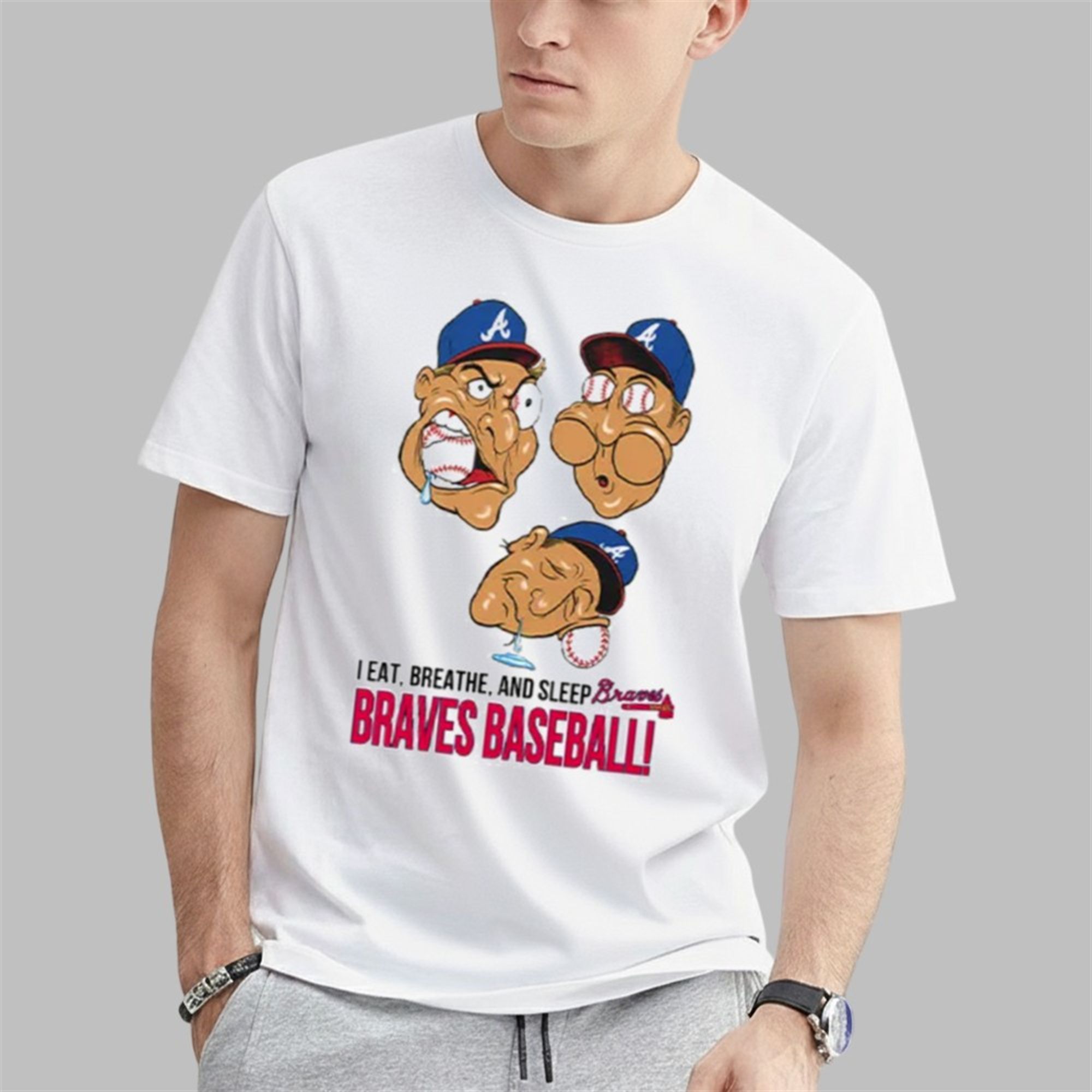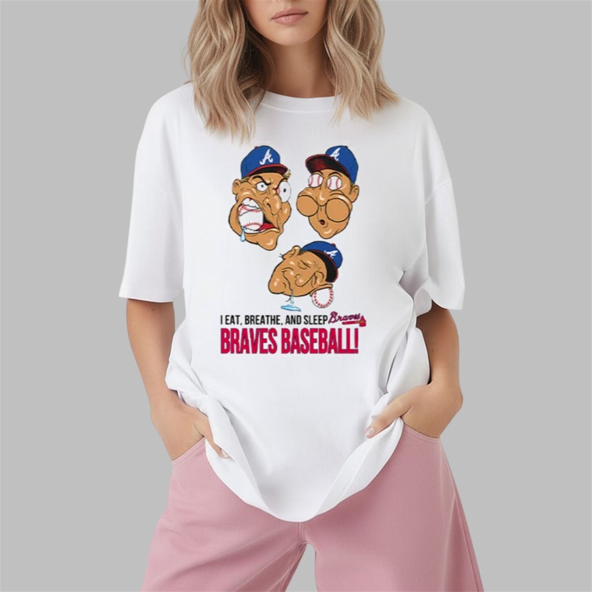 Finding the perfect gift for the Atlanta Braves lover who has everything can be a challenge, but this viral sensation hits a home run. The I Eat Breathe And Sleep Braves Baseball Shirt combines vintage cartoon aesthetics with modern sports meme culture. It captures the humor and the “madness” of baseball fandom in a way that standard logo tees cannot.
