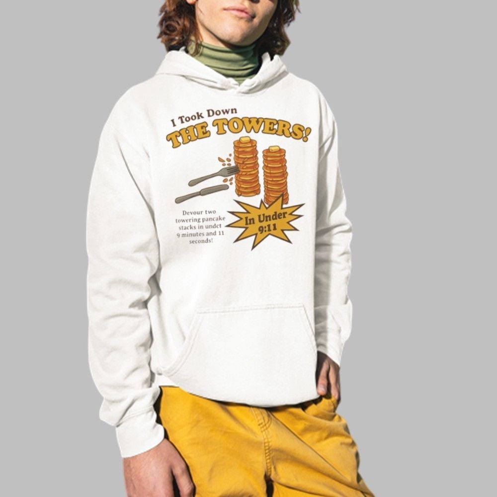 Looking for a fun and unique shirt that celebrates an epic pancake-eating feat? The “I Took Down The Towers In Under 9 11 Shirt ” is the perfect blend of humor, food challenge spirit, and eye-catching design. Whether you’re a breakfast lover, a competitive eater, or someone who loves quirky apparel, this shirt lets you wear your triumph proudly and stand out in any casual setting.