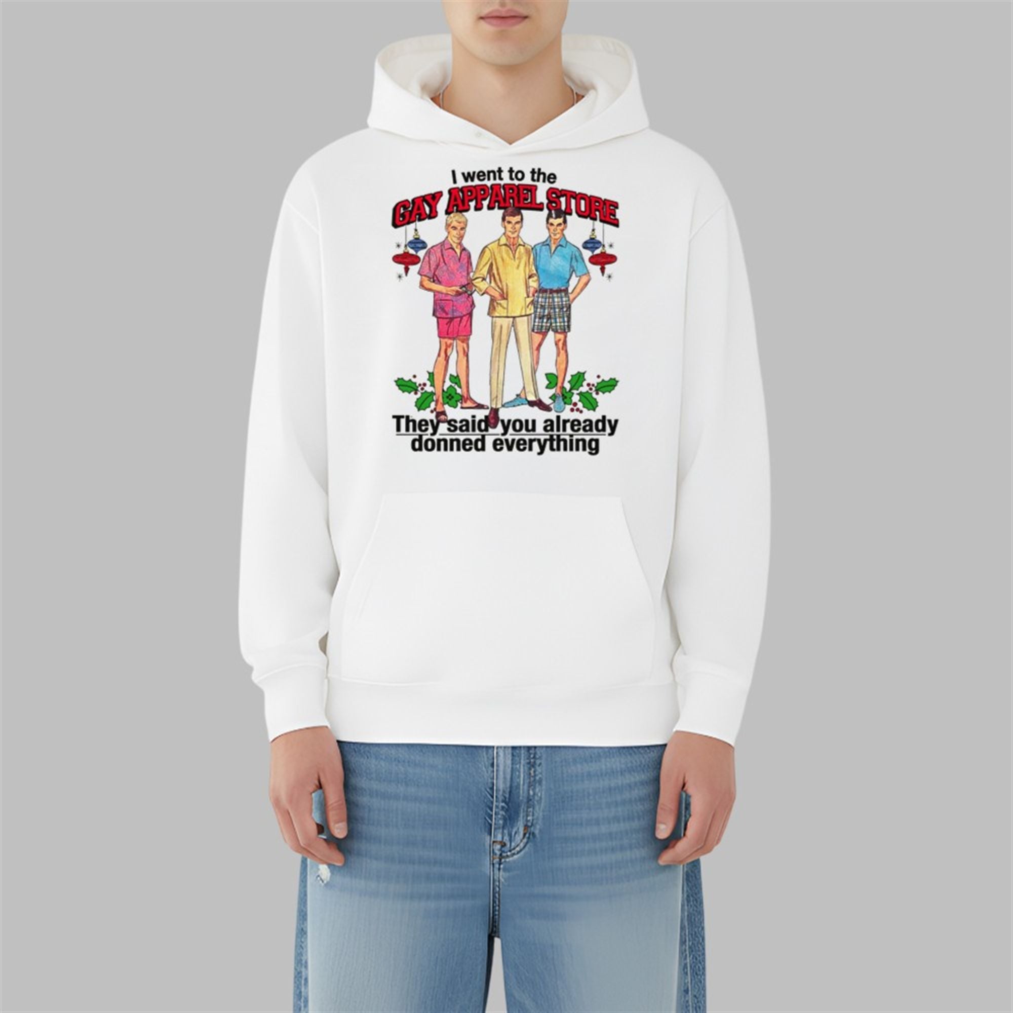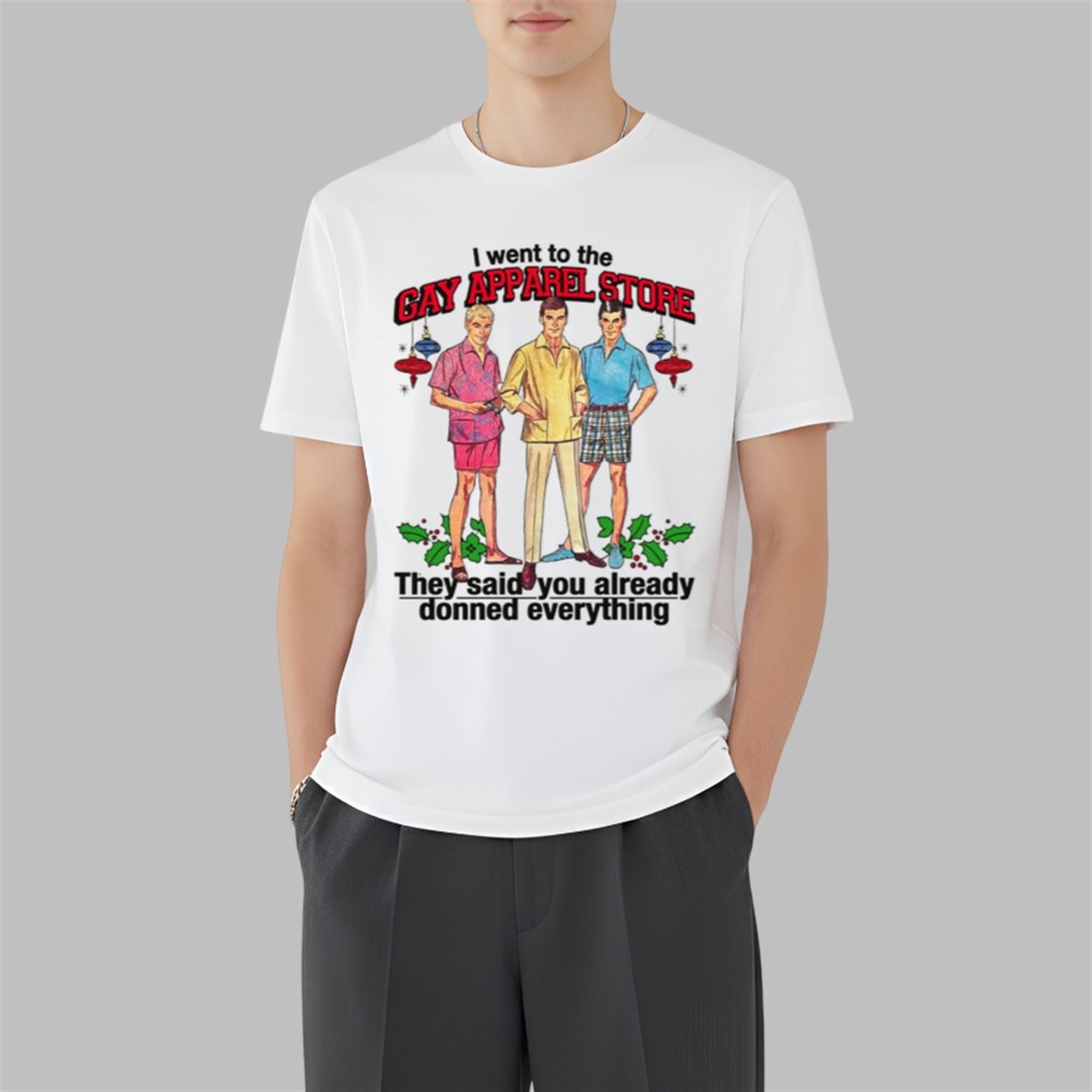 Get ready to “deck the halls” with a serious dose of humor this holiday season! Our I Went To The Gay Apparel Store They Said You Already Donned Everything Shirt is the ultimate conversation starter for your upcoming Christmas parties.