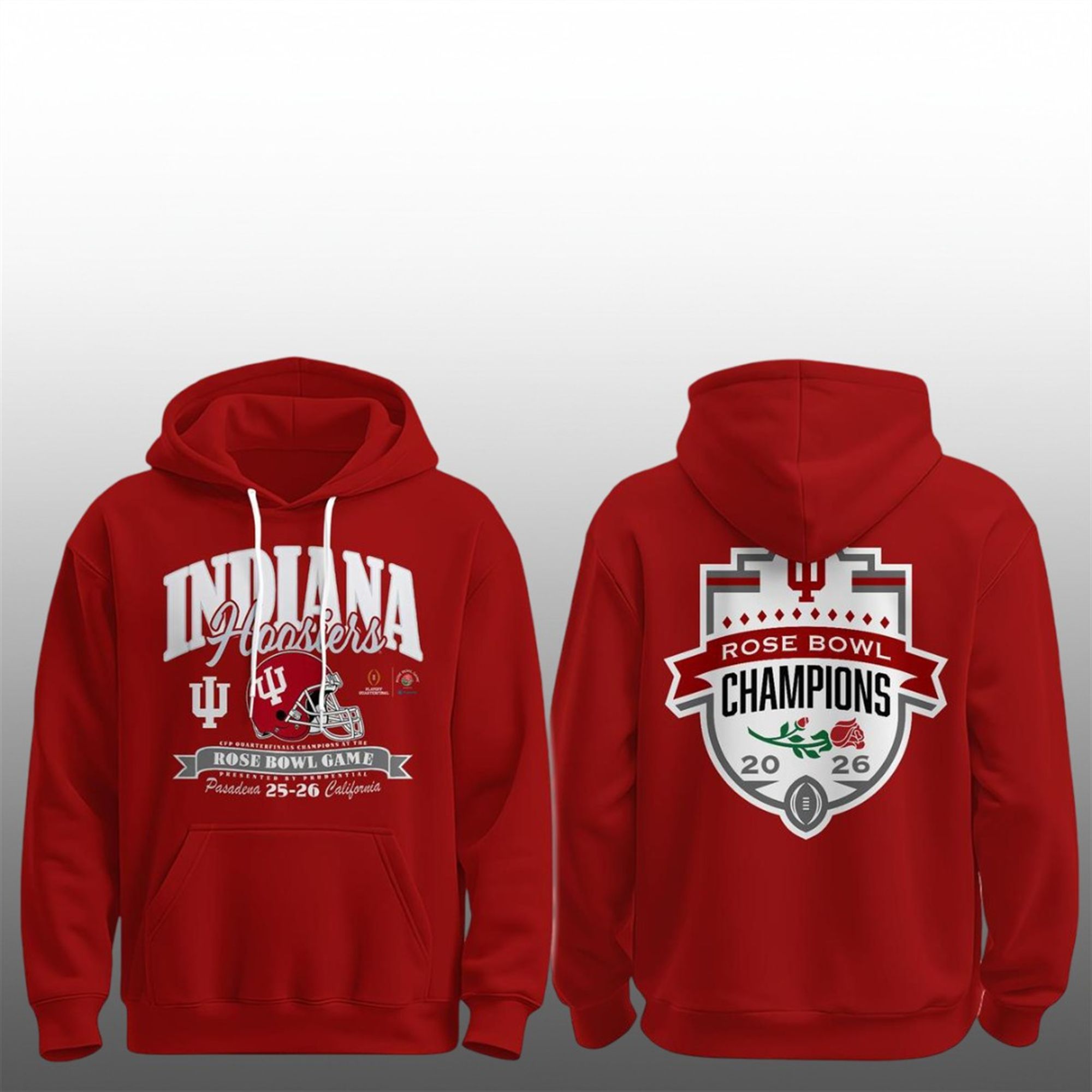The hoodie is more than just fan apparel; it is a wearable trophy for a fanbase that has waited generations for this level of dominance. After a historic 14-0 run and a commanding performance against Alabama in the CFP Quarterfinal, this hoodie serves as the ultimate keepsake. The front features the classic “Indiana Hoosiers” script paired with the Rose Bowl Game wordmark and helmet graphic, grounding the design in the tradition of the “Granddaddy of Them All.”