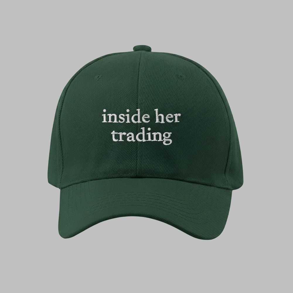 Are you fluent in financial puns and market memes? The Inside Her Trading Hat is your new portfolio essential. This masterfully designed cap features a clever play on words “Inside Her Trading” that will be instantly recognized and appreciated by anyone in the finance world. It’s a subtle yet brilliant statement, perfect for sparking conversations and sharing a laugh with fellow traders, analysts, and investors.