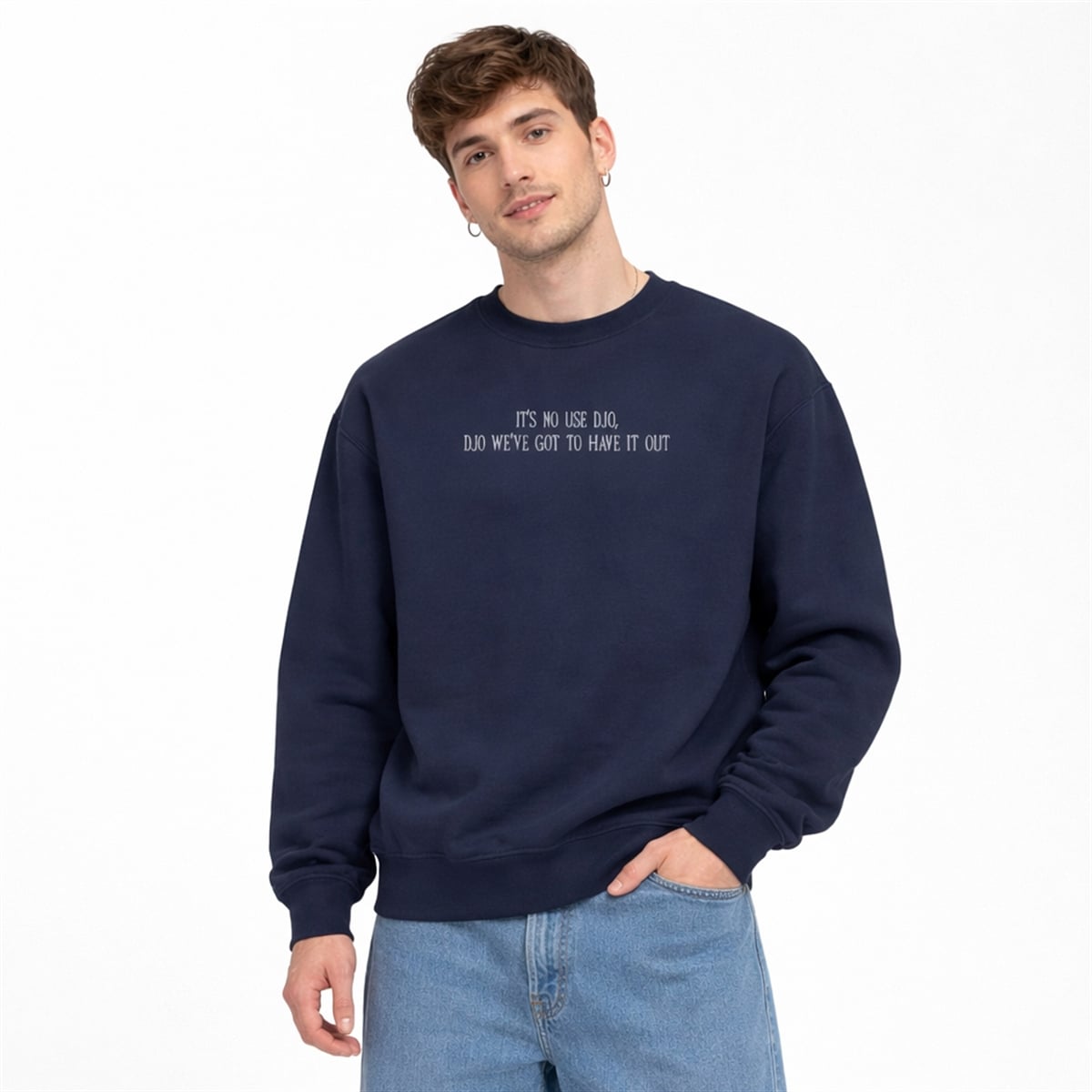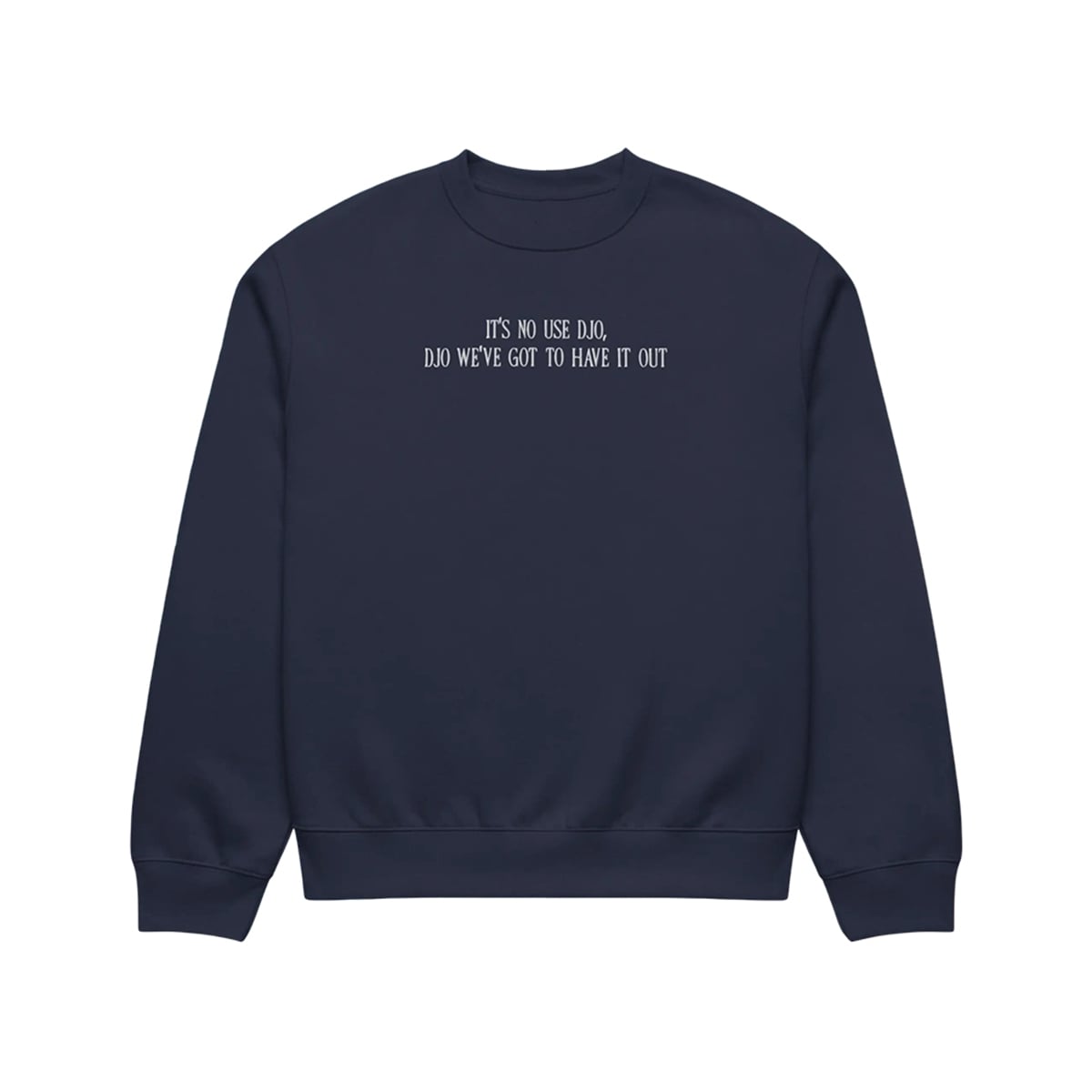Step into the center of contemporary internet culture with the It’s No Use Djo Djo We’ve Got To Have It Out Sweatshirt. Designed for those who live at the intersection of indie music devotion and literary humor, this apparel piece is more than just a graphic; it is a wearable inside joke.