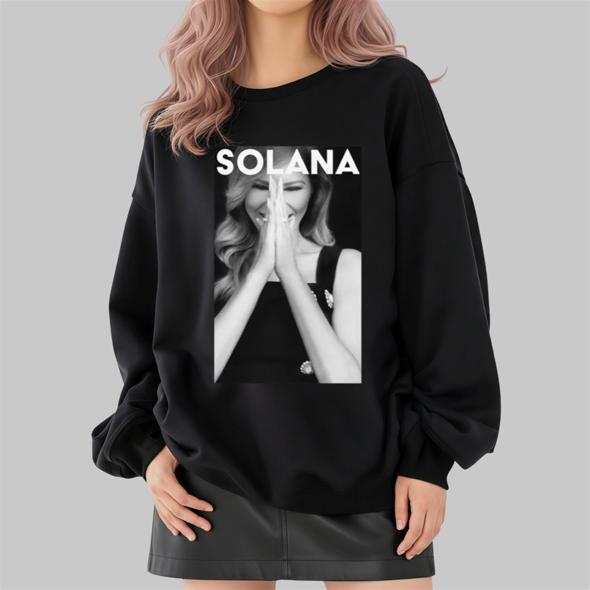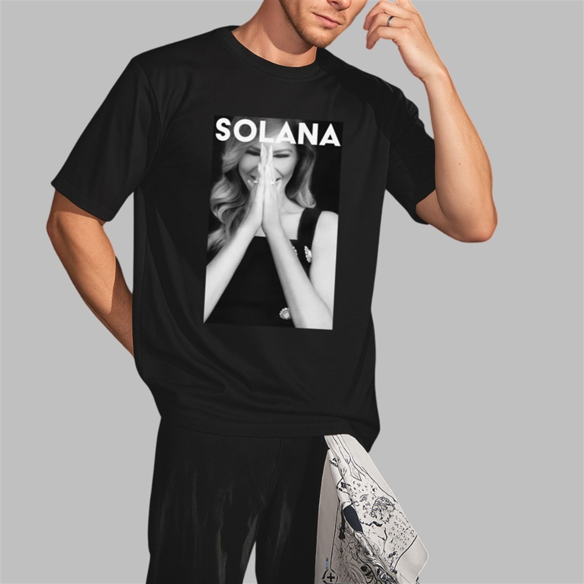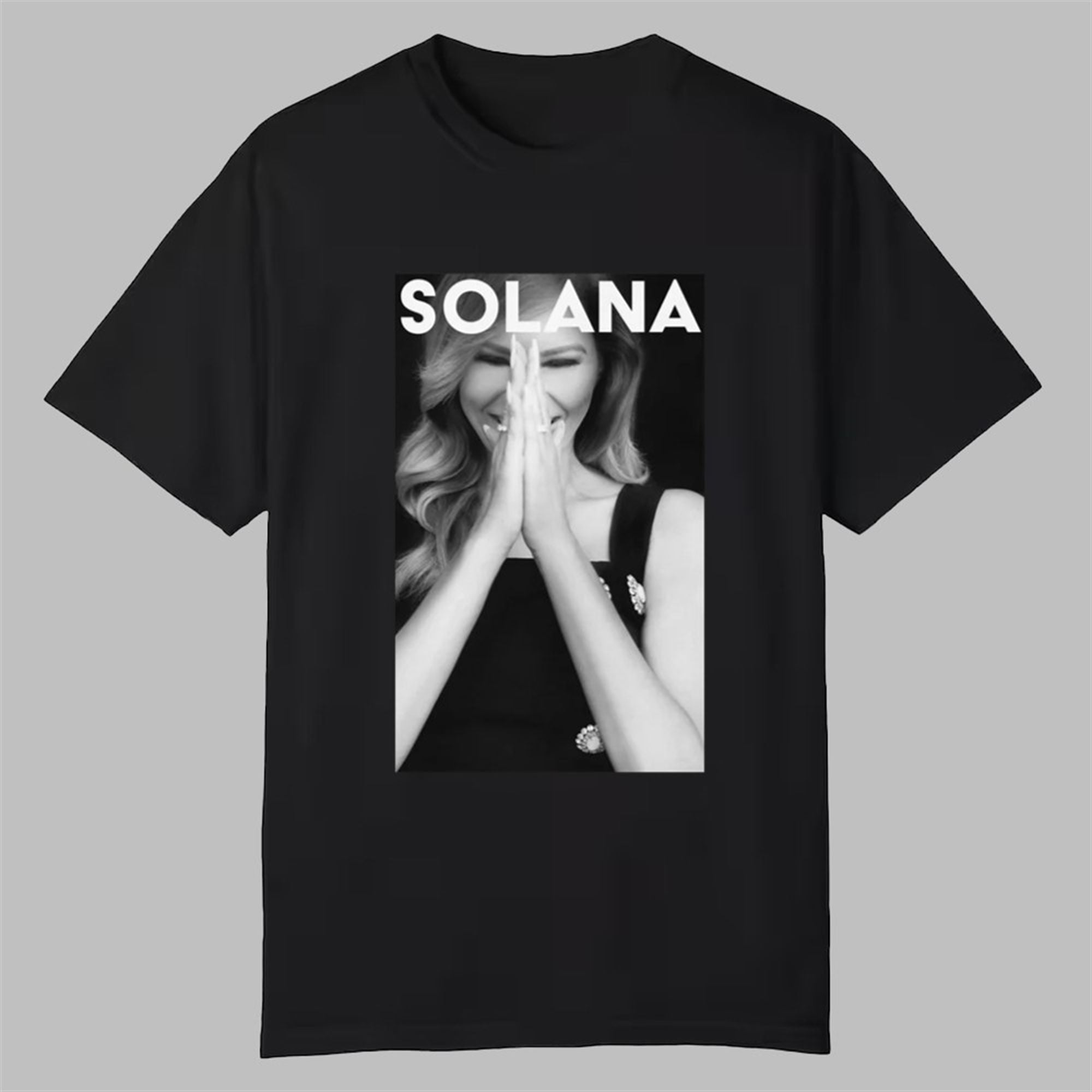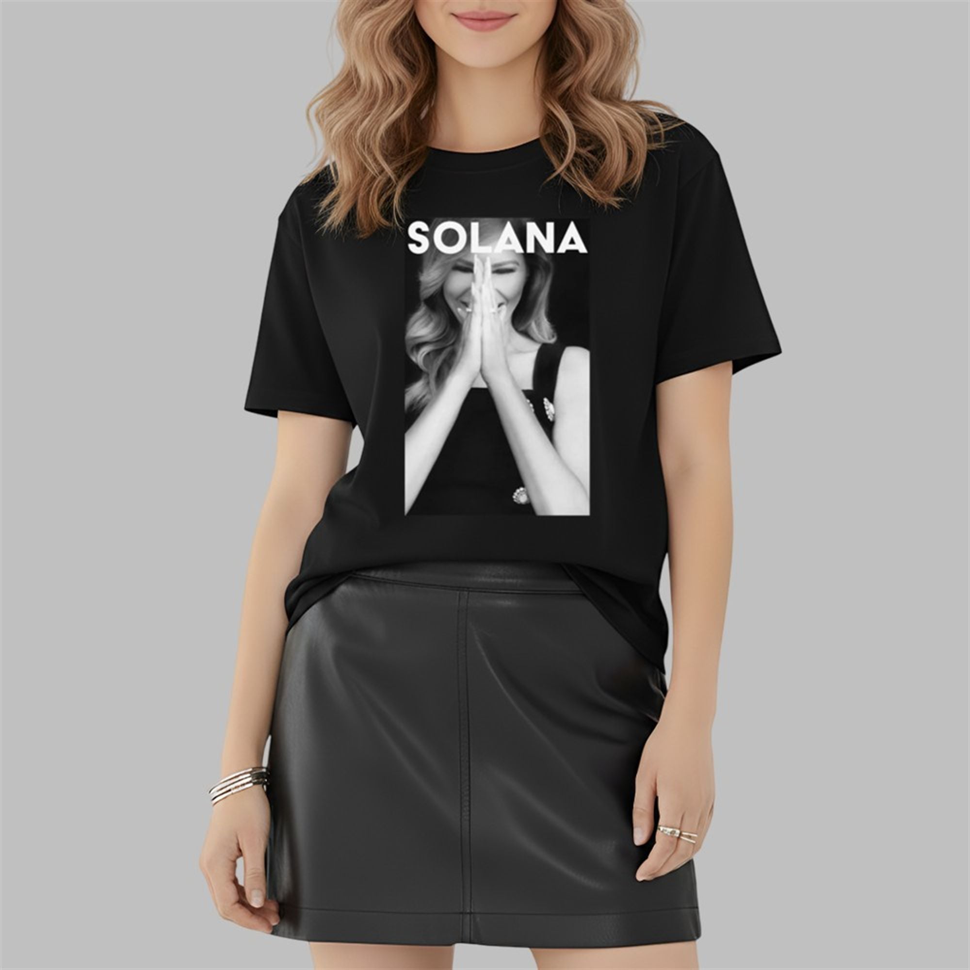 The Melania Solana Shirt is more than just merchandise; it is a symbol of the aggressive, fast-paced, and often surreal culture of the Solana blockchain in late 2025. Featuring a stark, black-and-white portrait of Melania Trump with bold, sans-serif “SOLANA” text above, this design riffs on the classic 90s “bootleg rap tee” aesthetic that has dominated streetwear trends.