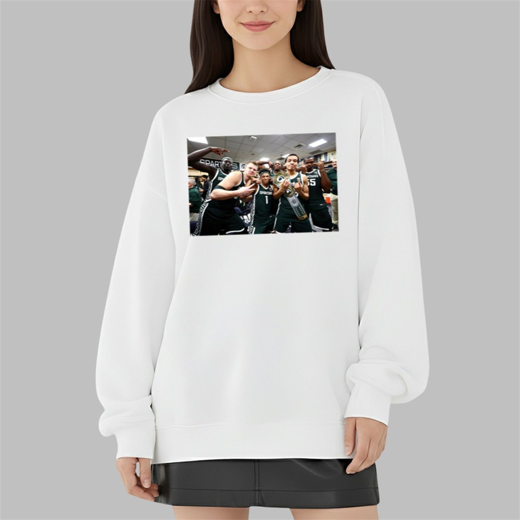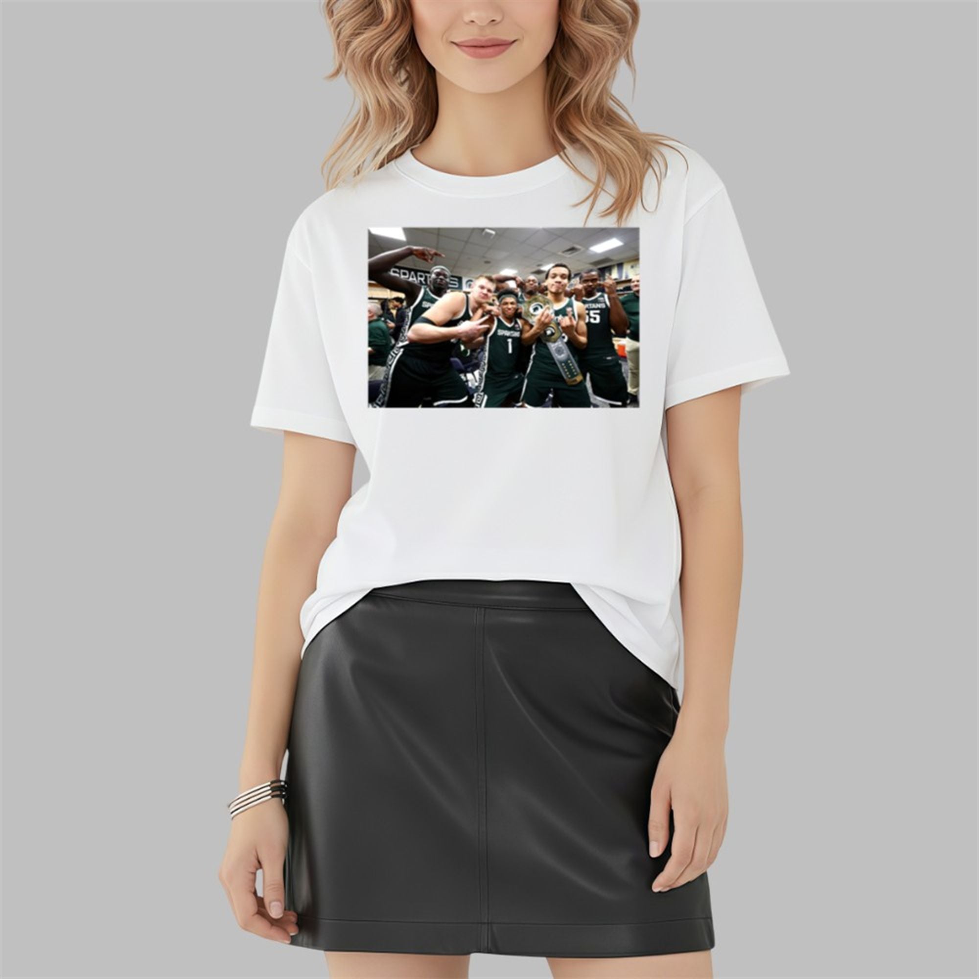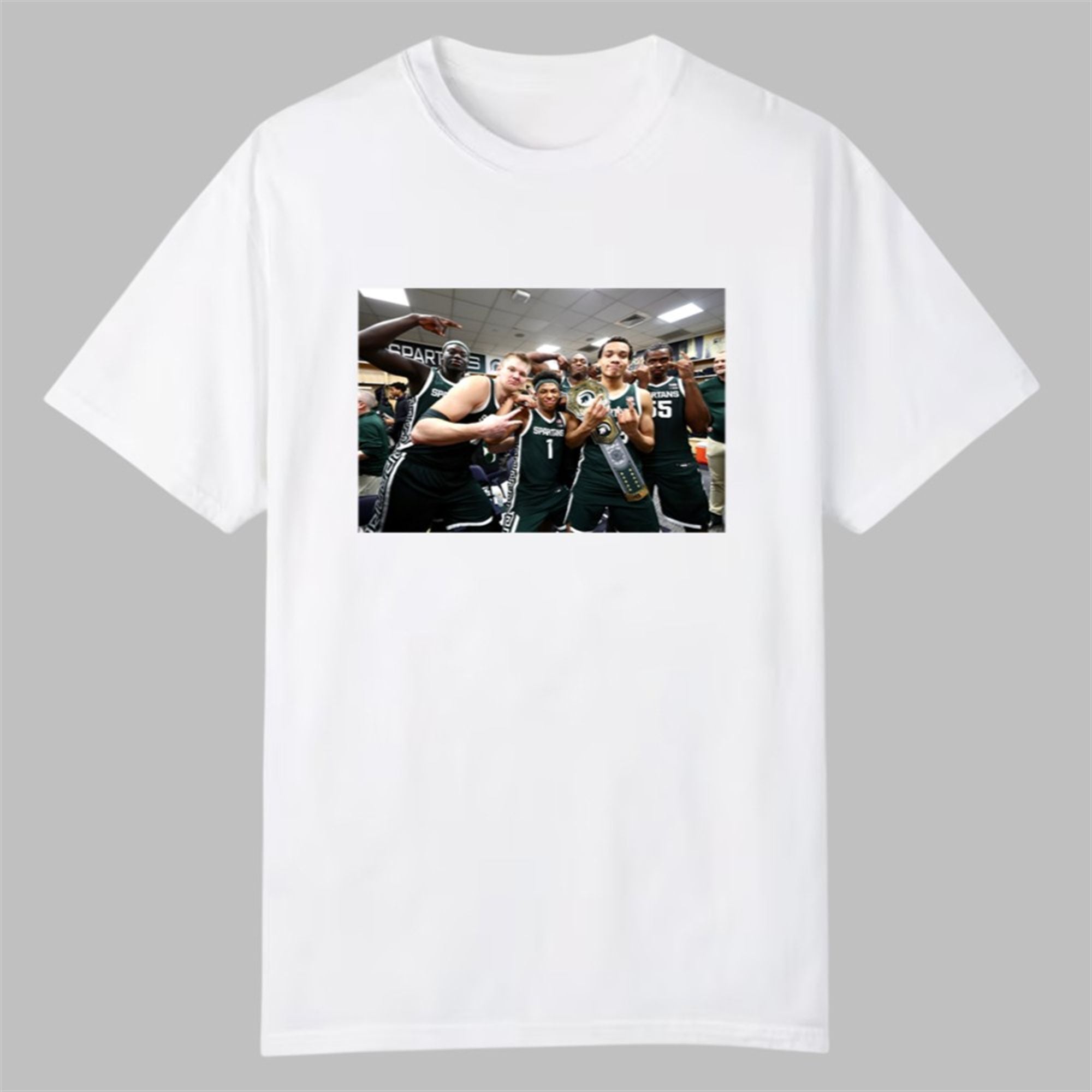 In the world of college basketball, few fanbases are as passionate as Michigan State’s. This shirt captures a raw, authentic moment of celebration that defines the Tom Izzo era. The graphic features key players in the locker room, post-game, posing with the coveted “Dawg” championship belt—a symbol awarded to the player who showed the most grit and toughness on the court.