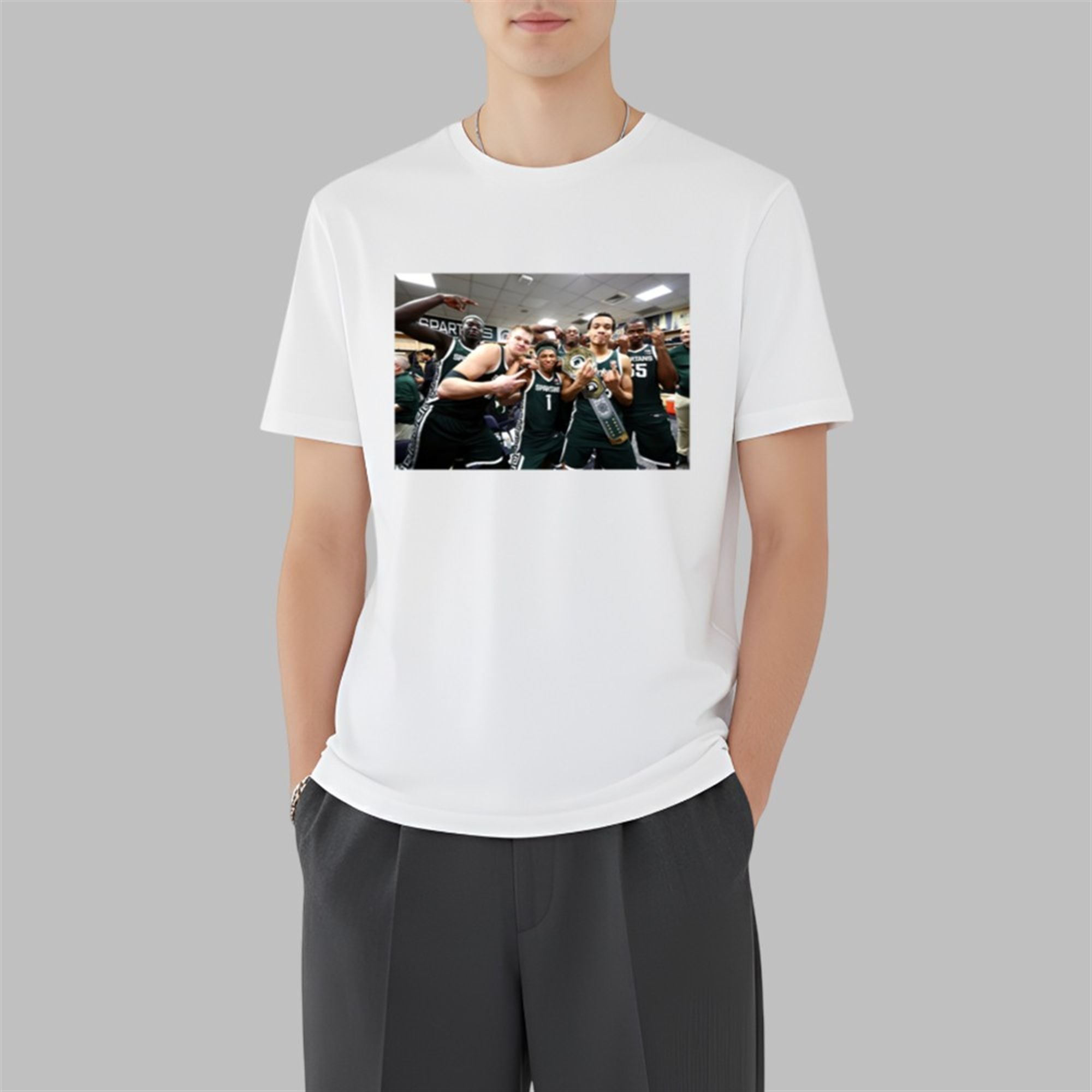 This isn’t just a t-shirt; it is a signal to other fans that you are deep in the culture. By wearing the shirt popularized by Jeff Kohler (a recognizable face in the Spartan fanbase), you are connecting with the viral energy that drives the team during March Madness and Big Ten play. Printed on a crisp, classic white tee, the vibrant photo stands out, making it a conversation starter at tailgates, watch parties, or around campus in East Lansing.