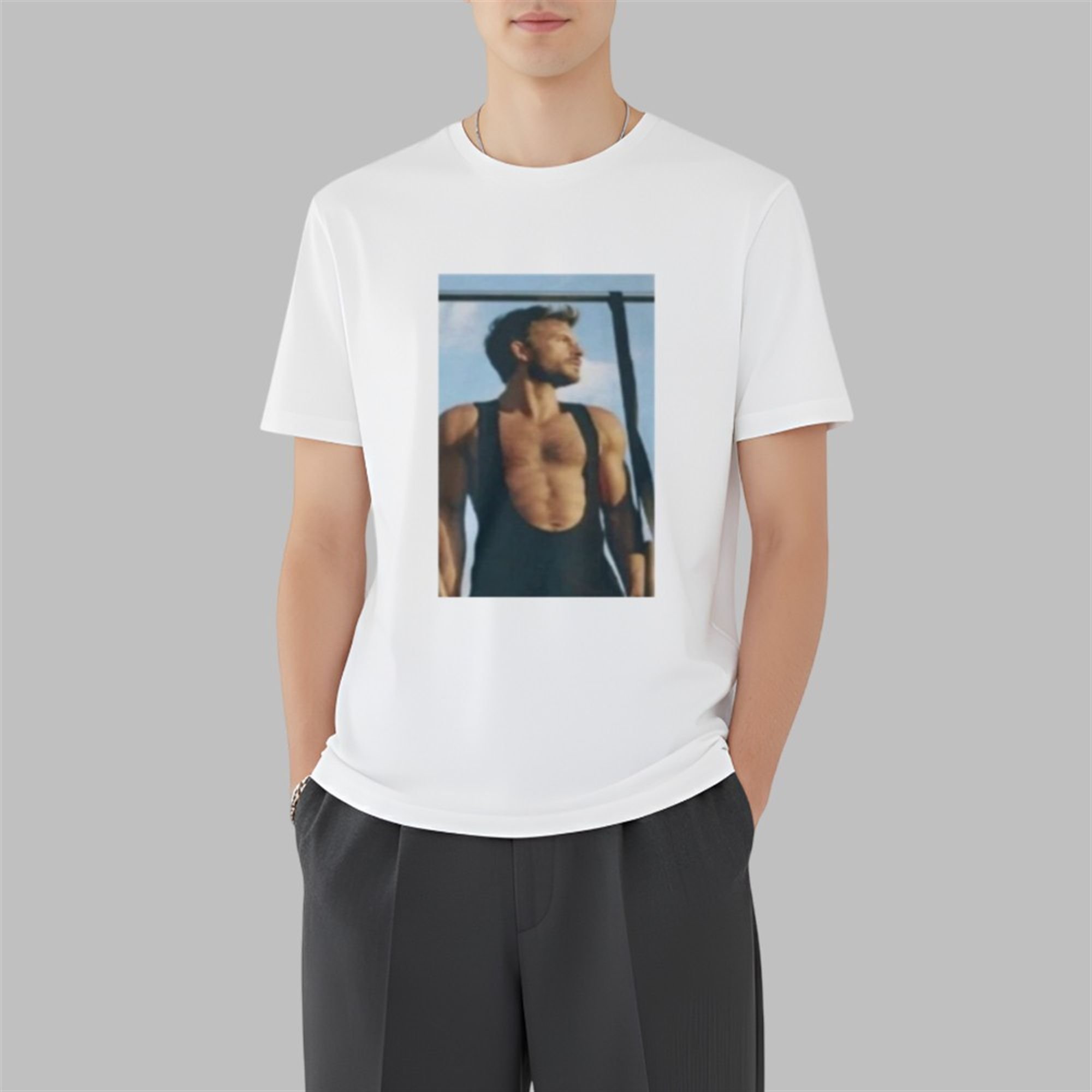 The design is centered on an iconic, artistic portrait. This isn’t a low-quality screenshot; it’s the legendary photograph that showcases Bailey’s rugged charm and classic good looks, printed with stunning clarity. Set against the clean white backdrop of a premium cotton tee, the image stands out as a piece of wearable art. It’s a subtle, stylish nod that true fans—the “Jonny” Bailey cognoscenti—will recognize and appreciate instantly.