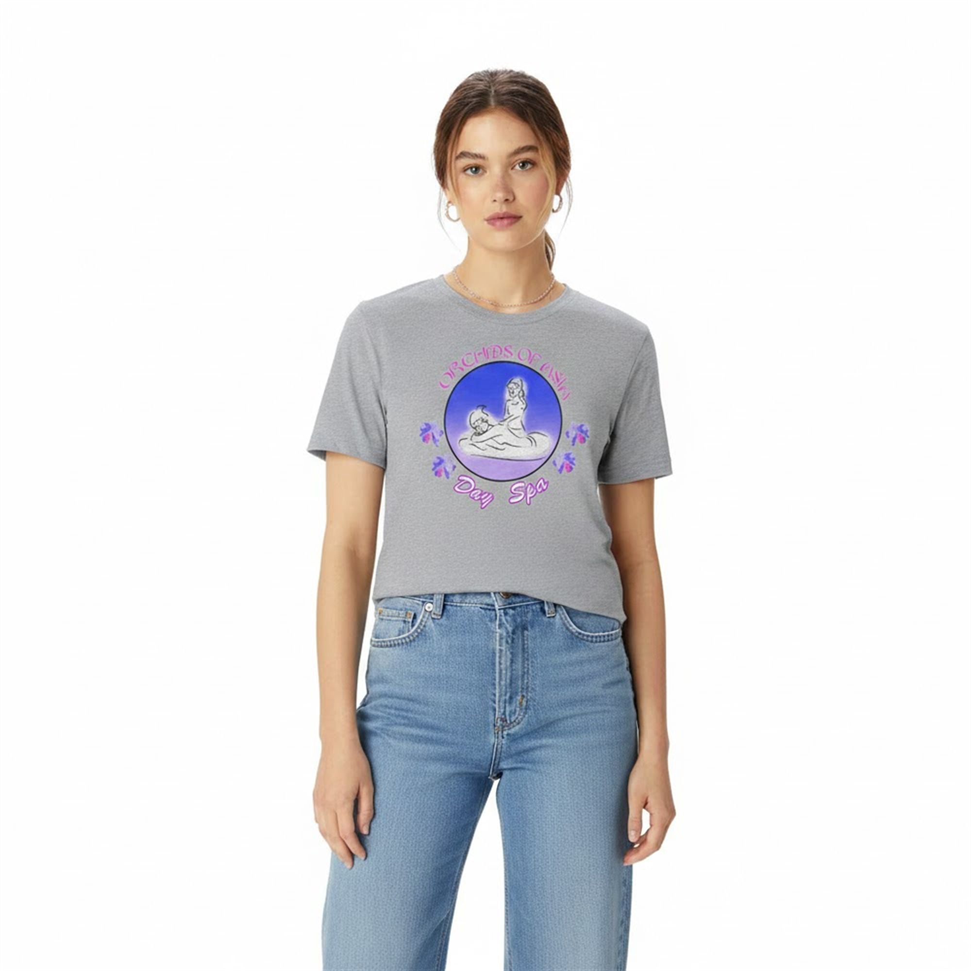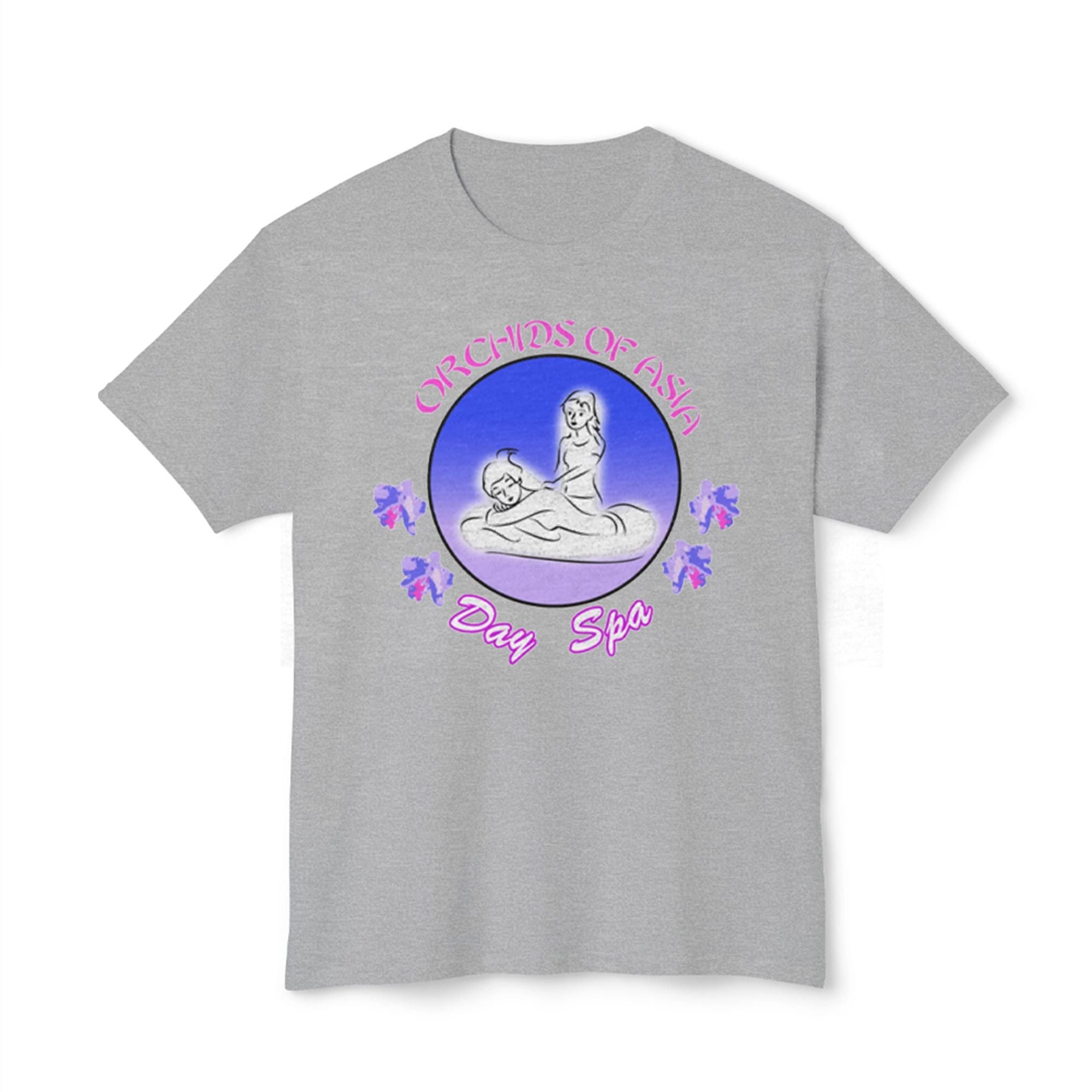 The shirt is more than just a graphic tee; it is a wearable piece of modern satire. The design features a retro-inspired logo of the “Orchids of Asia Day Spa,” the establishment at the center of the 2019 controversy involving Robert Kraft. The graphic utilizes a vintage aesthetic with neon-style lettering and a central illustration that mimics classic 90s strip-mall signage.