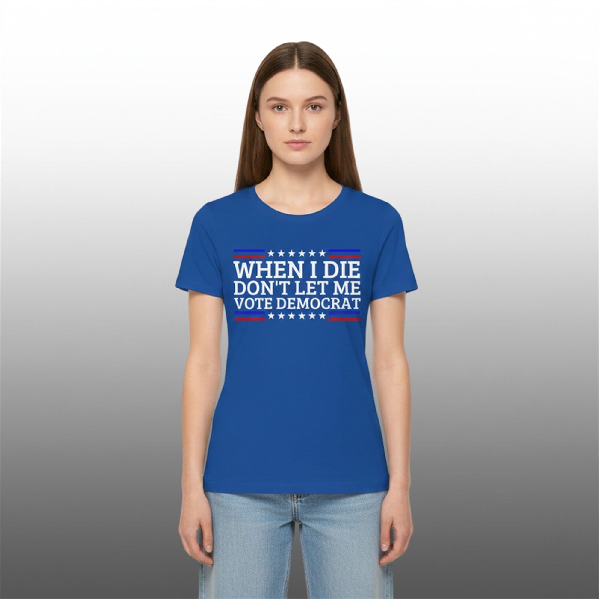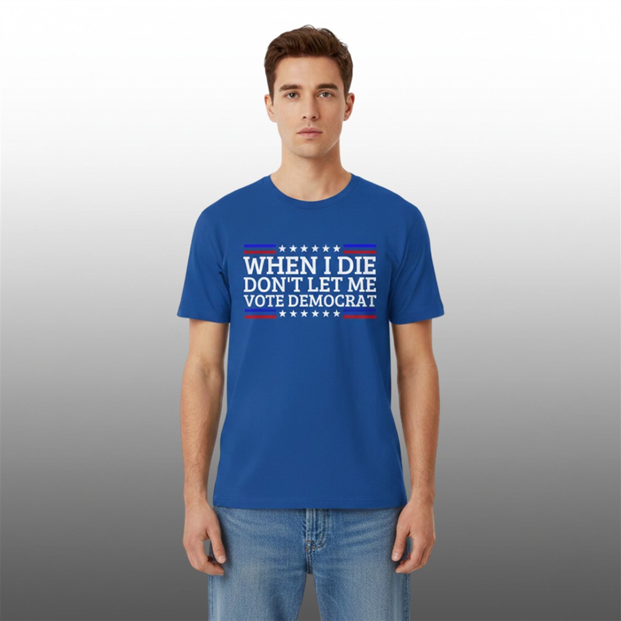 The shirt is designed for the bold, the unapologetic, and the humorous. In an era where political discourse is constant, this item cuts through the noise with a satirical slogan that references a common talking point in conservative circles regarding election integrity and voting records. The design features high-contrast typography “When I Die Don’t Let Me Vote Democrat”, typically utilizing a patriotic color palette of red, white, and blue to ensure the text pops from a distance.
