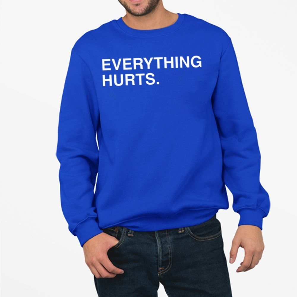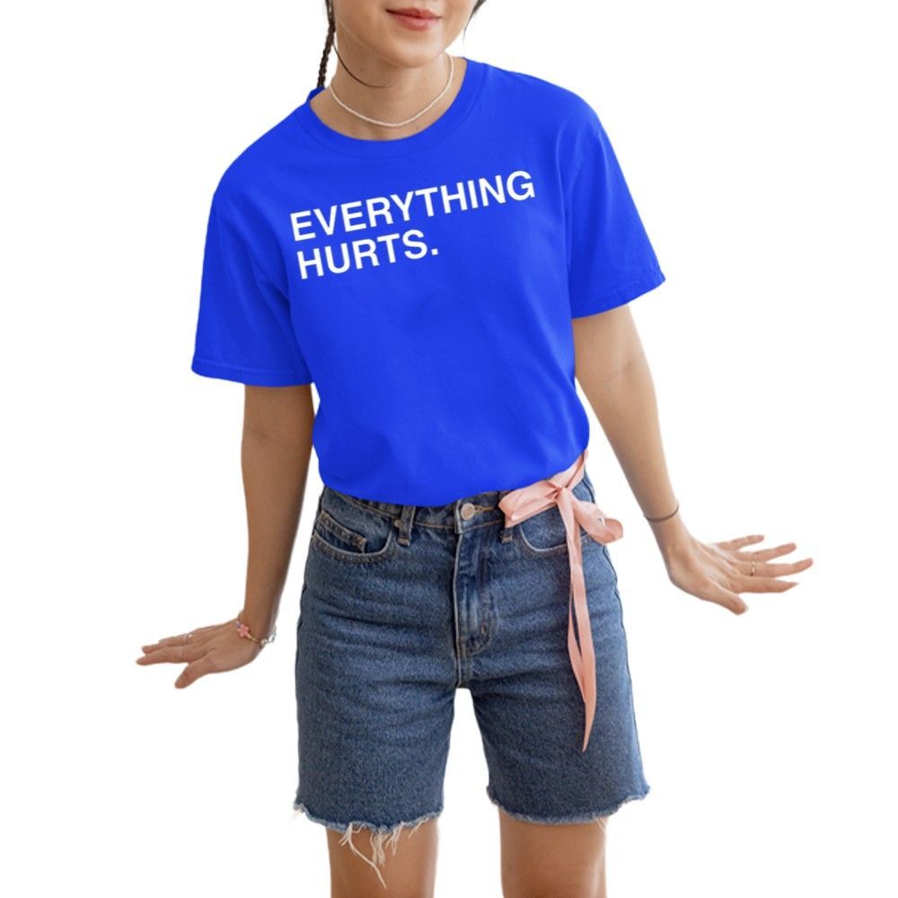 Being a Chicago Cubs fan is a journey filled with incredible highs and character-building lows. This shirt perfectly captures that duality. The bold, minimalist “EVERYTHING HURTS.” text, printed in crisp white against a vibrant royal blue, is a testament to those tough losses and nail-biting games. Yet, it’s worn with a smile, a nod to the resilience required to be a true supporter. It’s the perfect attire for game days at the ballpark, watch parties with fellow fans, or any day you need to express that uniquely athletic brand of existential dread with a touch of wit. This is the piece of fan gear that says you’ve been there, you get it, and you’ll be back for the next game anyway.