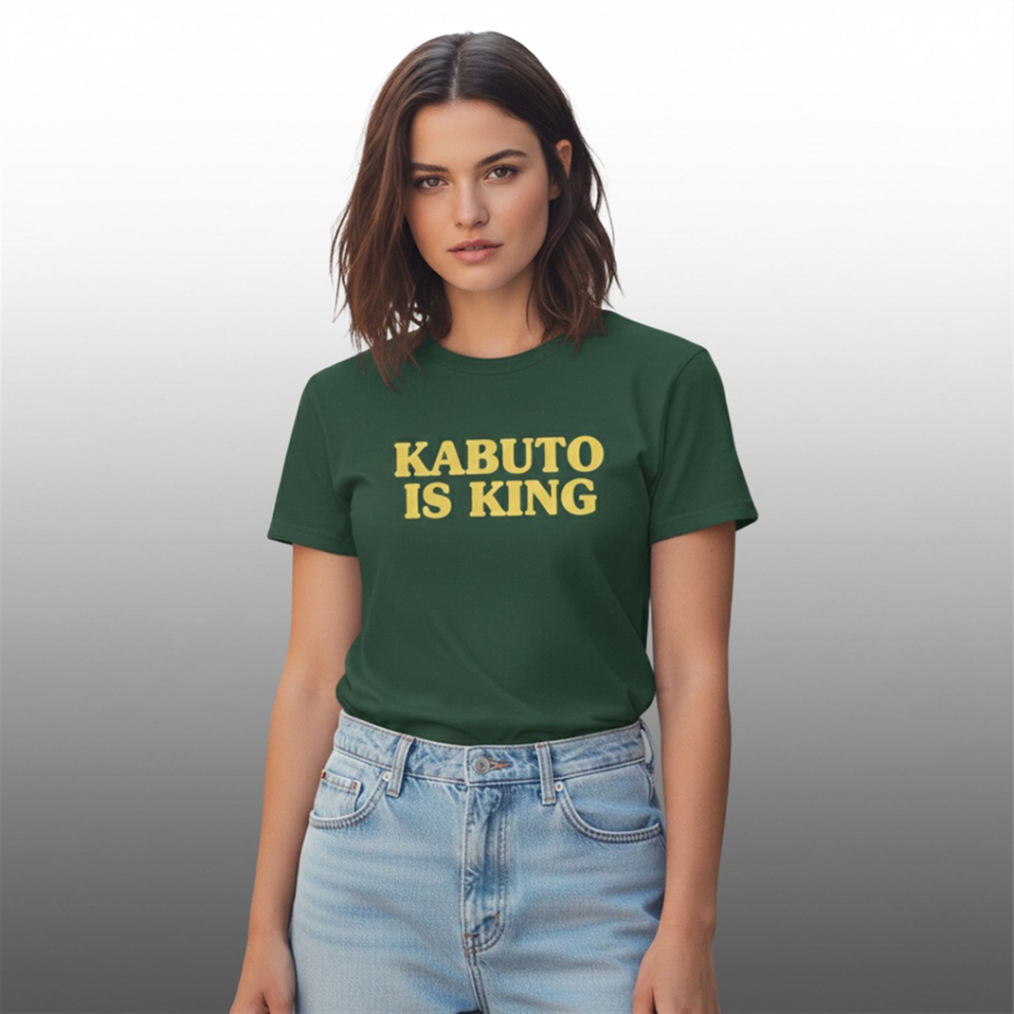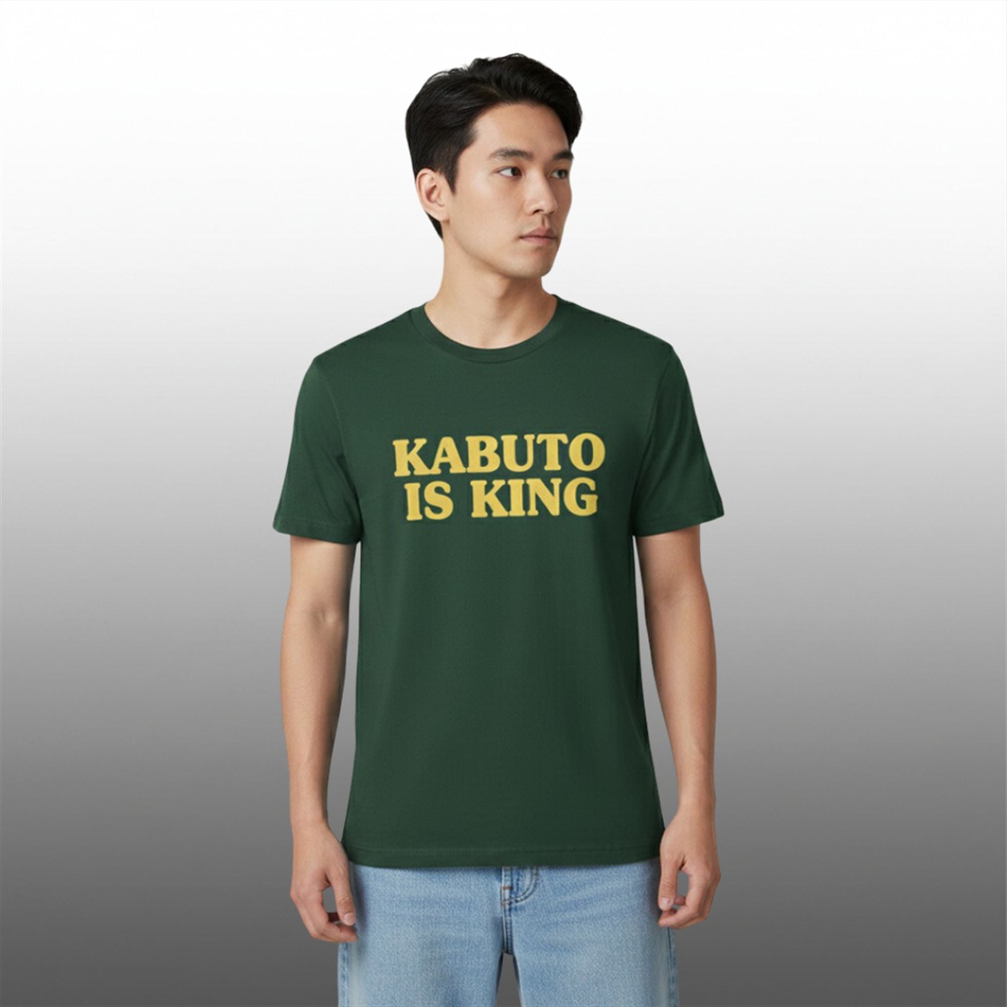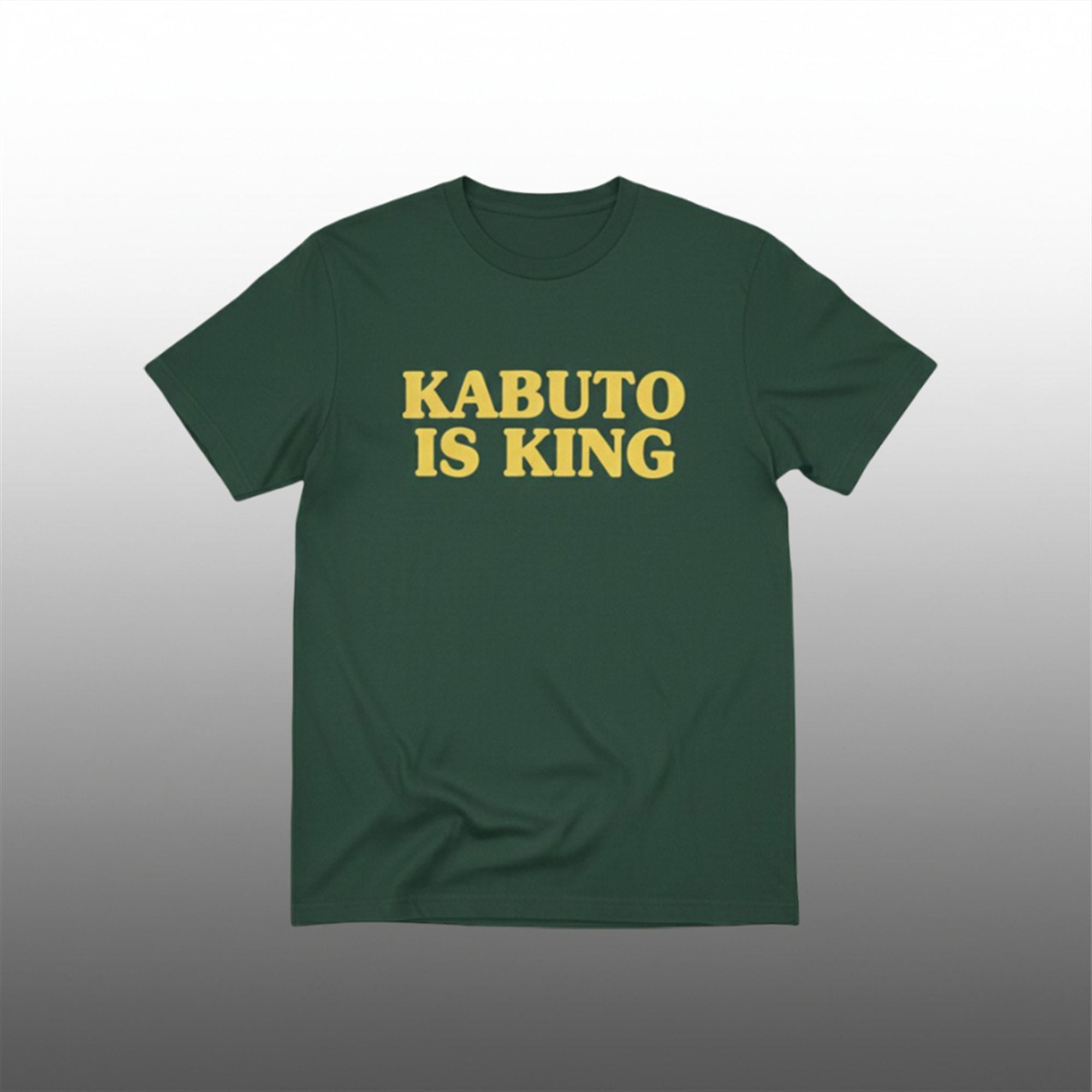 This garment features a rich, heavy-cotton build in a classic “Hunter Green” shade—a subtle nod to the swampy habitats of ancient fossil monsters. Across the chest, the slogan “KABUTO IS KING” is emblazoned in a striking, golden-yellow serif font. The text utilizes a collegiate “Varsity” layout, giving the shirt an athletic, “Champion” feel that elevates it above standard novelty apparel.