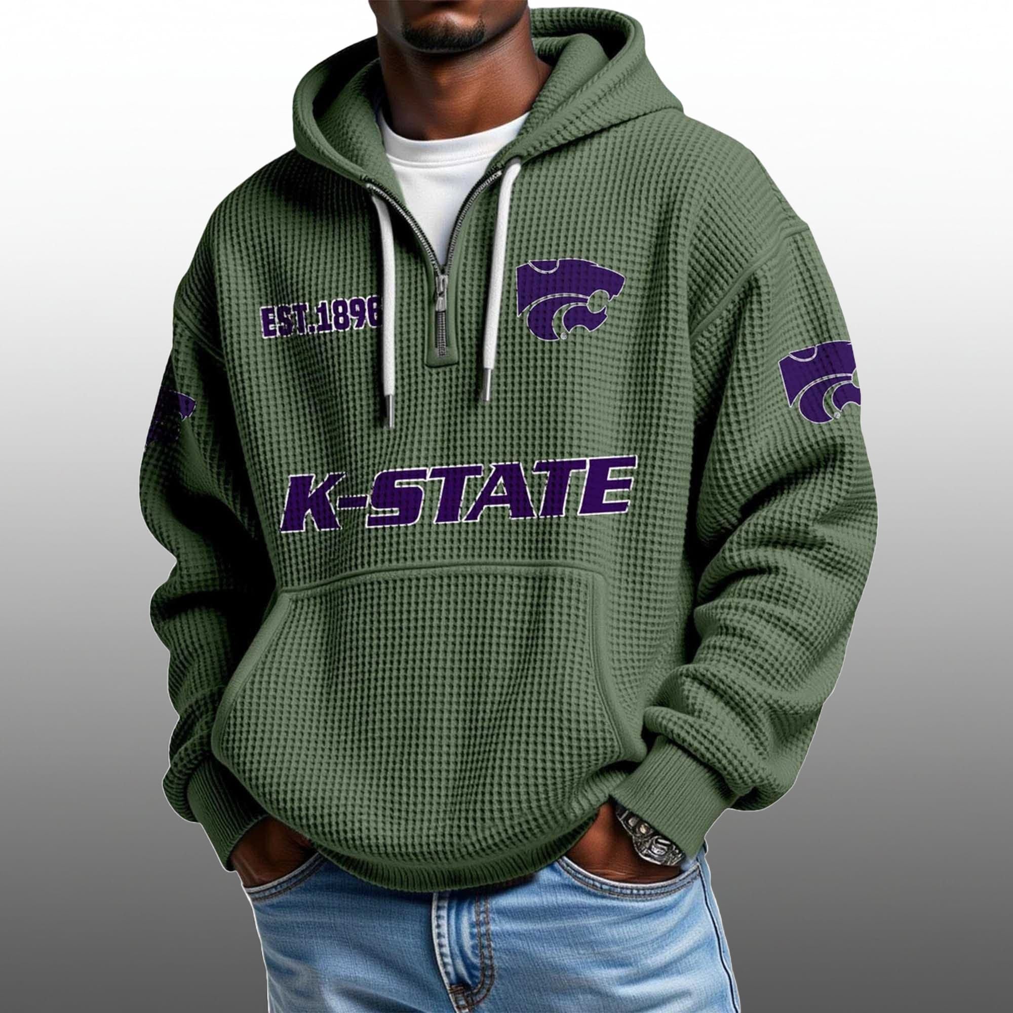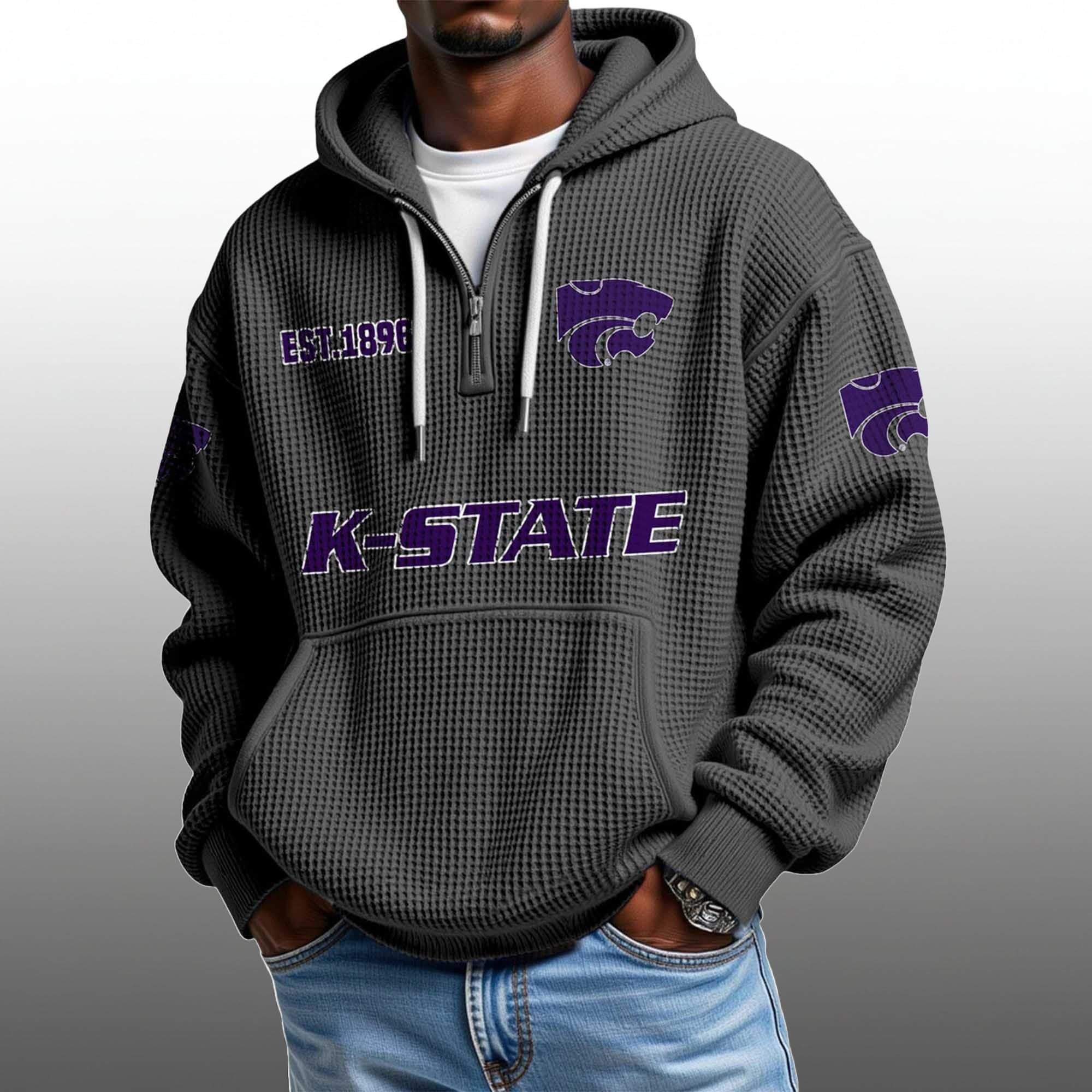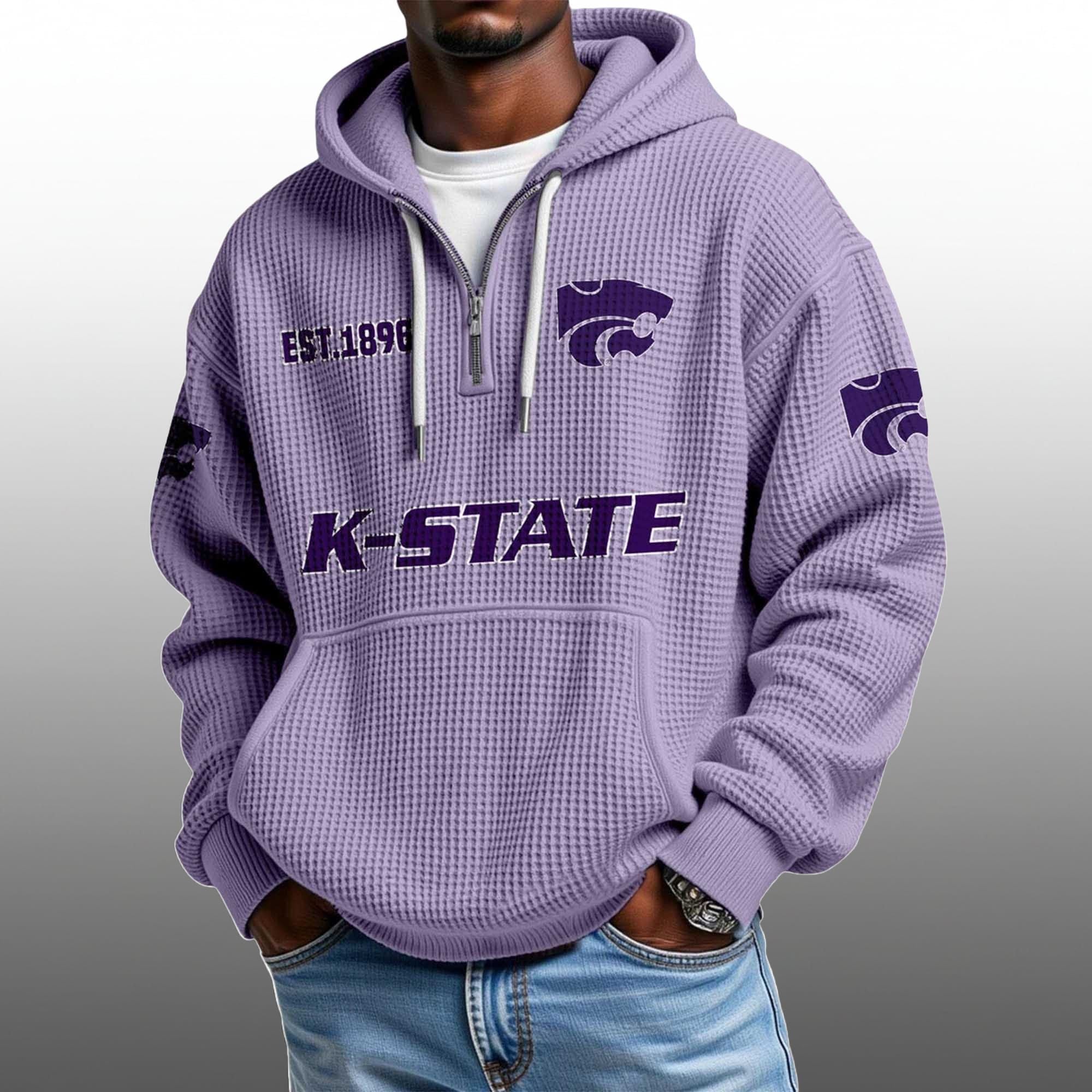 2026 Kansas State EST 1896 Half Quarter Zip Waffle Hoodie – The “Game Day Comfort” Hook