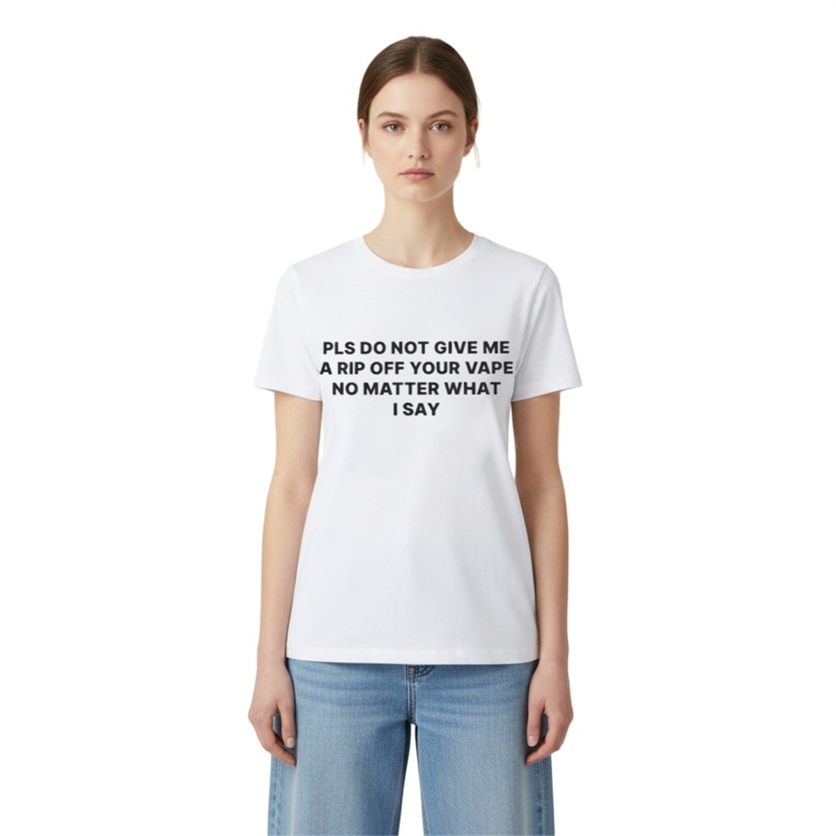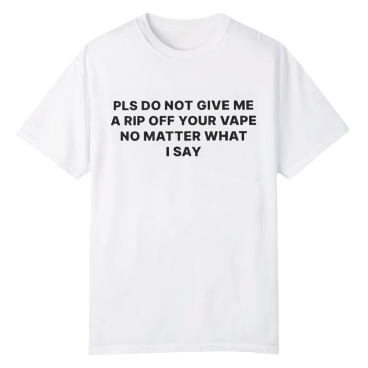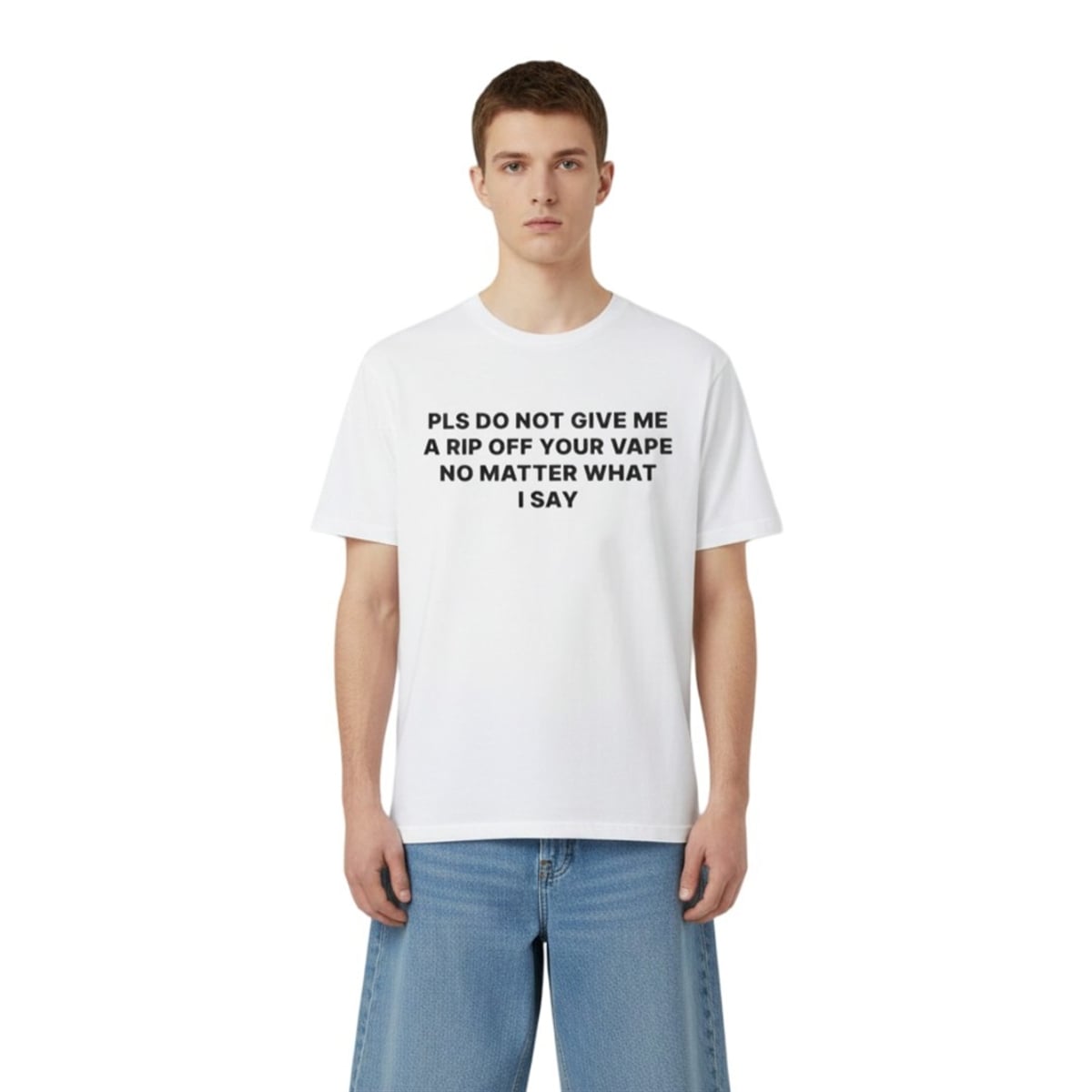 At first glance, the phrase “PLS DO NOT GIVE ME A RIP OFF YOUR VAPE NO MATTER WHAT I SAY” is a straightforward plea, but its cultural meaning goes much deeper. It is a pre-emptive strike against one’s own future weakness. The text humorously acknowledges that in the heat of a party or a stressful social gathering, your willpower might crumble, and you might ask to borrow a friend’s device.