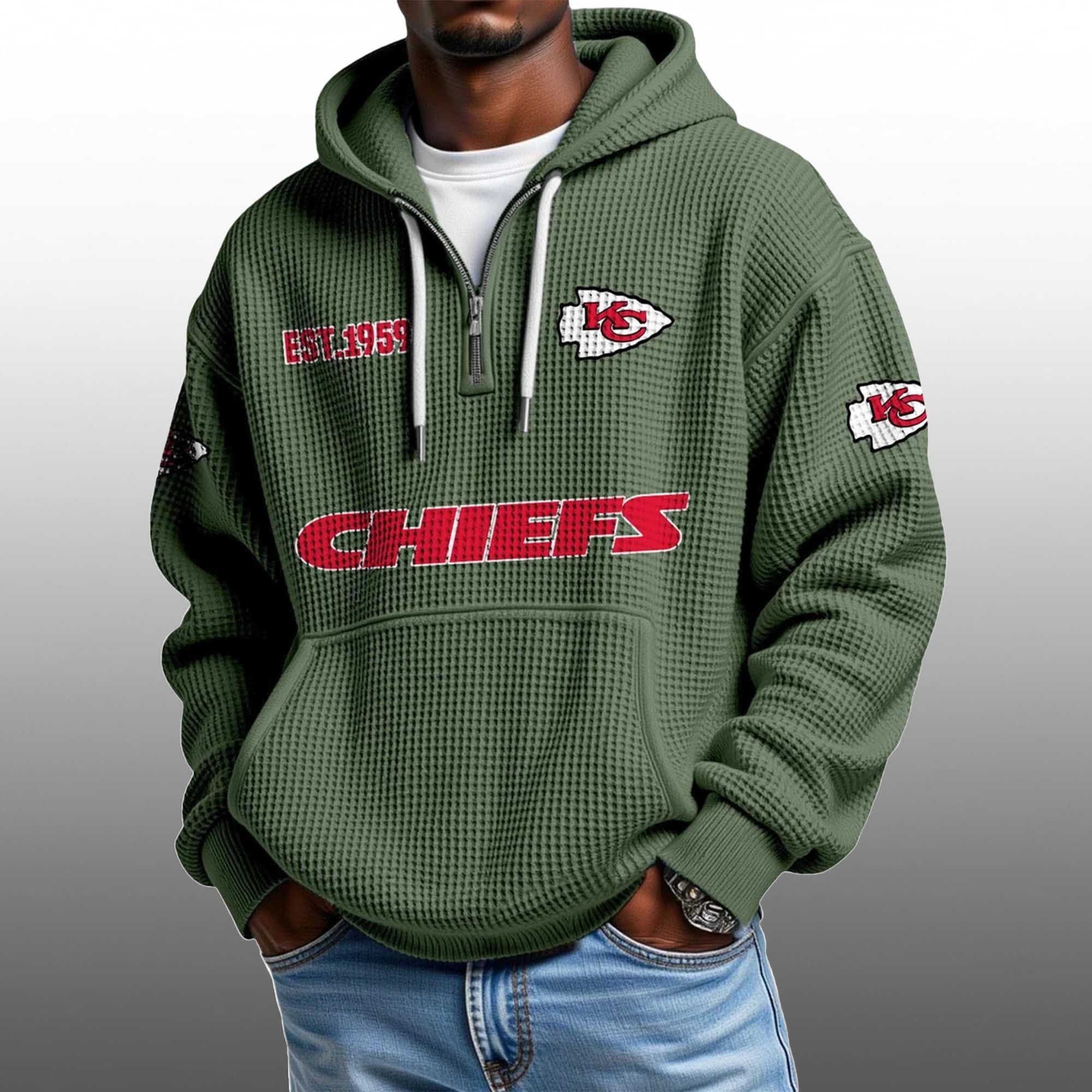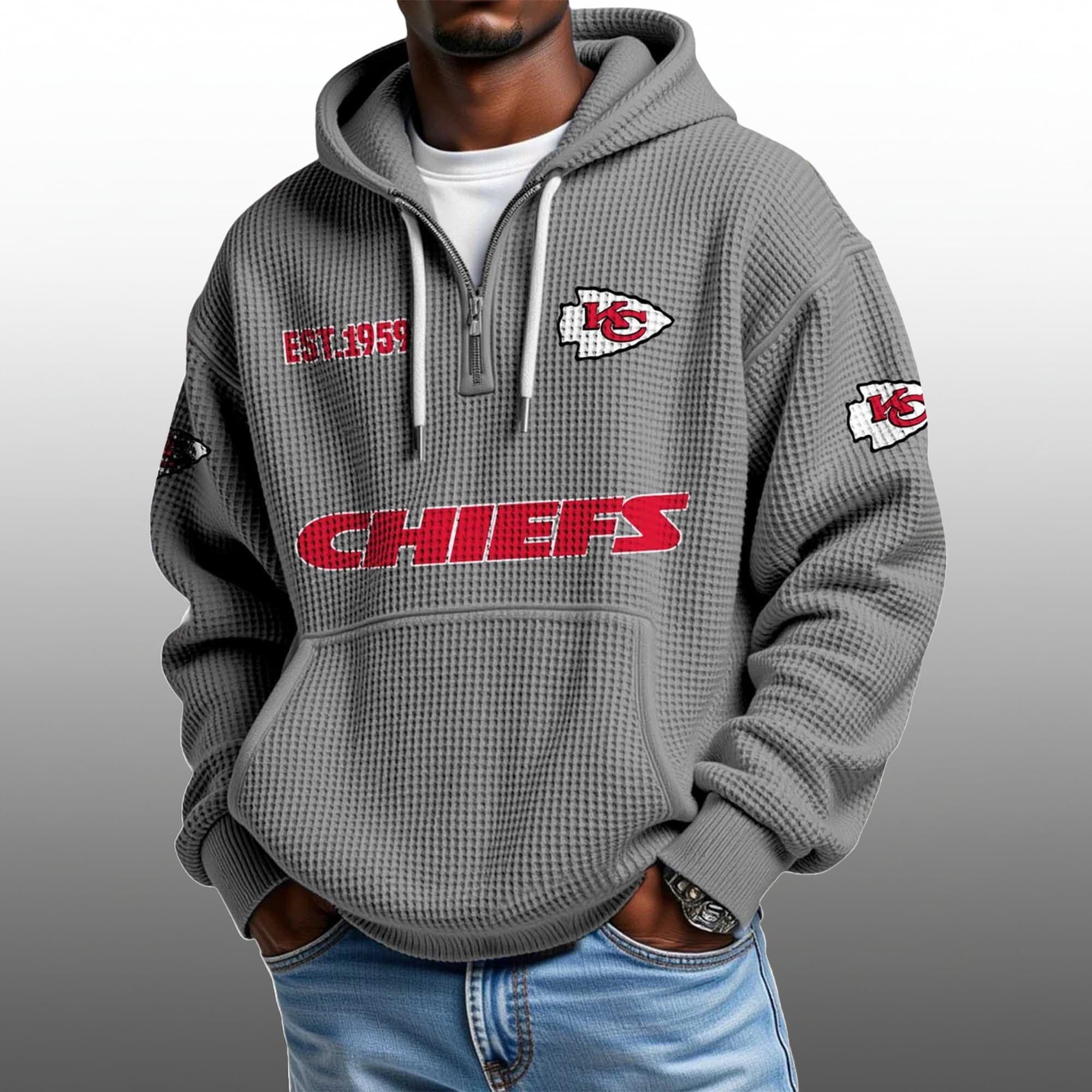 Celebrate the legacy of the reigning dynasty with the Kansas City Chiefs EST 1959 Half Quarter Zip Waffle Hoodie. Designed for the dedicated fan who values both style and substance, this heavyweight thermal pullover features a distinctive waffle-knit texture that locks in warmth during those freezing December tailgates at Arrowhead.