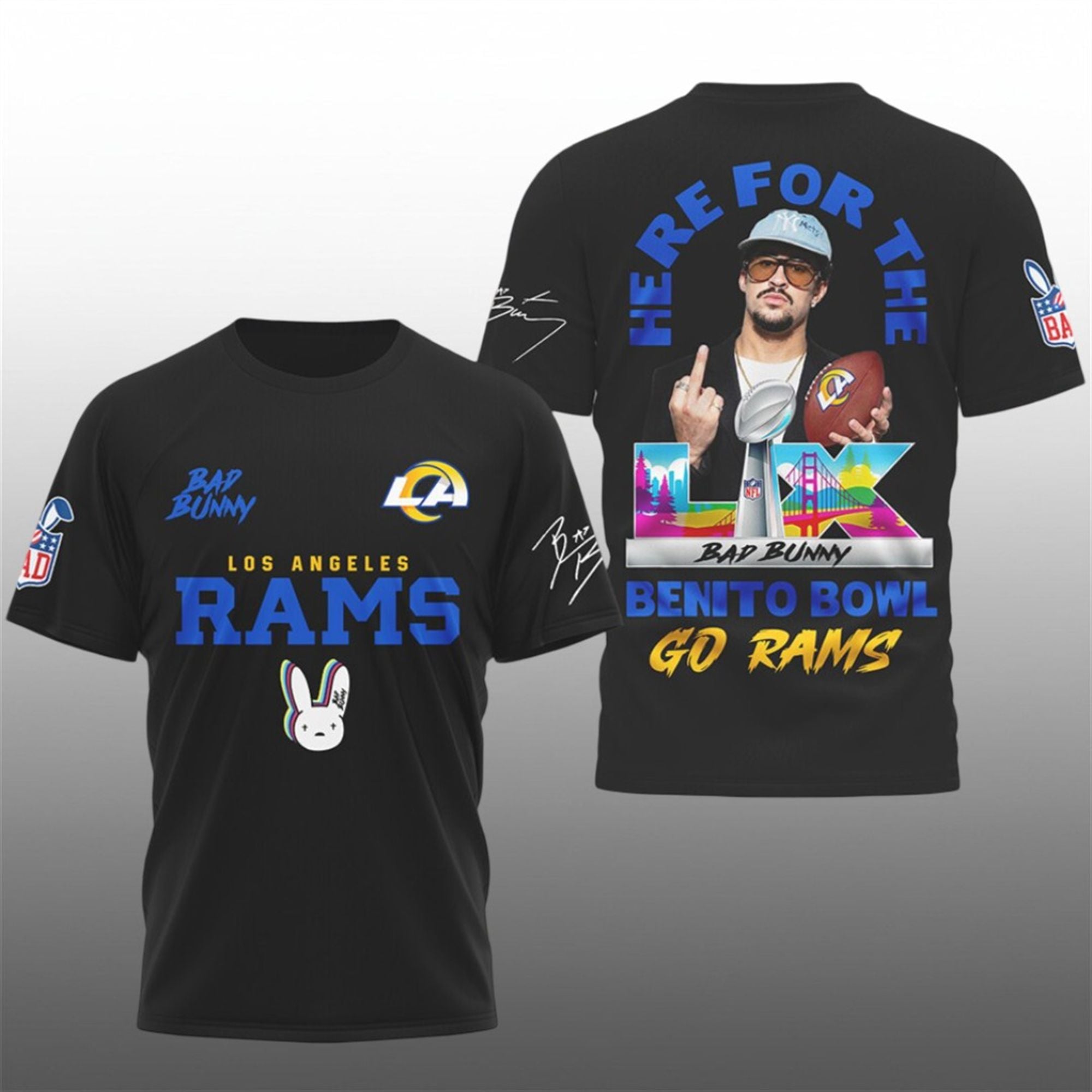 Prepare for the biggest cultural collision of 2026 with the Los Angeles Rams “Benito Bowl” Shirt. As the excitement for Super Bowl LX reaches a fever pitch, this exclusive design captures the electric energy where football meets global music dominance.