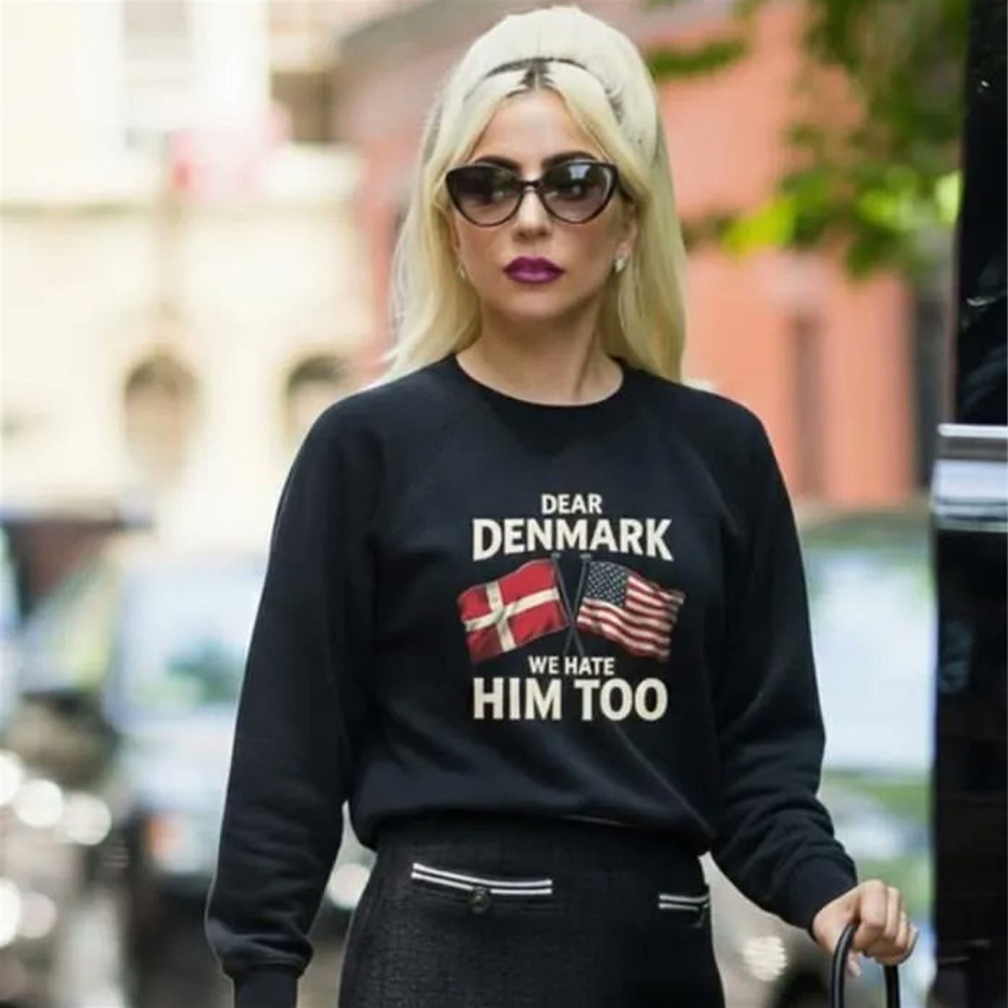 Step into the world of high-impact celebrity street style with the Lady Gaga Dear Denmark We Hate Him Too Sweatshirt, a piece made famous by Lady Gaga herself. This isn’t just apparel; it is a wearable manifesto that captures a specific moment in pop culture and political history.