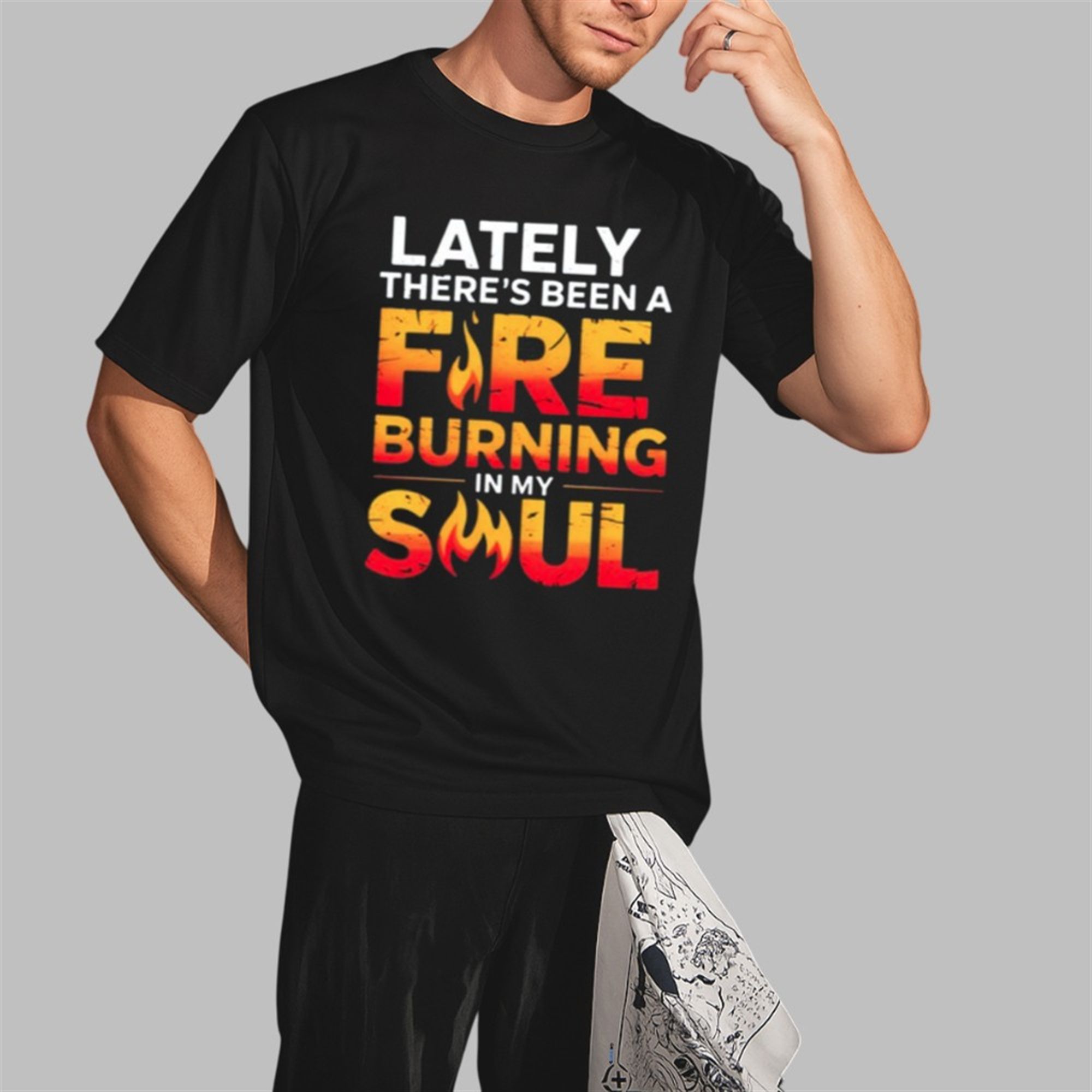 Ignite your wardrobe with the apparel that is taking social media by storm. The Lately There’s Been A Fare Burning In My Soul Tee is more than just clothing; it is a wearable anthem for those who live with passion and grit.